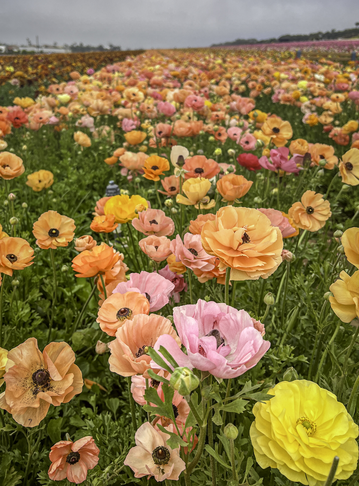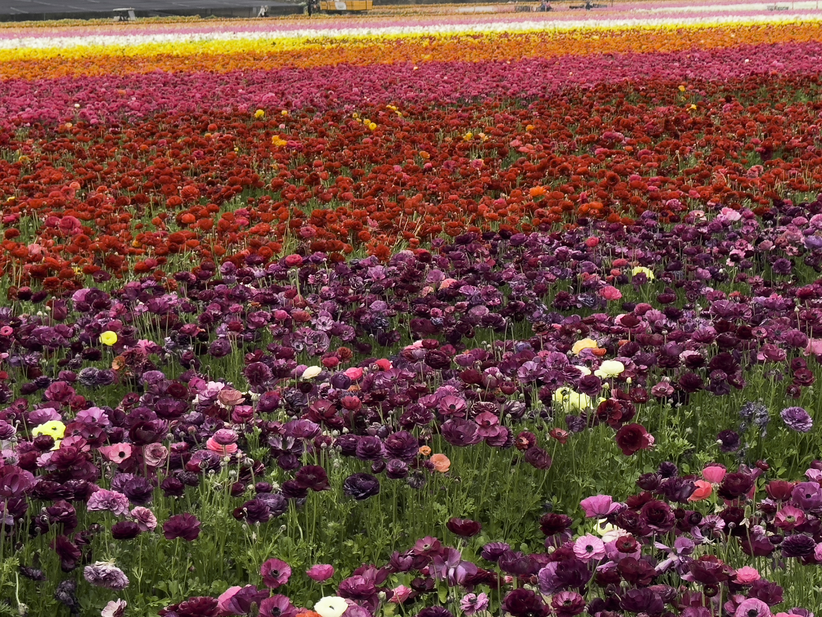 Every year we look forward to visiting the vibrant Carlsbad Flower Gardens, nestled in the heart of sunny Carlsbad, California. The Carlsbad Flower Gardens, often referred to as “The Flower Fields,” boast a rich history dating back over a century. Nestled on the picturesque hillsides overlooking the Pacific Ocean, this floral paradise spans across 50 acres of rolling hills, captivating visitors with its breathtaking displays of ranunculus blooms. Originally established by horticulturist Luther Gage in the early 1920s, these meticulously curated gardens have evolved into a cherished destination for both locals and travelers alike.