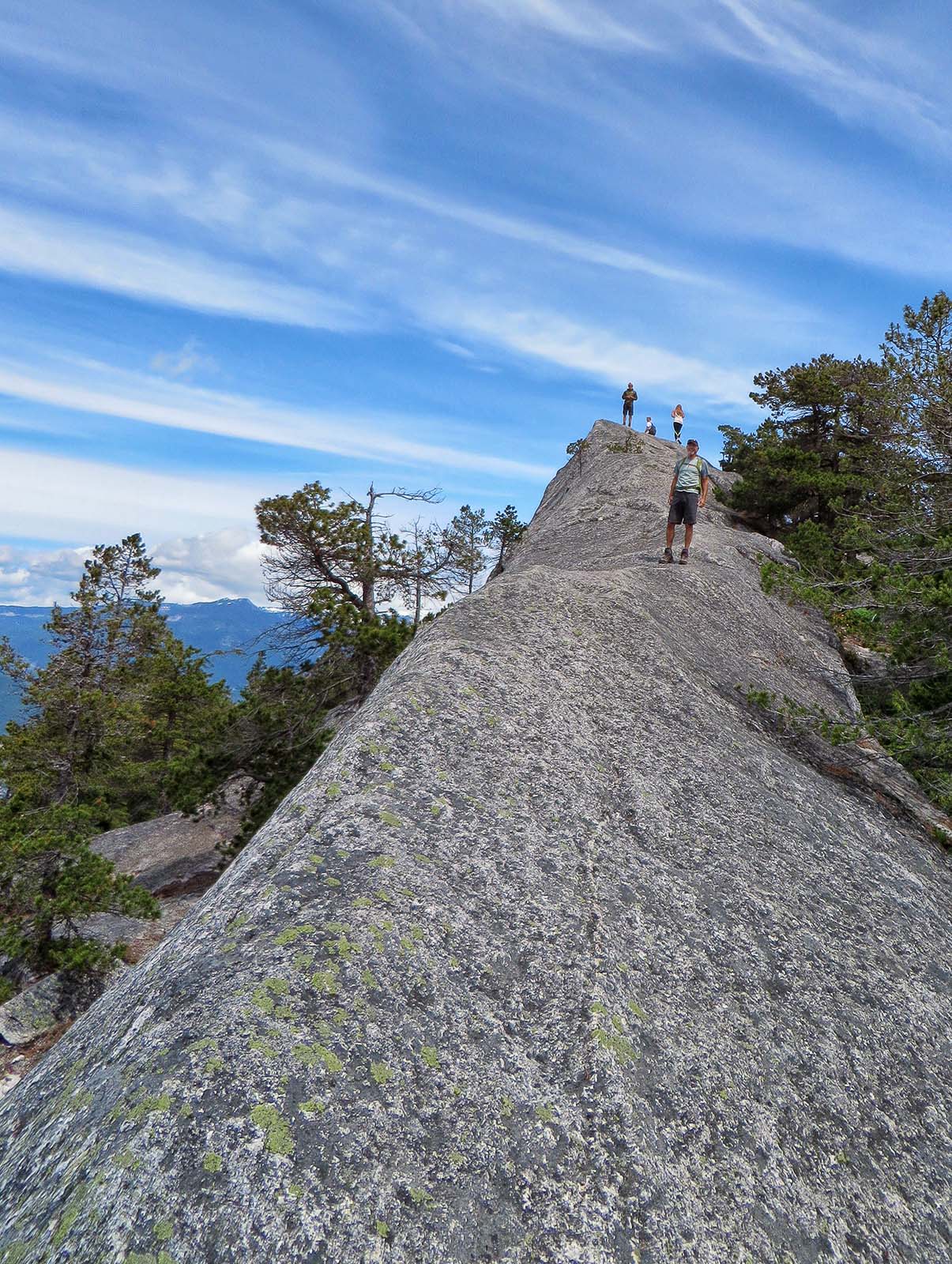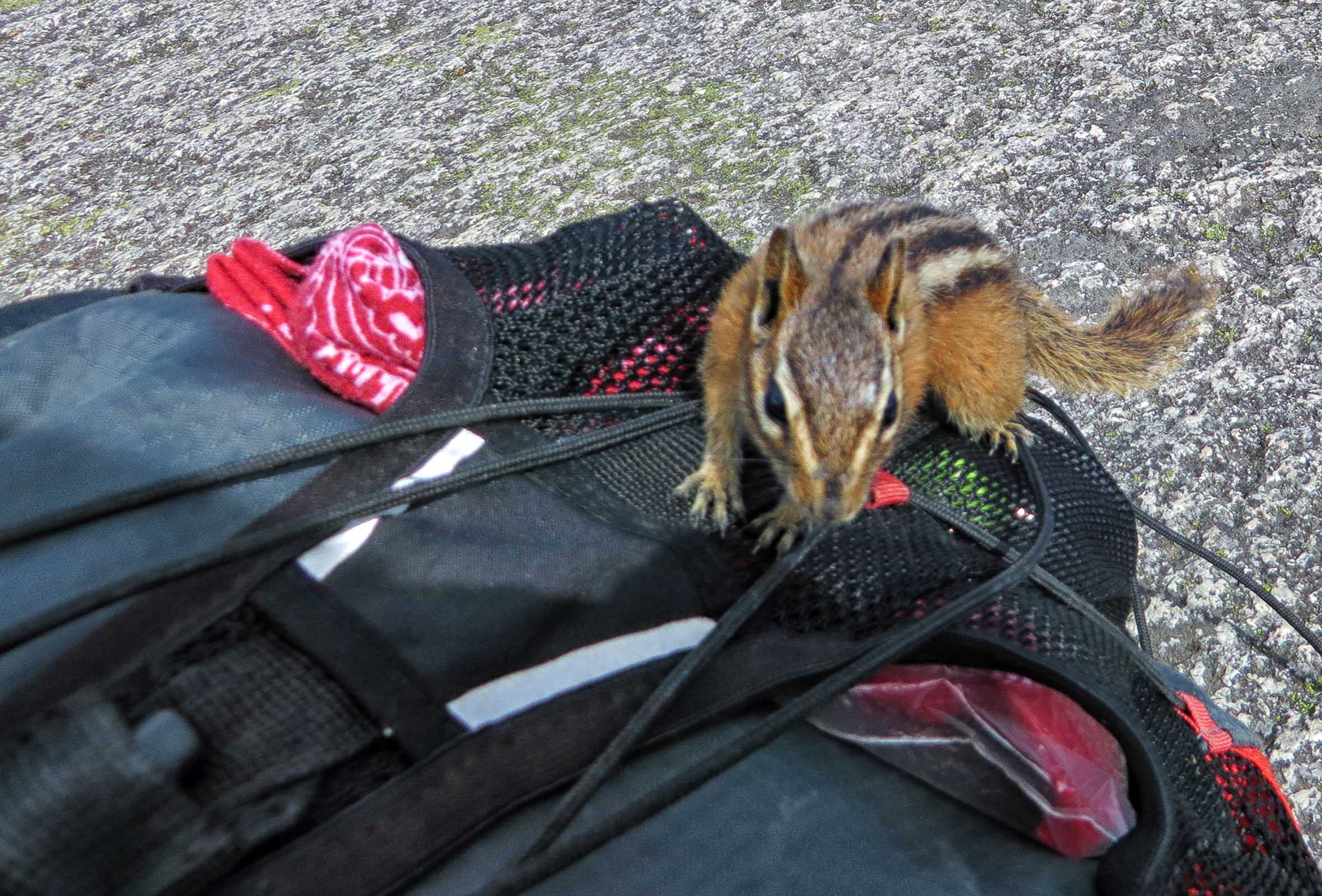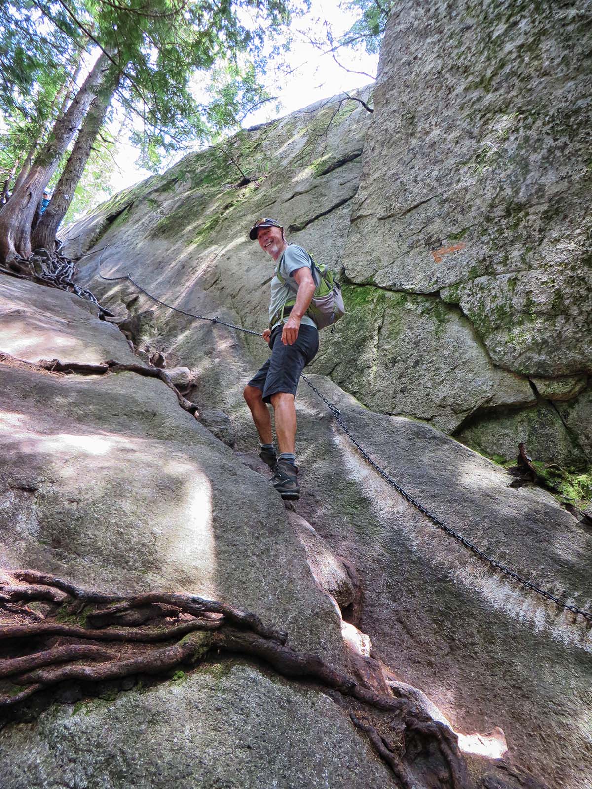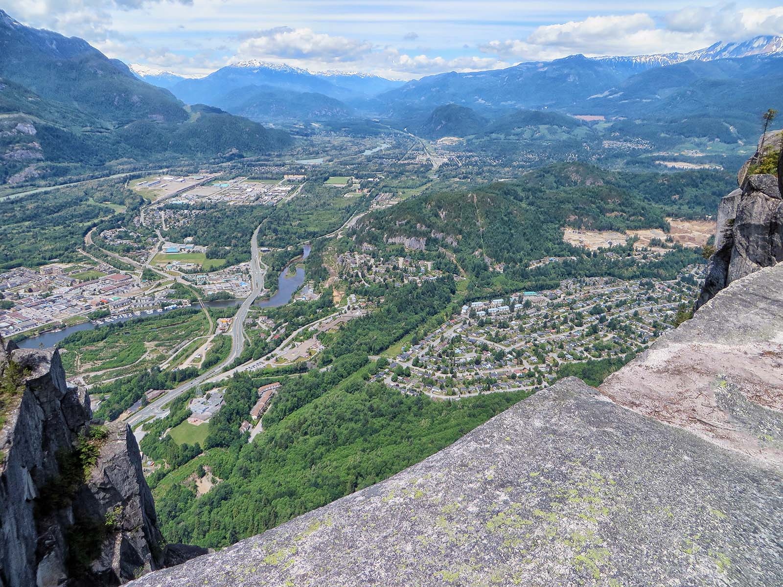 On June 9th, we drove north up the Sea to Sky Highway from West Vancouver to Squamish to hike The Stawamus Chief, well known for its climbing and hiking trails. It was a beautiful sunny day with brilliant blue sky, affording spectacular views of the coast and Howe Sound. Arriving at Shannon Falls Provincial Park around 10:30am we began our hike from the base of the falls. Shannon Falls is composed of series of cliffs, rising 1100ft, making it the third largest falls in the province. The hike to the First Peak was through the beautiful forest of Hemlocks and Douglas Firs, and then ascending steep rocky cliffs to the top, at (610m) 2001ft. We enjoyed wonderful 360 degree views of the mountains and Howe Sound below. Back to the trail we continued on to the Second Peak with even steeper rocky cliffs where we used chains and ladders to help pull us up the cliff face. On the Second Peak at (655m) 2150ft, we stayed and ate lunch with the chipmunks who would not leave me alone, and took in the wonderful views. Then it was on to the Third Peak, passing by a rock ledge where the climbers rappel down hundreds of feet to the base of the mountain. The Third Peak at (702m) 2300ft, was the final peak, and we could see Mt Garibaldi rising high above the valley covered in clouds, and great views of Squamish nestled at the end of Howe Sound.