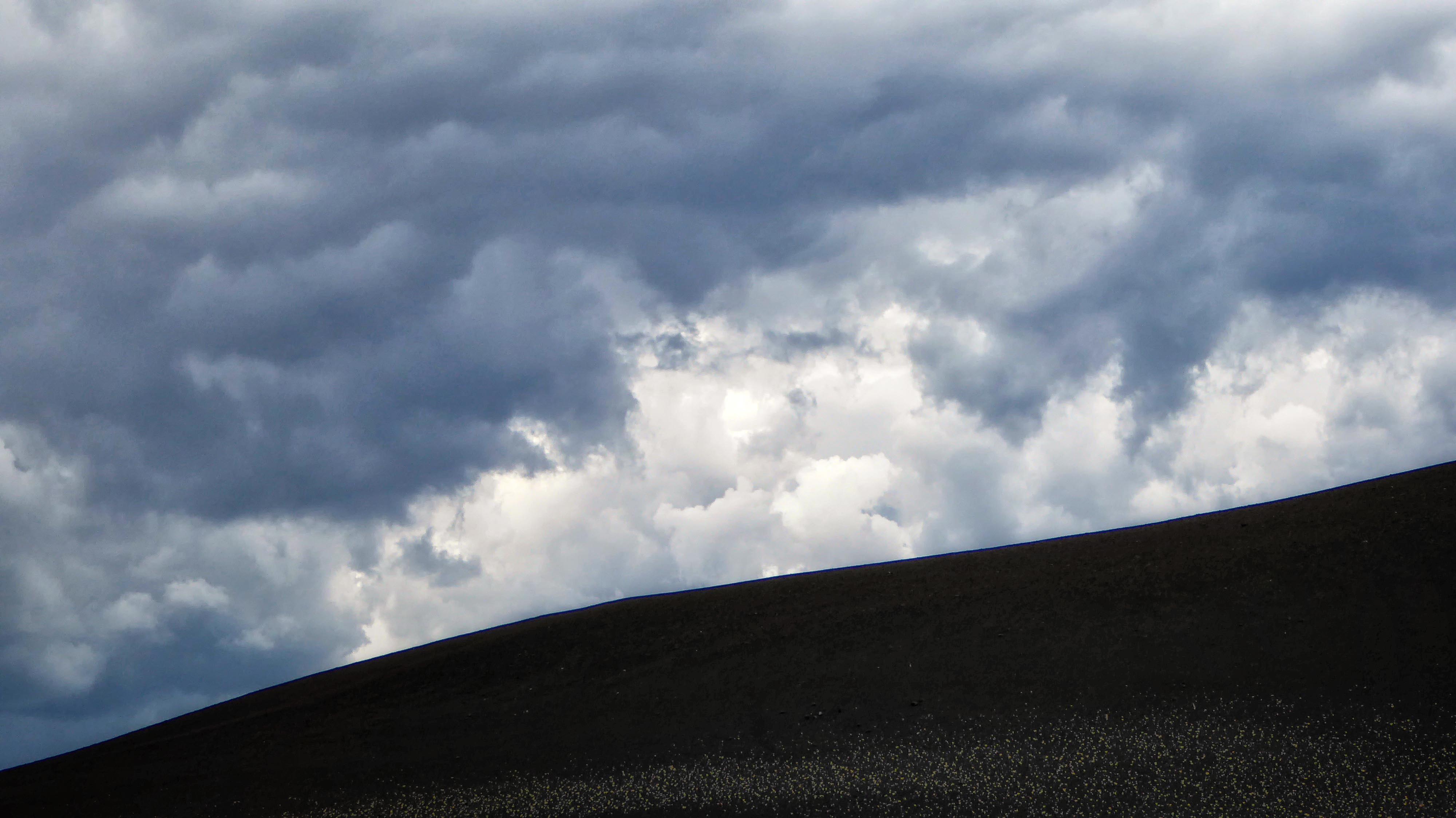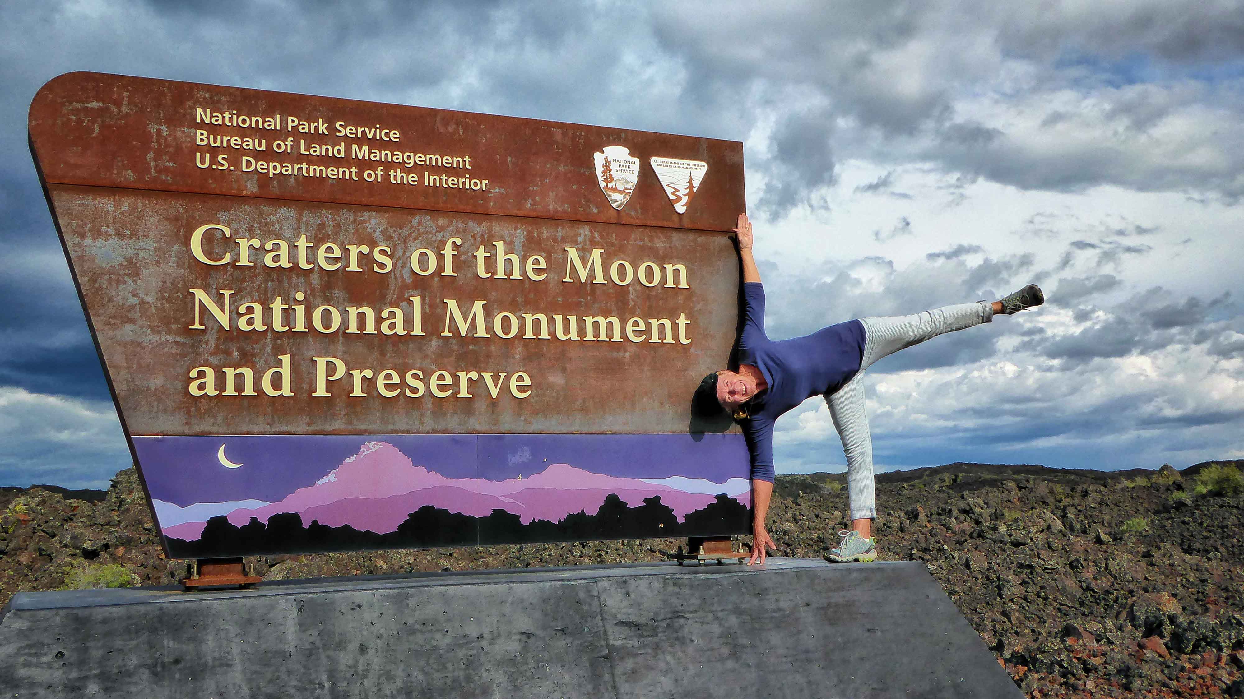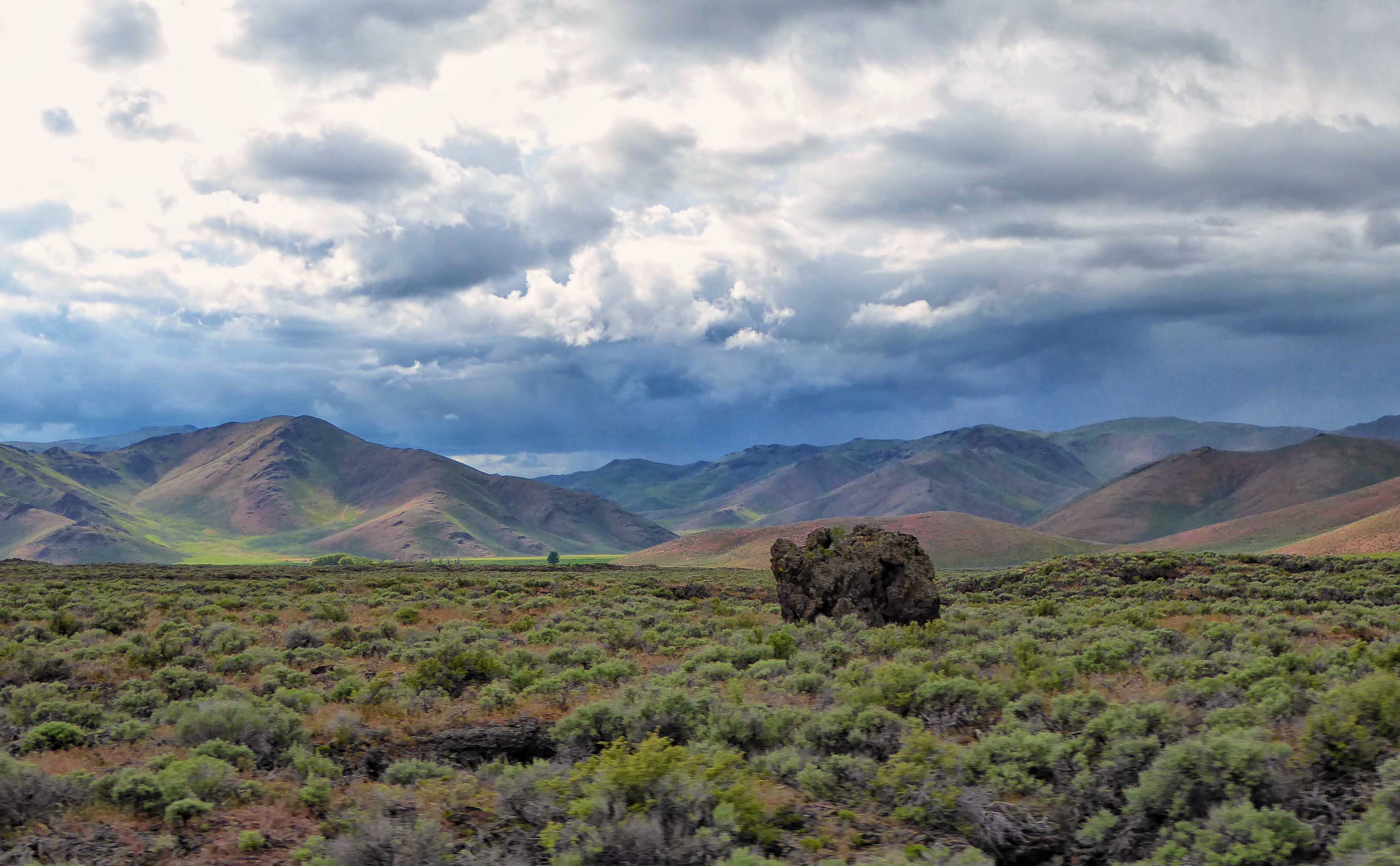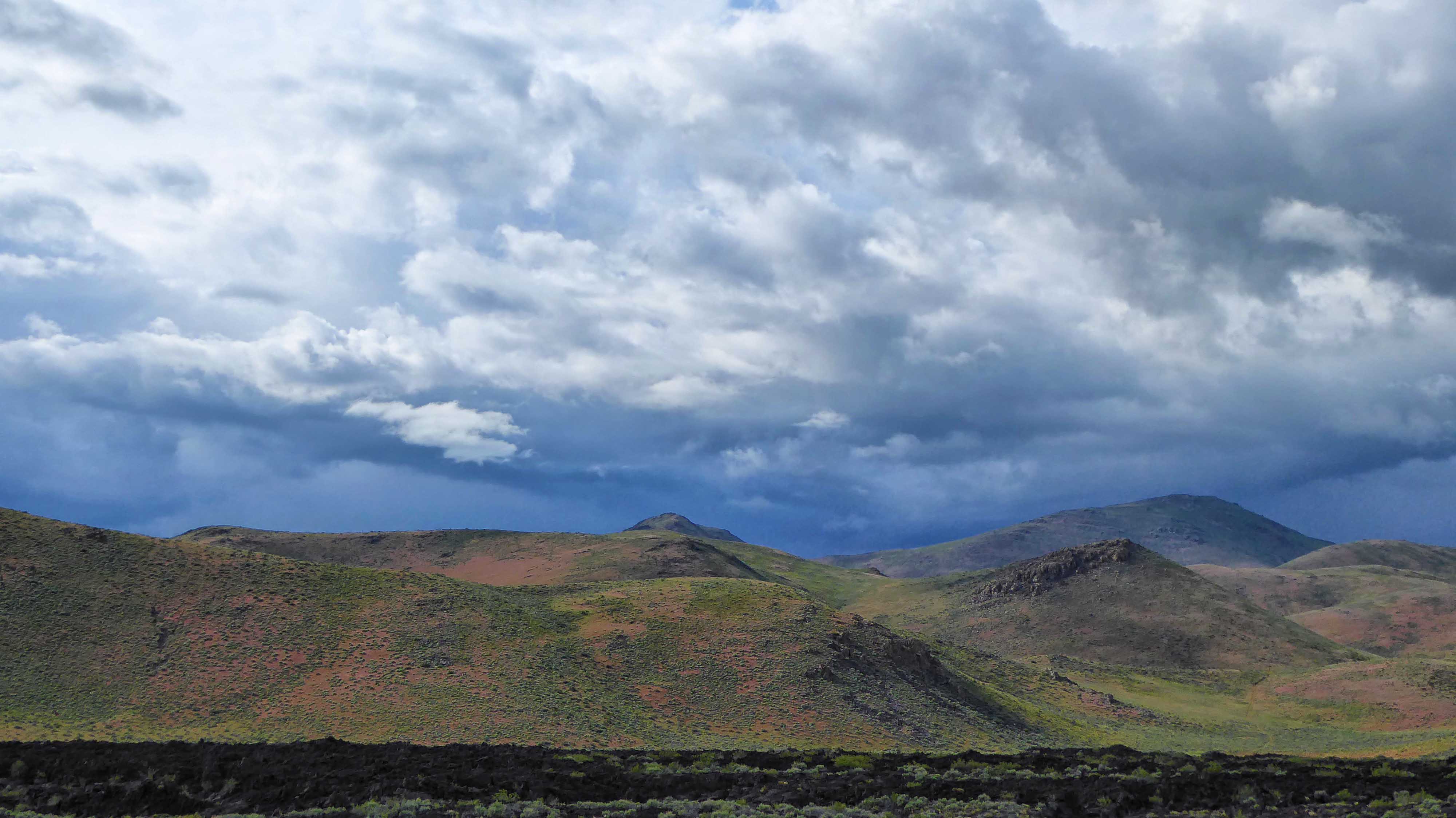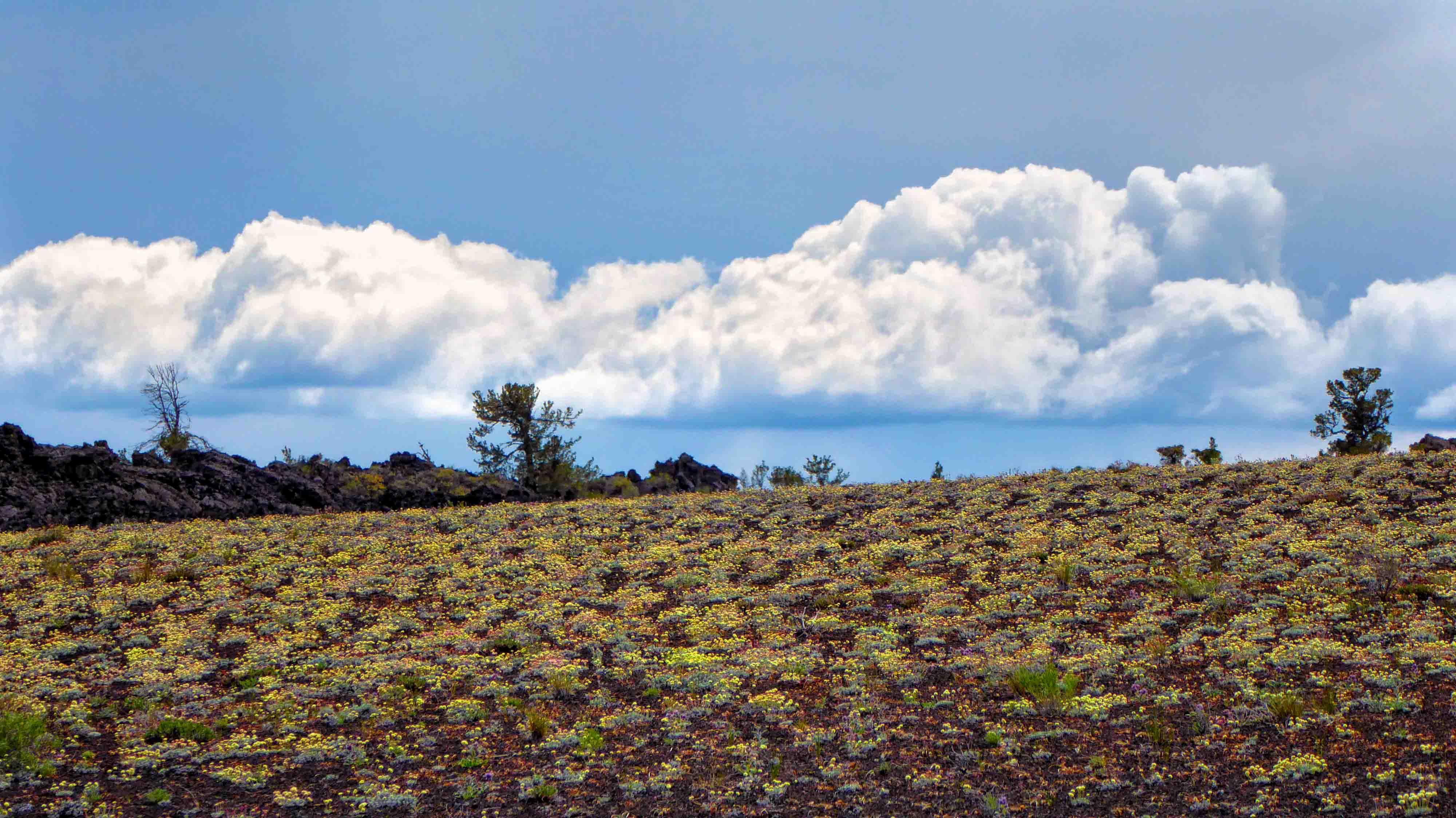 On our way back we drove out to see the Craters of the Moon National Monument and Preserve, established in 1924, and encompass three major lava fields that lie along the Great Rift of Idaho, where lava flowed from a series of deep fissures. Beginning 15,000 years ago lava welled up from the Great Rift to produce this vast ocean of rock. We stopped at the Visitor Center at 5,900′, and picked up a map of the area, there is only one road to follow, a Loop Drive, 7 miles long. We stopped at the Devils Orchard, an island-like lava fragments stand in a sea of cinders. The Inferno Cone Viewpoint where we walked to look down the cone of a volcano. The landscape was definitely barren, resembling a moonscape, but from the the blackness of the hills beautiful wild flowers were in bloom.