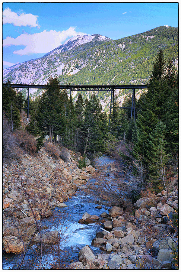 A fun day was spent on the Georgetown Loop Railroad connecting Georgetown to Silver Plume. It was completed in 1884, a 4.5 mile stretch of 3 foot narrow gauge railroad and was considered an engineering marvel for its time. The once thriving mining towns of Georgetown and Silver Plume lie 2 miles apart in a steep, narrow mountain canyon of Clear Creek in the Rocky Mountains west of Denver. The railroad route ascends an elevation of 640 feet through mountainous terrain, along trestles, crossing Clear Creek four times including the massive Devil’s Gate High Bridge. It was a two hour ride on this historic train with wonderful views looking out over Clear Creek, 102 feet to the river, and the mountain canyon beyond.