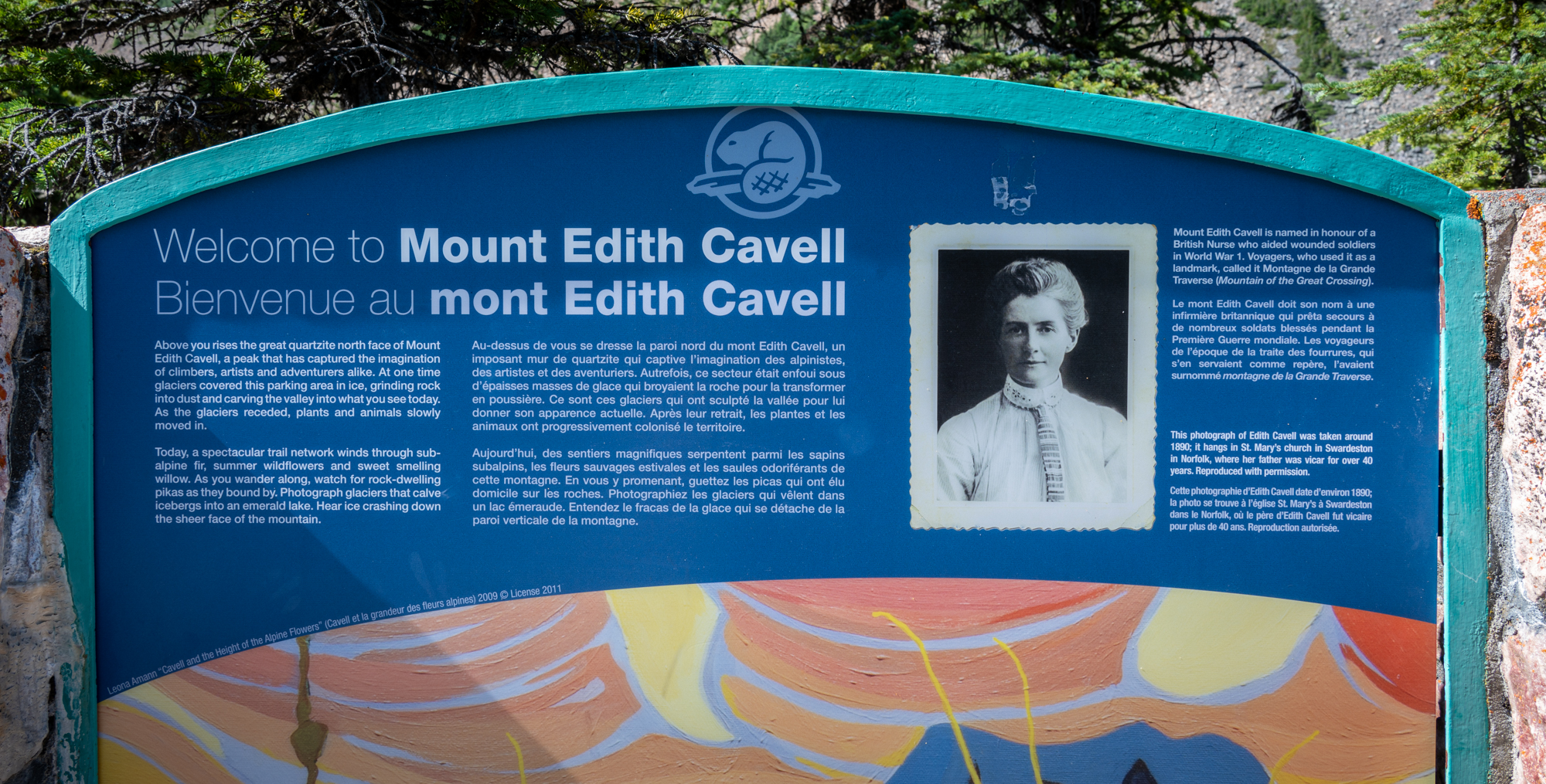 The mountain was named for Edith Cavell, who was a British nurse working in Belgium during World War I. She helped over 200 Allied soldiers escape from German-occupied Belgium and was subsequently arrested, court-martialed, and executed by the Germans in 1915.