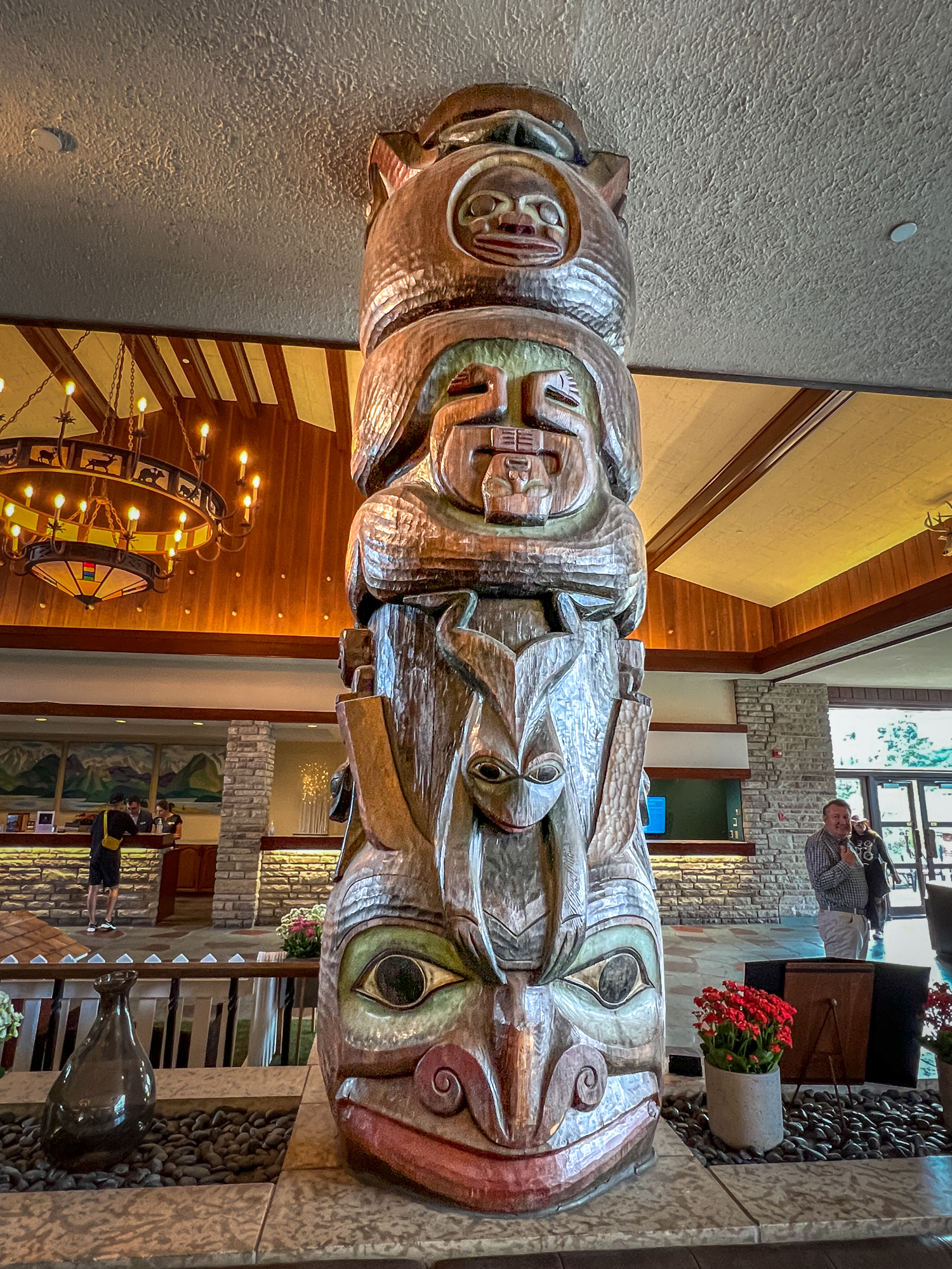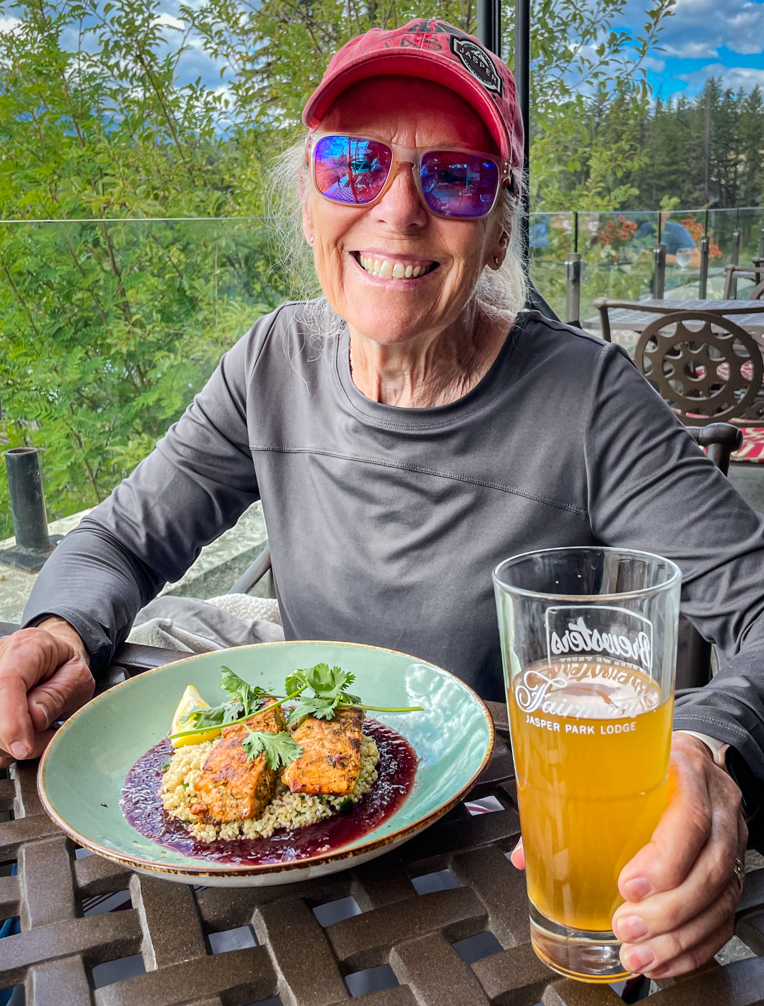 After completing our hike, we headed for the famous Jasper Park Lodge for a nice lunch and relaxing walk around the grounds. Patty reminisce about her summer working at the lodge during her university years. The lodge was built in 1922 by the Canadian National Railway (CNR) as a destination for tourists visiting the Canadian Rockies. The hotel was designed in the rustic style of a grand mountain lodge, with large stone fireplaces, exposed timber beams, and natural stone walls.