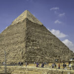 The Great Pyramids of Giza—Khufu, Khafre, and Menkaure—were constructed during Egypt’s Old Kingdom, around 2600–2500 BCE, as monumental royal tombs. The largest, the Pyramid of Khufu, originally rose to 481 feet and remains one of the oldest and most precisely engineered structures in the world. Built from millions of limestone blocks, the pyramids reflect advanced knowledge of mathematics, astronomy, and labor organization. They formed the core of a vast funerary landscape that included mortuary temples, subsidiary pyramids, boat pits, and causeways connecting the plateau to the Nile Valley.