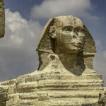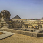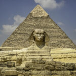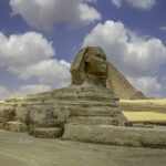 At the foot of the plateau lies the Great Sphinx, a colossal limestone statue with the body of a lion and a human face—commonly believed to represent Pharaoh Khafre. Carved from a single outcrop of bedrock, the Sphinx is the oldest known monumental sculpture in Egypt. It likely served as a guardian of the necropolis and symbol of royal power, blending solar and royal imagery. Over the centuries, the monument became buried in sand, requiring repeated excavations, including major clearings in the 19th and 20th centuries. Today, the pyramids and the Sphinx stand as enduring icons of ancient Egypt’s engineering skill, religious beliefs, and centralized state power. Click on thumbnail to view images