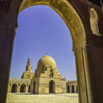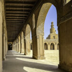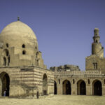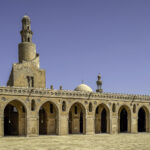 of the Tulunid dynasty, it reflects the architectural style of the Abbasid period and was inspired by the great mosques of Samarra in Iraq. Built entirely of brick and plaster, the mosque was designed to accommodate large congregations and remains remarkable for its simplicity, harmony, and vast open courtyard.