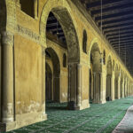 Its most distinctive feature is the spiral minaret, which ascends in an external, ramp-like staircase—an uncommon form in Islamic architecture and a clear echo of Samarra’s famous minaret. The mosque’s covered halls are supported by pointed arches and decorated with finely carved stucco panels featuring geometric and floral motifs. Because it has never been completely rebuilt, the Mosque of Ibn Tulun preserves much of its original 9th-century character.