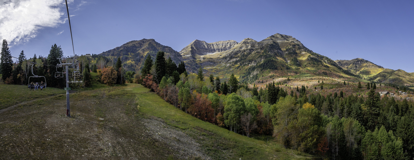 We decided to take the ski lift to the top, where the views were absolutely breathtaking. As we ascended, the vast and colorful panoramas unfolded before us, each turn of the lift revealing more of the Wasatch Range’s autumn splendor. At the summit, we enjoyed a delicious lunch at the Bear Claw Cabin, perched high above the valley. The stunning scenery surrounded us, and we savored every moment, knowing this was one of those rare, unforgettable experiences.