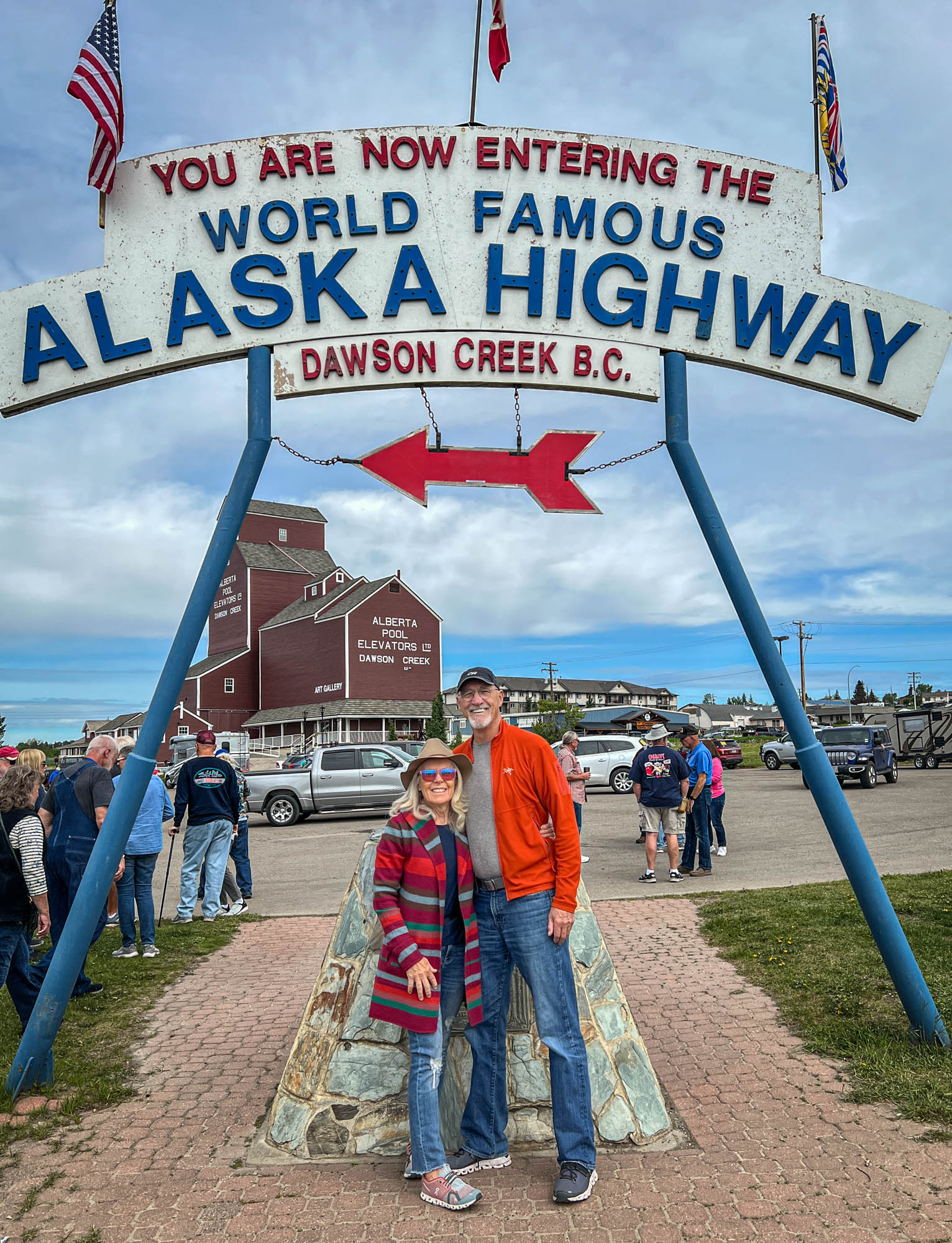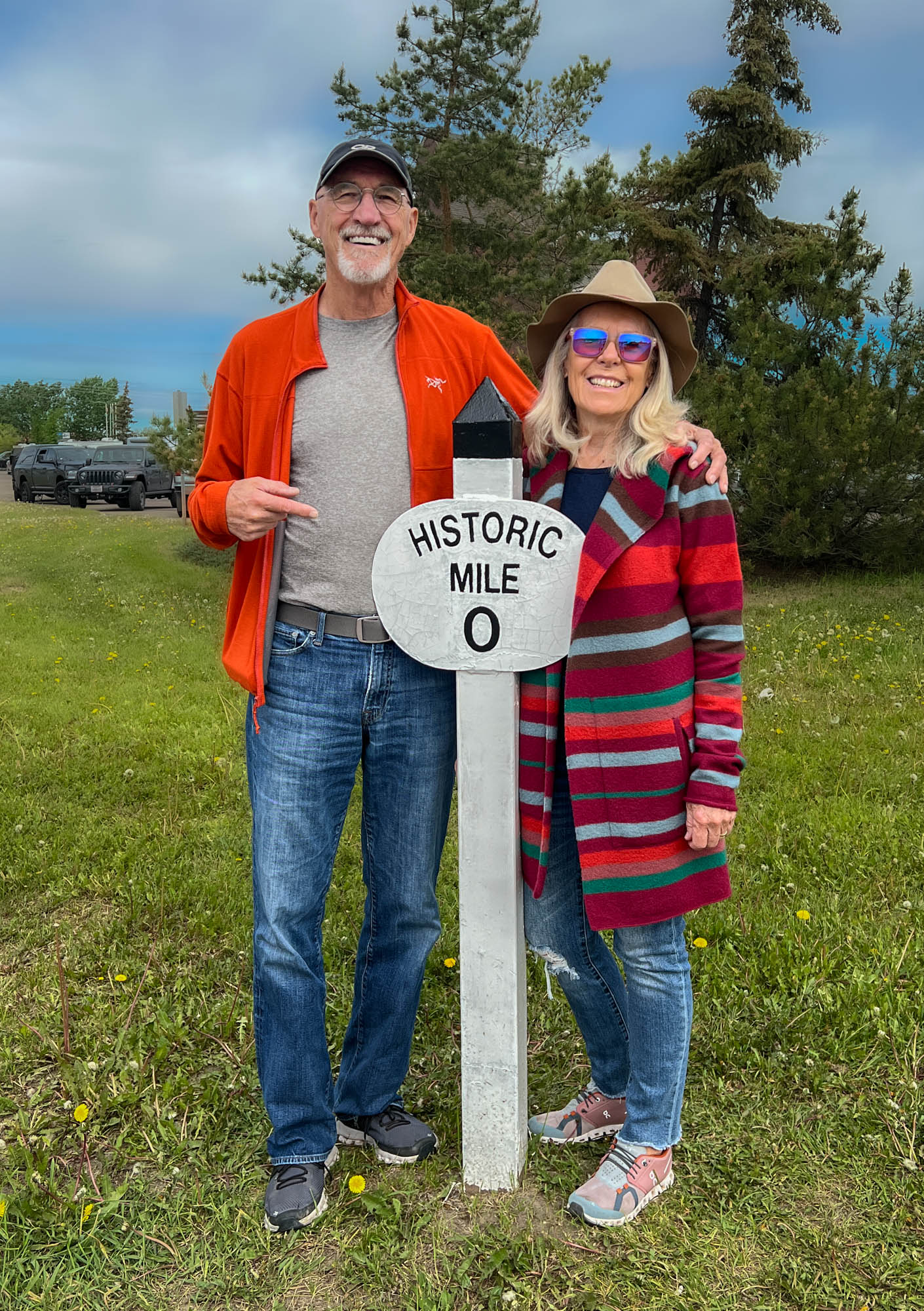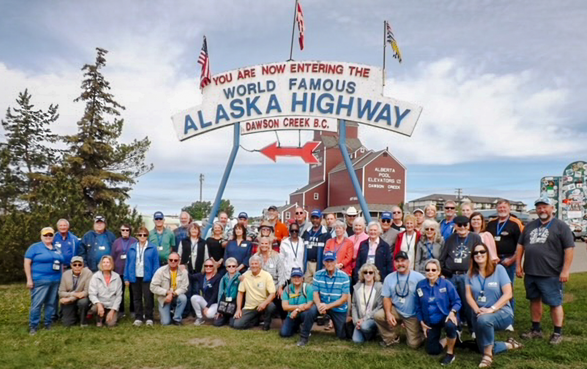 After leaving Prince George, we arrived in Dawson Creek, the official “Mile 0” of the Alaska Highway. We couldn’t resist taking a group photo at the famous highway sign, marking the beginning of our journey.
