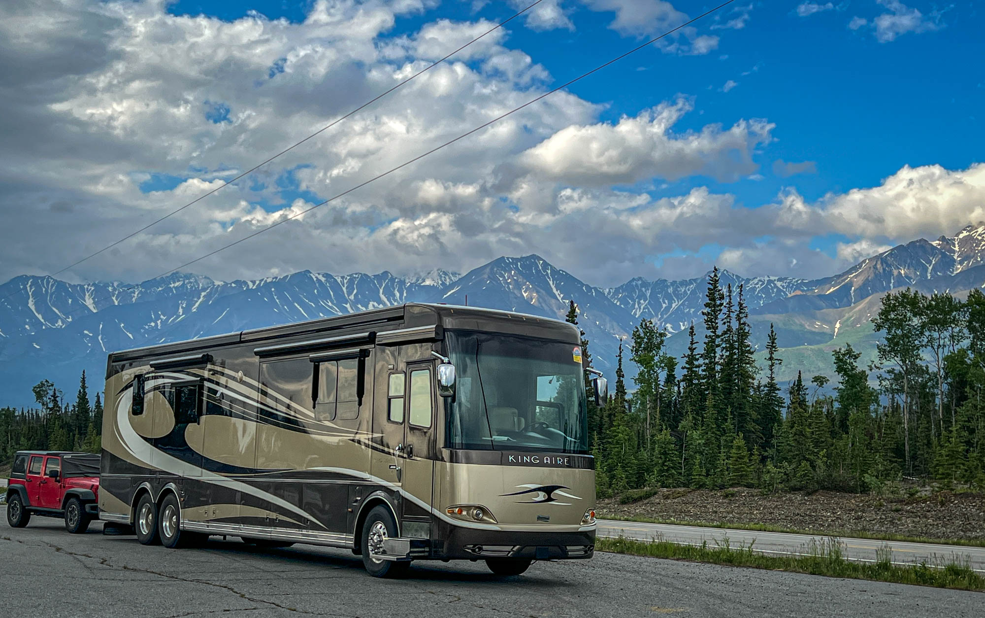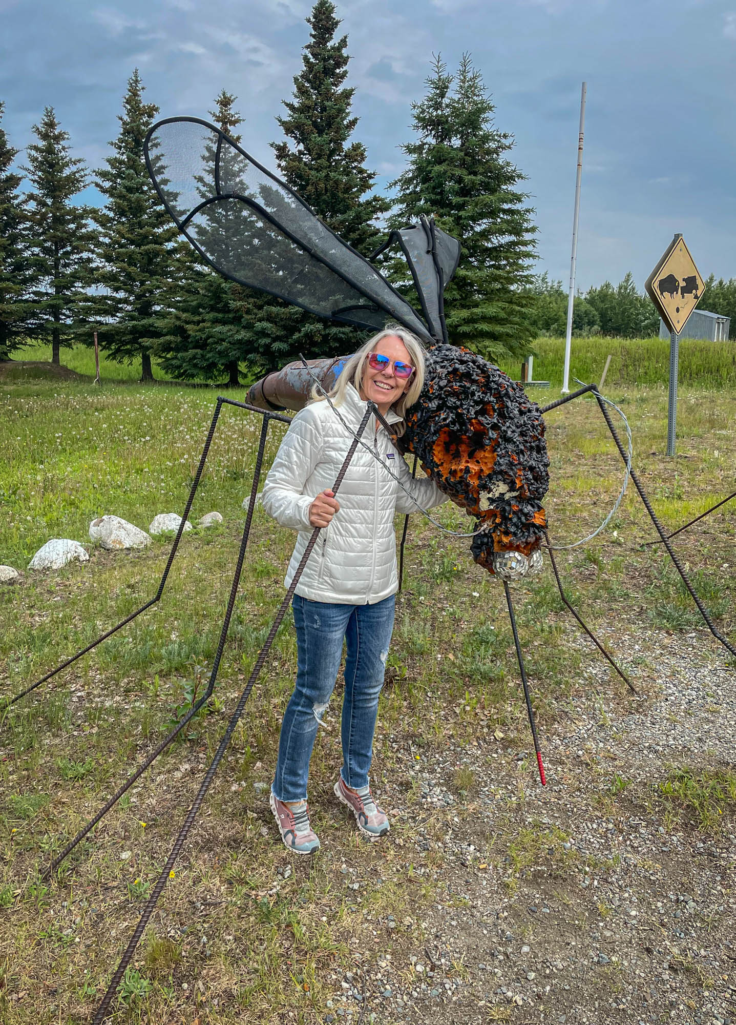 After leaving Whitehorse we continued north through beautiful landscapes with wildlife sightings to Destruction Bay where we spent the night before continuing on towards Tok, Alaska. The road from Destruction Bay was quite an adventure, due to the permafrost and road construction. Permafrost can cause problems for road construction and maintenance because as the ground thaws, it can cause the road to heave, or rise and shift. This can cause the road to become uneven and damaged. It can also make it difficult to build and maintain a road that can withstand the changing conditions. At Tok we had a nice group dinner and shared our “war stories” about the road.
