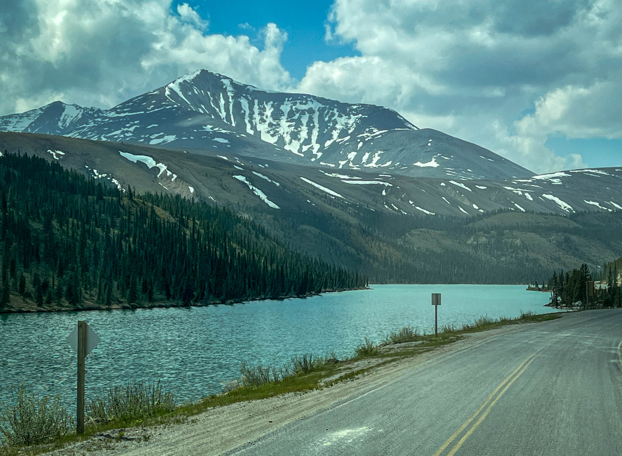 As we drove further north, we reached Summit Pass, the highest point on the Alaska Highway at 4250 ft. The views from the top were breathtaking, and we were able to see for miles around. We also saw a bighorn sheep along the way, which was a nice surprise.