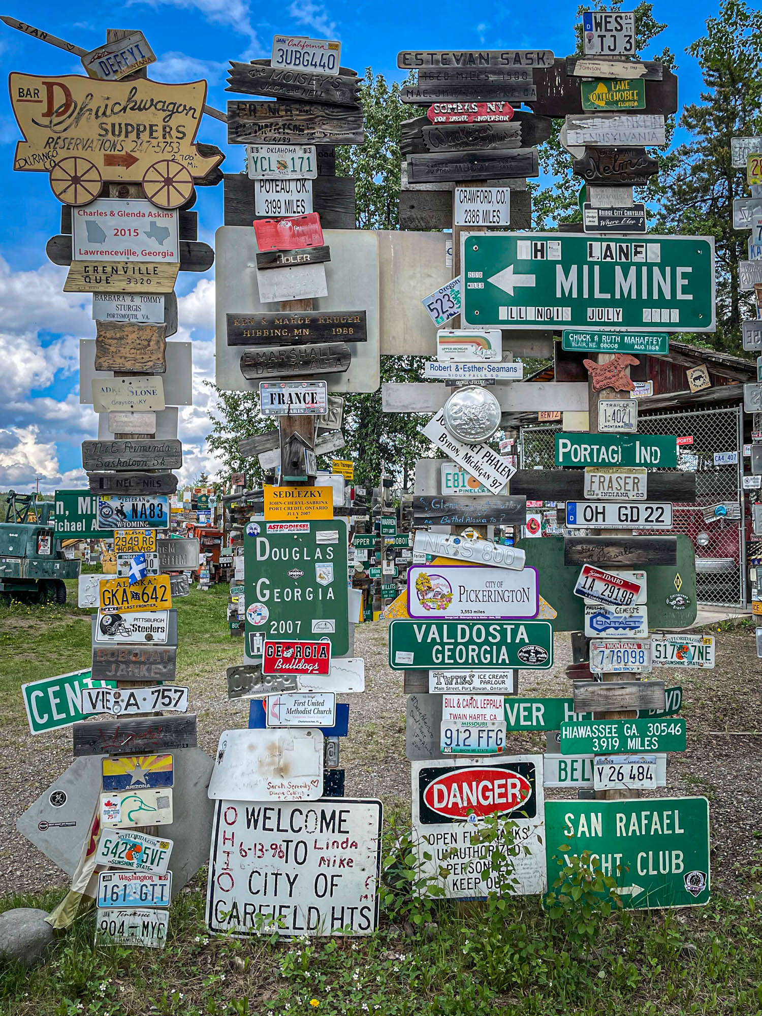From Muncho Lake, we headed further north to Watson Lake in the Yukon. Watson Lake is a small town located in the southern part of the territory, and has a rich history dating back to the gold rush of the 1890s. The town was named after Frank Watson, who discovered gold in the area in 1887. Watson Lake is also known for its connection to the Alaska Highway. The town was an important stopover for the soldiers and civilians who built the highway during World War II, and it played a key role in the construction and maintenance of the highway.