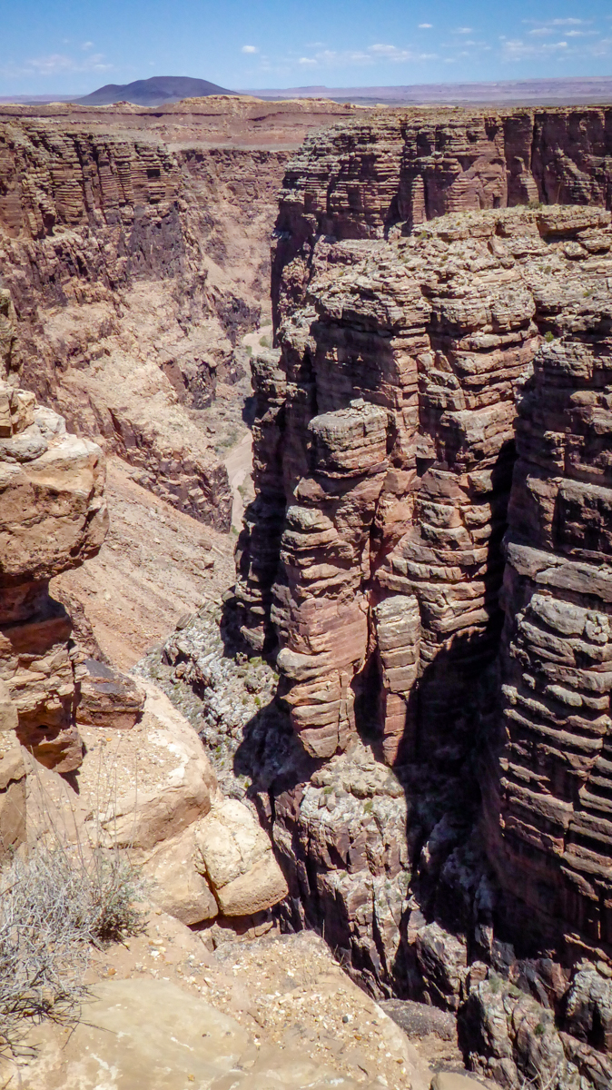 Next we visited the Wupatki National Monument, Wupatki, which means “Tall House” in the Hopi language, was first inhabited around 500 AD, and is a multistory pueblo dwelling comprising over 100 rooms, making it the largest building for nearly 50 miles. Nearby secondary structures have also been uncovered, including two kiva-like structures. We wandered through the ruins exploring the different buildings. The dwelling’s walls were constructed from thin, flat blocks of local sandstone giving the pueblos their distinct red color, and held together with mortar, many of the walls still standing today. Click on thumbnail to view image