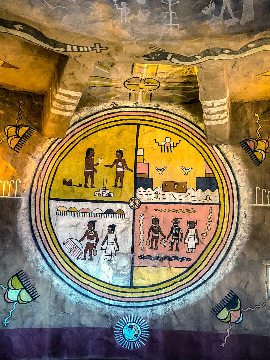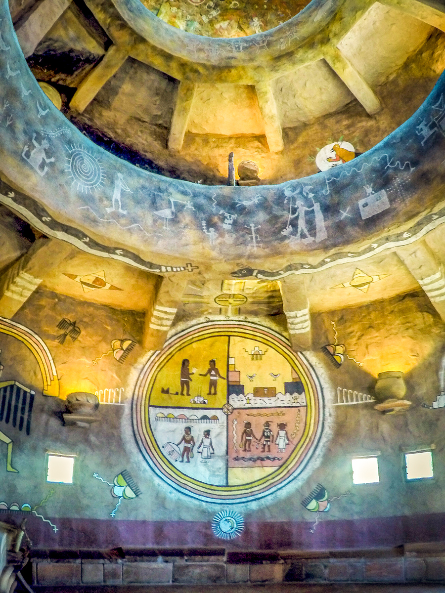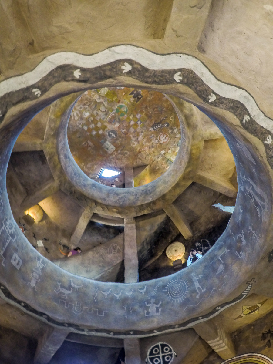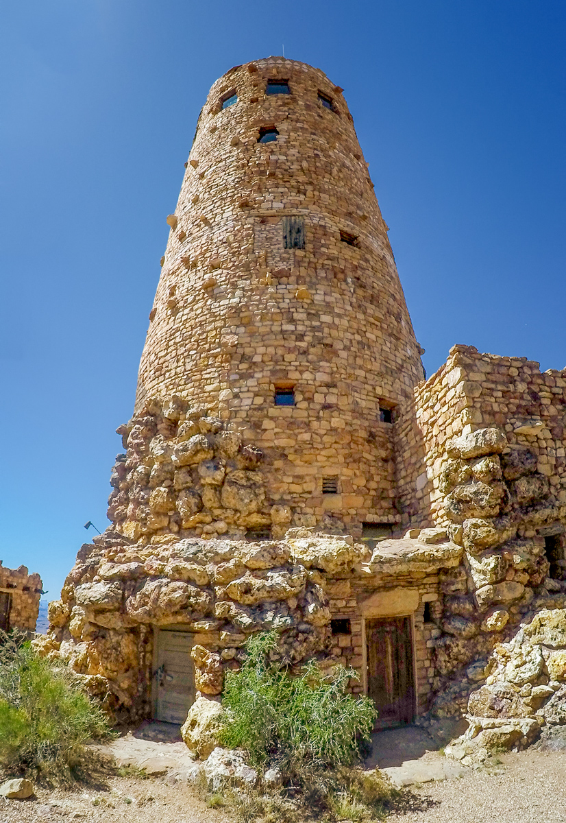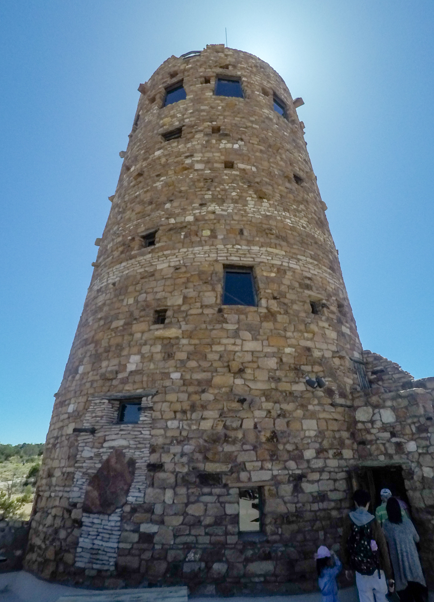 Arrived in Flagstaff, AZ and staying at the J and H RV Park just north of Flagstaff for a few days. Spent a fabulous day driving to the Grand Canyon East Entrance from Cameron along the Desert View Scenic Drive. The views along the way were beautiful and we stopped at several lookouts before arriving at the historic Watchtower. The Indian Watchtower at Desert View, is a 70-foot high stone building, and the four-story structure was completed in 1932. The tower was designed to resemble an Ancient Pueblo Peoples watchtower. The main space is the Kiva Room in the base structure, and features a fireplace with a large picture window directly above where the chimney would ordinarily go. The tower is decorated by bold murals by Fred Kabotie. The small windows in the tower’s shaft let beams of light into the space as we climbed up the small staircase. The upper floors serve as an observation deck from which we can view the eastern portions of the Grand Canyon. The views were spectacular from this vantage point. Click on thumbnail to view image