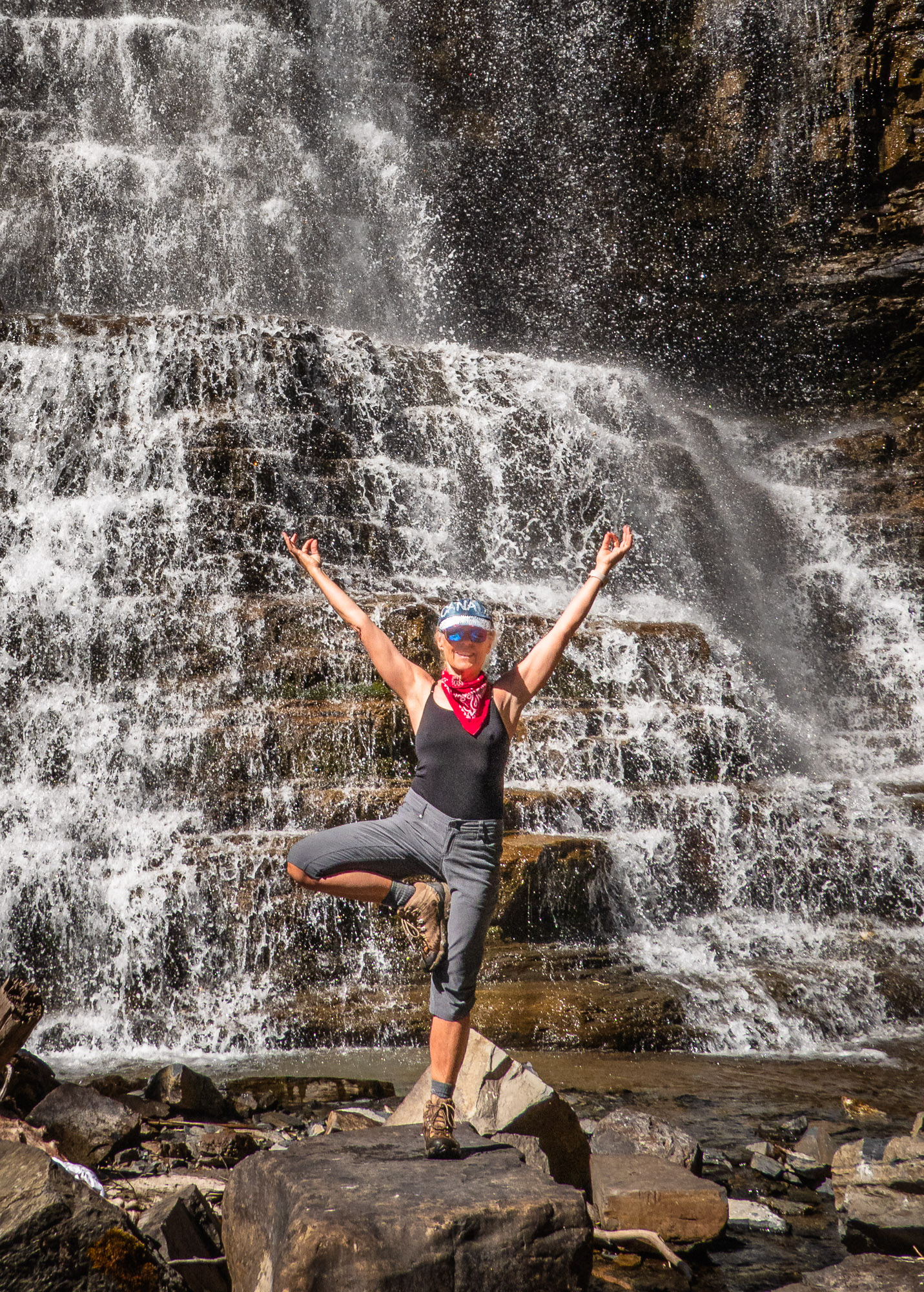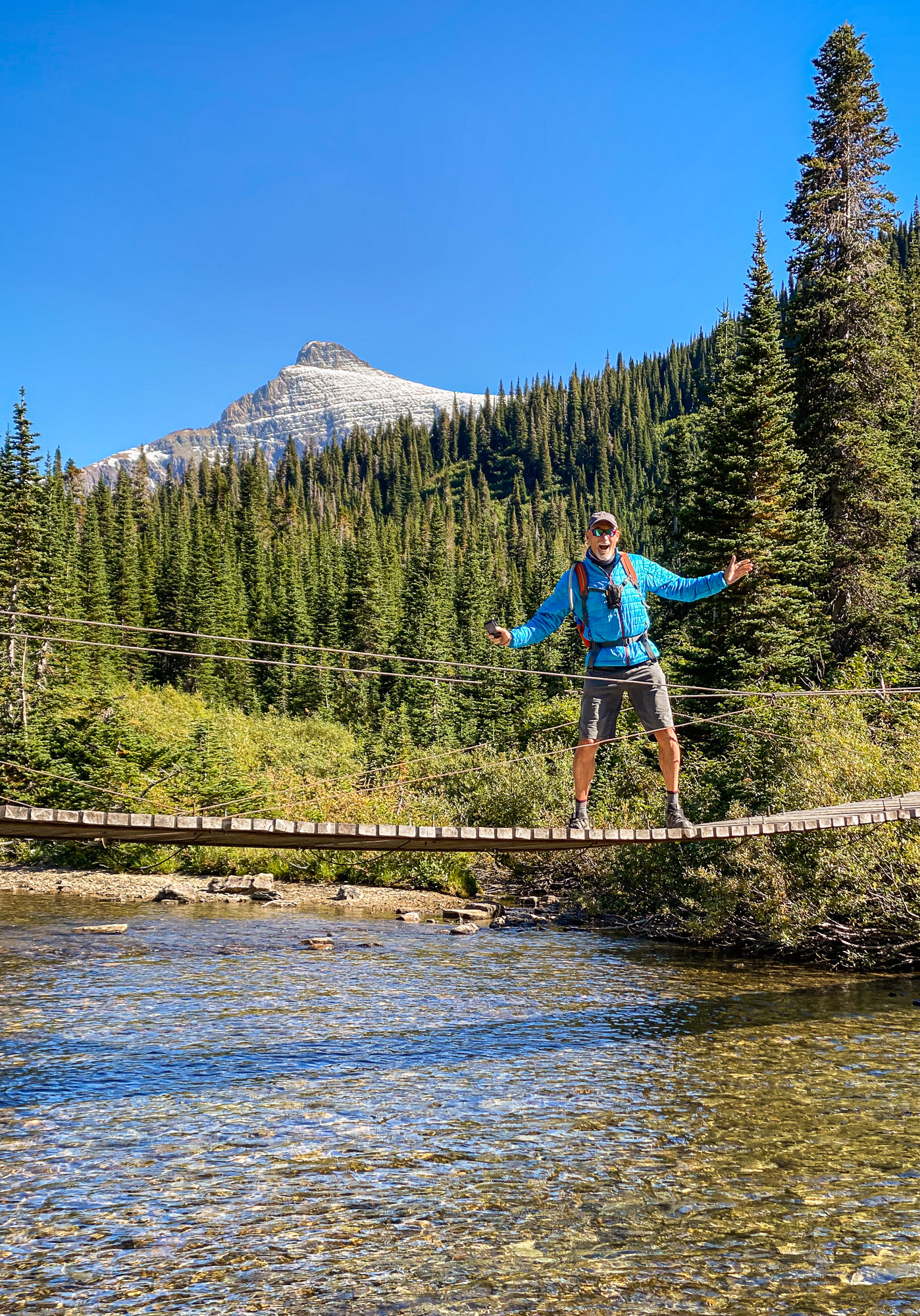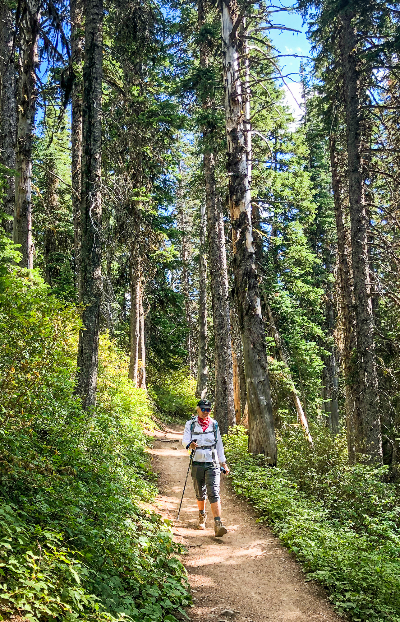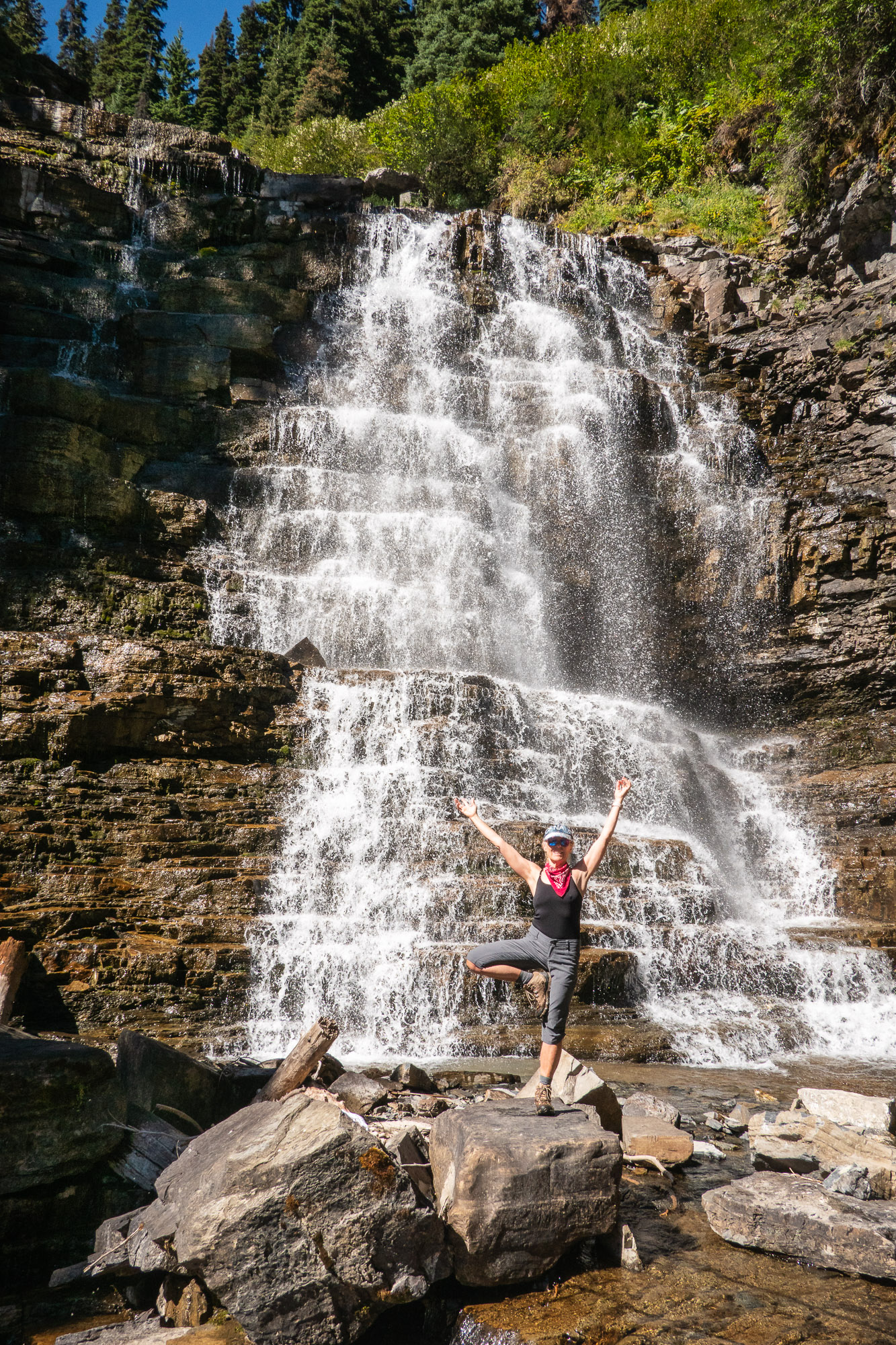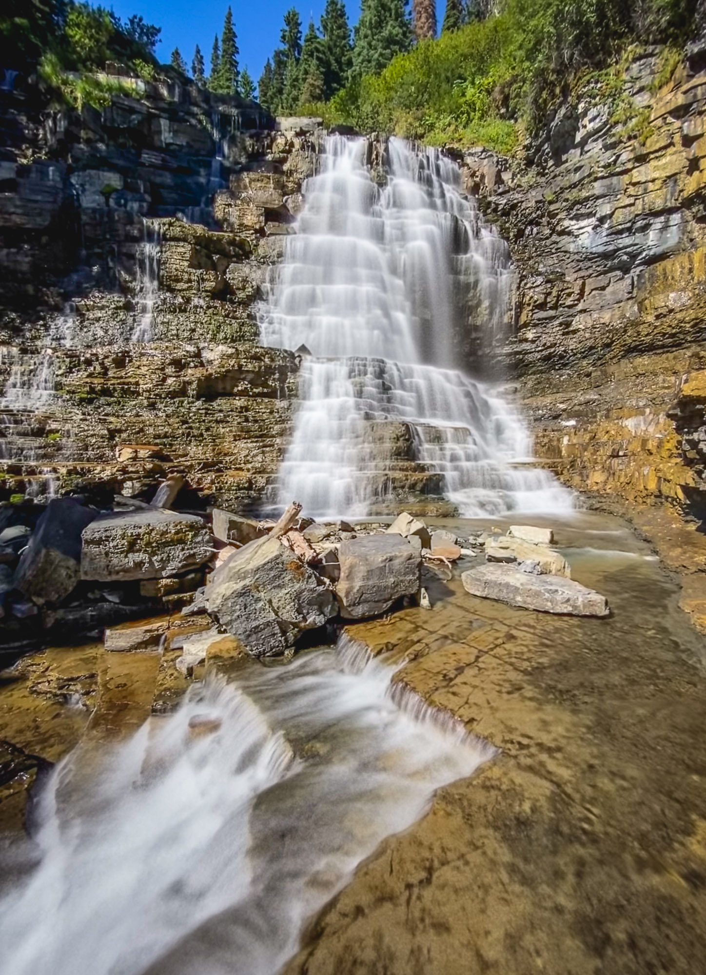 Two more wonderful day hikes that we had not done before while at Glacier National Park, the first was to Gunsight Lake from the Gunsight Pass Trailhead on the Going-to-the-Sun Road east of Logan Pass. The trail started in a gradual descent for about a mile when we came to Deadwood Falls, a beautiful 10-foot waterfall with deep crystal clear pools of water above and below the falls. We continued on for about 2 miles to the St Mary River and the beautiful valley where we were hoping to spot a moose that some hikers had seen earlier. No luck this time. A little further along we came to an opening in the canopy that provided us with one of the most magnificent views in Glacier. In the foreground is an open grassy meadow alongside Mirror Pond and framing the background is Mount Jackson, Gunsight Mountain and Fusillade Mountain, as well as Gunsight Pass.