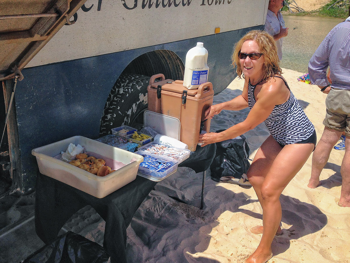 The next morning started with a drive along the 75 mile beach when we came upon two planes. They asked us if anyone wanted to take a flight over Fraser Island and we jumped at the chance, of course it was extra. Fraser Island is one of two islands in the world where planes can land and take off from the beach. It was well worth the trip, to see ancient gravity defying rain forests, growing out of only sand, brilliant blue freshwater lakes and spectacular sand formations; definitely one of the most incredible islands on earth. Next we continued down the beach to Eli Creek, the largest fresh water creek on the eastern beach. Where we stopped for a dip in this pure water.