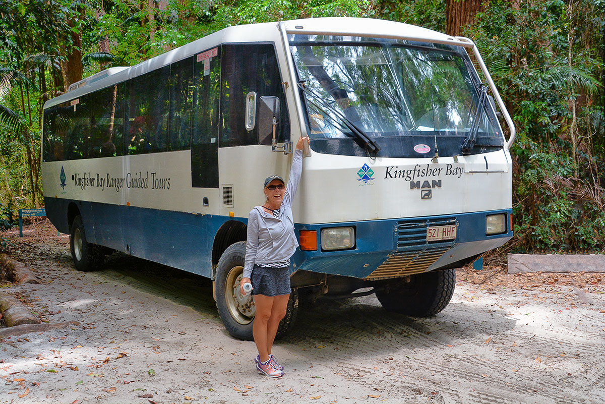 November 3, Monday, we headed north to Hervey Bay, about a 4 hour drive from Dicky Beach. It is a natural bay between the mainland and Fraser Island, and the local economy is based on tourism, primarily whale watching and access to Fraser Island, the largest sand island in the world, that stretches over 76 miles in length and 13 miles at its widest point. Fraser Island beaches and sandy inland roads are suitable only for high clearance 4WD vehicles with low range capacity, so we could not take our car. We booked a two day tour leaving at 8am the next morning ready for another adventure in a 4WD tour bus carrying about 30 tourists from all over the world, a lot of Germans.