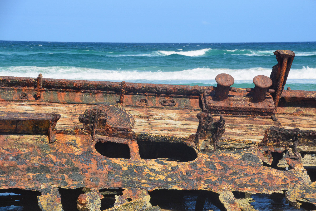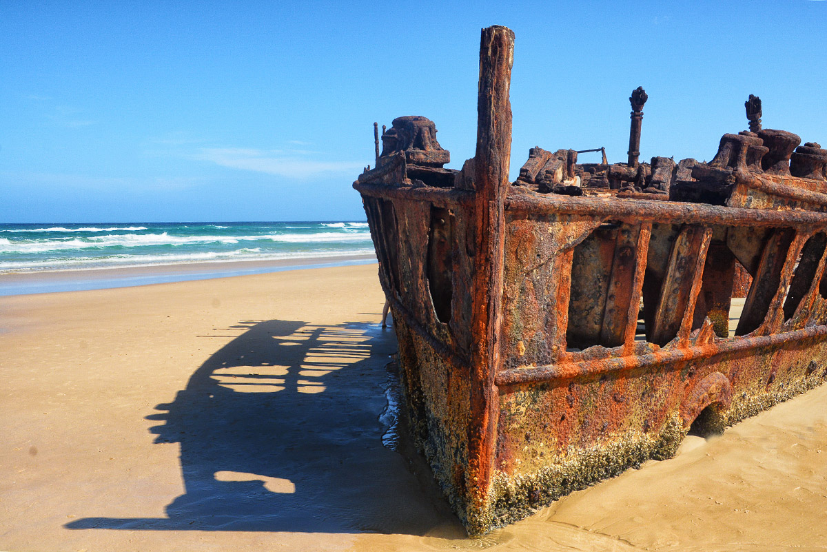Located at the end of 75 mile beach is the volcanic promontory known as Indian Head, a coastal headland and the most easterly point on the Island. It was named by Captain Cook in 1770 for the Aboriginal people he saw gathered there. “Indian” was the name for the native people back then. We climbed to the top of Indian Head where we had beautiful 360 degree views and good wildlife spotting. We saw large turtles swimming in the water far below us. On our way back along the beach we stopped to explore the wreck of the SS Maheno, meaning “island” in Maori. The SS Maheno, a 5,000 ton steel hulled ship, an ocean liner belonging to a company in New Zealand that operated the Tasman Sea from Australia to New Zealand between 1905 and 1935. It was also used as a hospital ship during WWI. During a severe cyclone in 1935 it was beached off the coast of Fraser Island, where it continues to disintegrate and rust.
