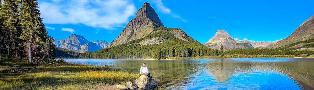 Our first morning greeted us with dense clouds and fog—definitely not the ideal conditions we were hoping for. We were uncertain whether our planned visit to Many Glacier and the Grinnell Lake hike would be worth it. But we decided to press on, and we were rewarded with clear skies and sunshine. The fog had lifted, and not a hint of wind disturbed the stillness.
