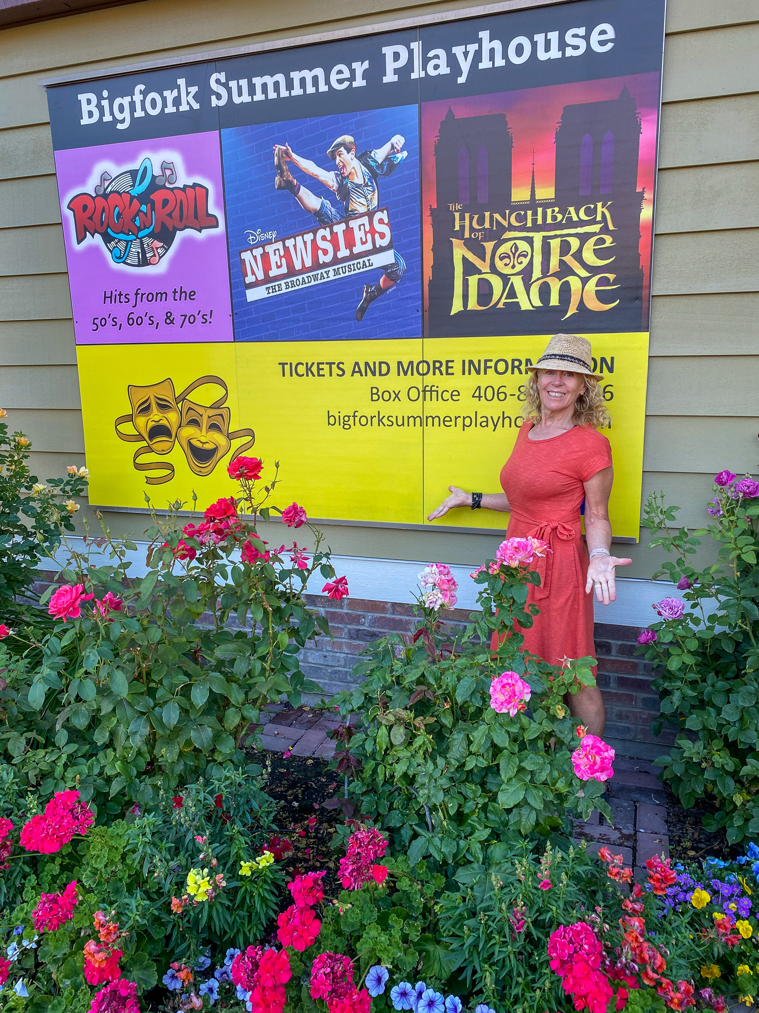 On our anniversary, August 21st, we bought tickets to the Theater in Bigfork to see the show Newsies. Only 30 minutes south of Columbia Falls, Bigfork is a fork where two rivers, the Flathead River and the Swan River flow into the Flathead Lake. The town is home to a 27-hole golf course, art galleries, and live theater. Bigfork Summer Playhouse offers Broadway-caliber productions every summer, and we were lucky to get two tickets to the Newsies. We ate dinner at the Bigfork Inn sitting outside on the deck with views looking down main street. The show was fabulous and we will definitely try to come back for another performance another summer. Click on thumbnail to view images