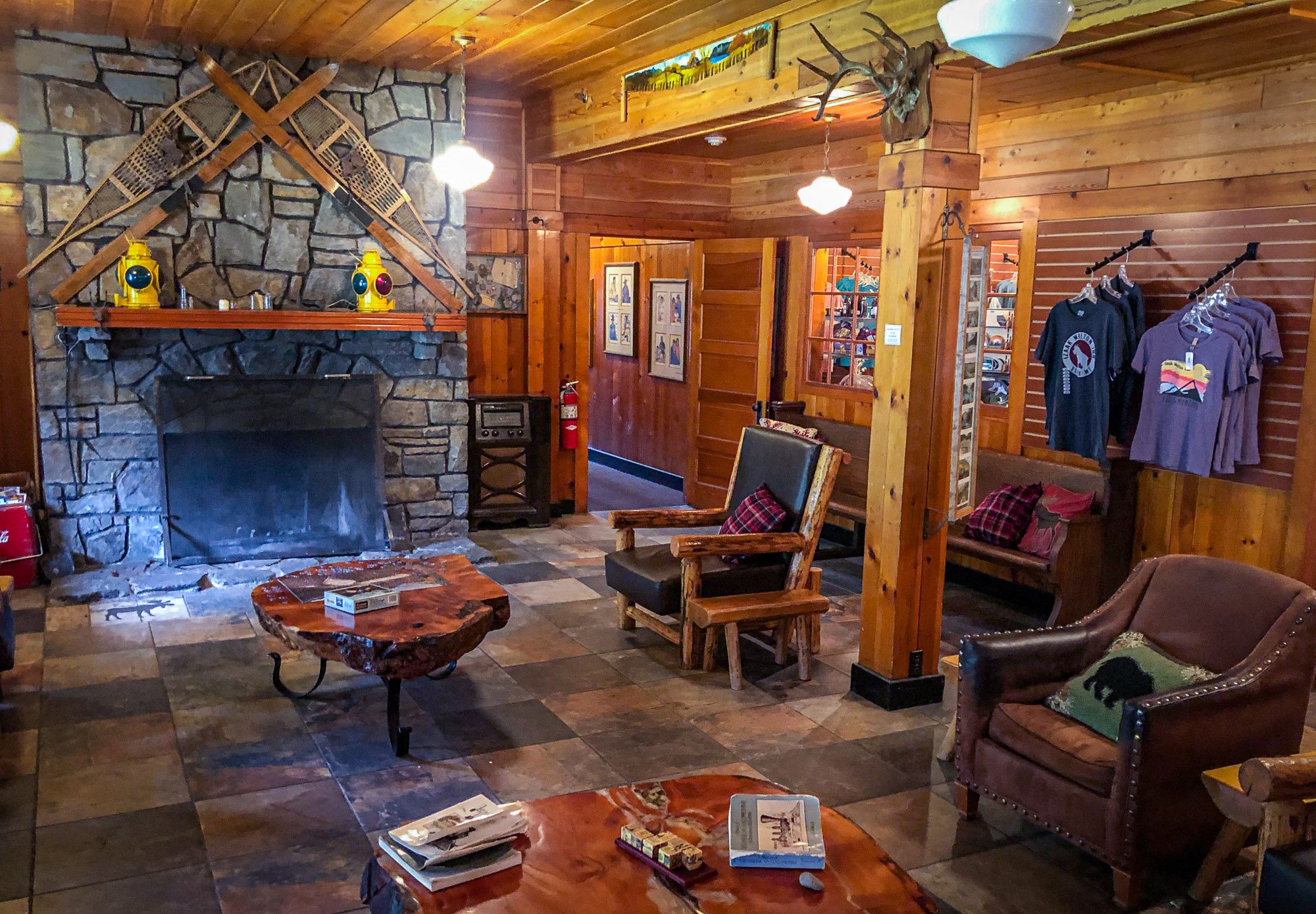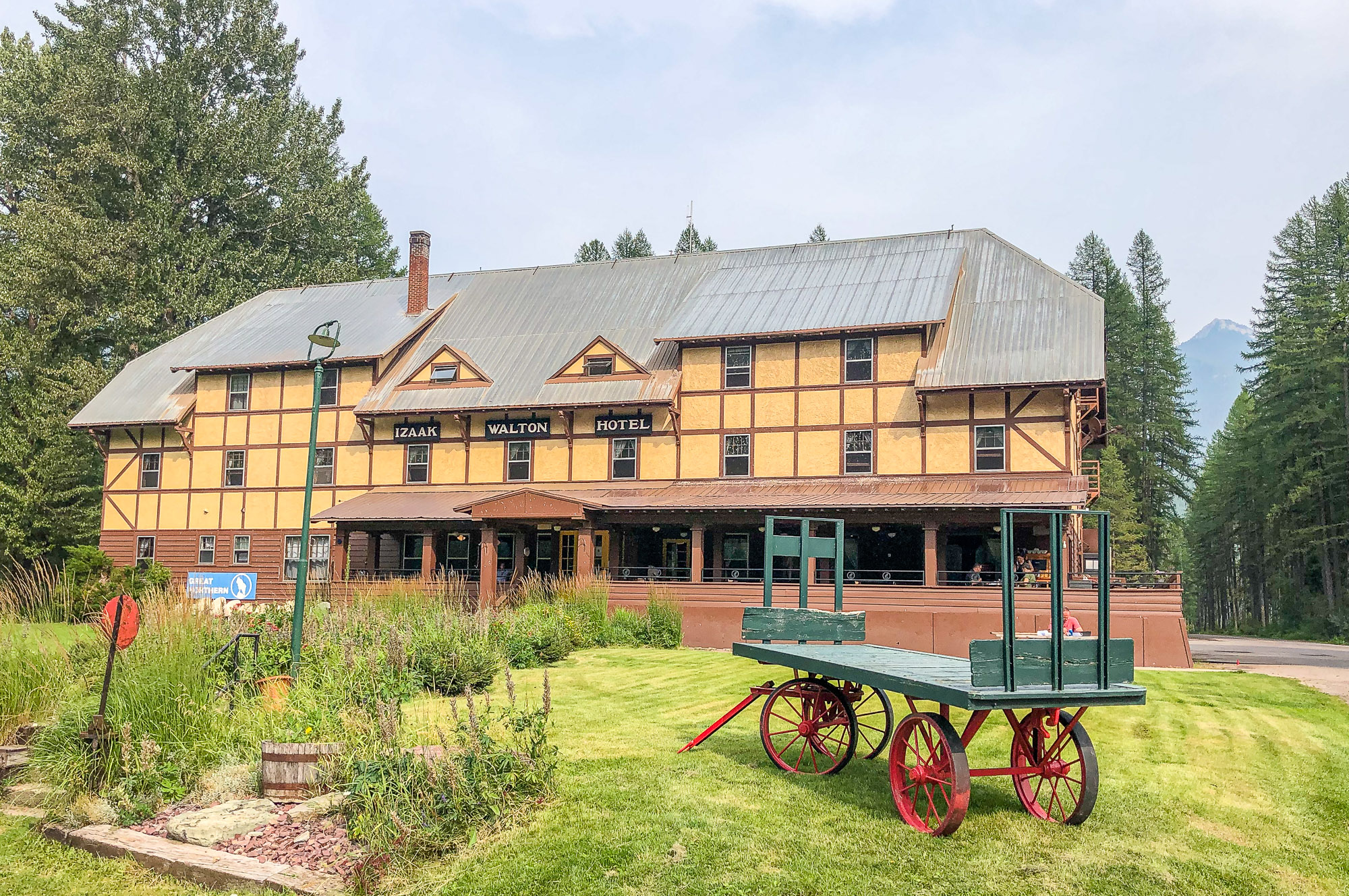 Another day we drove out to the small town of Essex 26 miles southeast of West Glacier not inside the Park. Named for a county in England, Essex (originally known as Walton) began as a small town on the Great Northern Railway’s main line. We went there to visit the Izaak Walton Inn, a historic inn, originally built as the Izaak Walton Hotel in 1939 by the Great Northern Railway as a soup kitchen and lodgings for the railway workers. Today, the Inn is served by Essex station, the only request stop on the Amtrak’s Empire Builder route. The Tudor Revival inn is named after Sir Izaak Walton, the English writer and fisherman. The inn has 33 rooms for rent within the inn itself, as well as refurbished cabooses on the grounds and is open year-round except for some weeks during the off season.