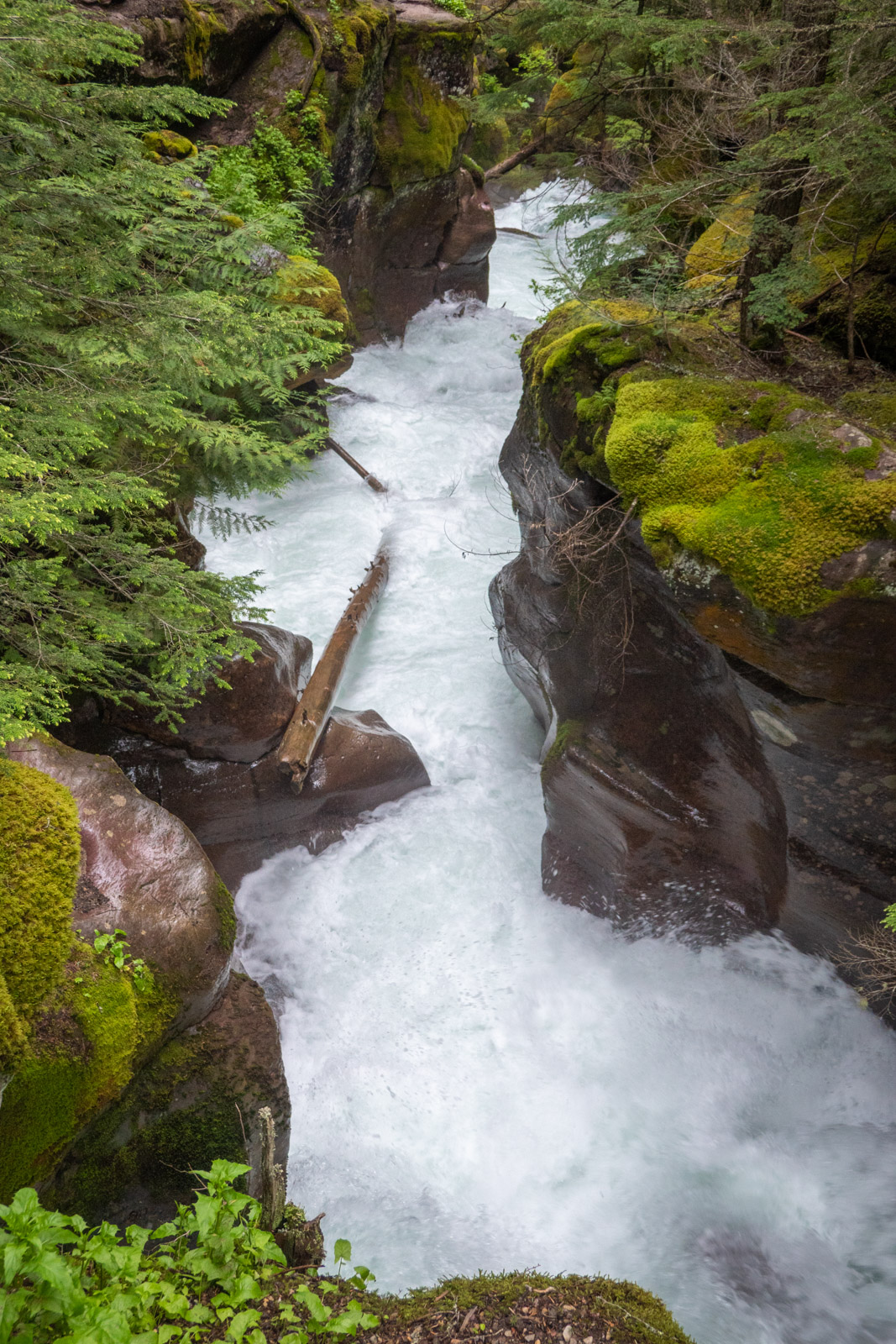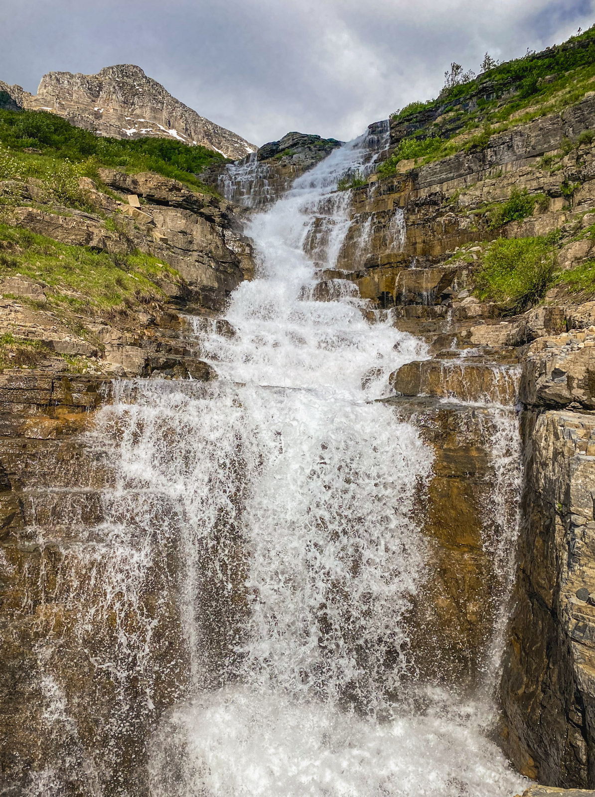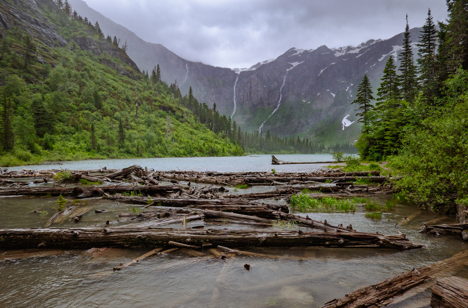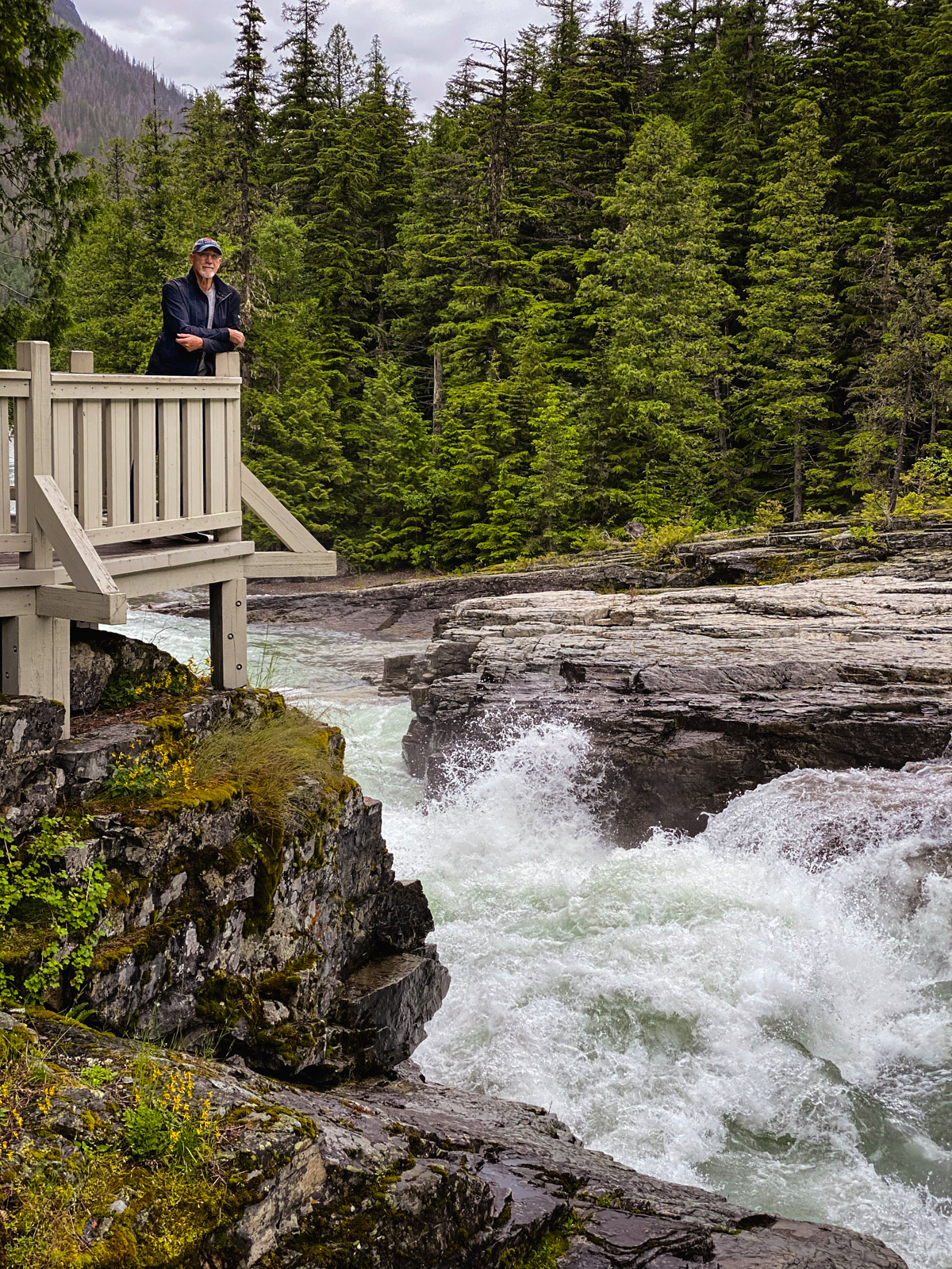 On June 29th, Monday, we arrived at Columbia Falls RV Resort in Columbia Falls, Montana. For three weeks we plan on exploring Glacier National Park as much as possible, due to COVID-19 East Glacier is closed. Our first adventure after the rain stopped was to hike to Avalanche Lake, a short 2 mile hike from the trailhead along the Trail of the Cedars that begins on the Going-to-Sun-road. It was a wet/cloudy day as we began hiking up the trail to the bridge over Avalanche Creek. The view of the lower Avalanche Gorge was very impressive and the highlight along this stretch of the trail. The trail was full of hikers, as it is one of the more popular easier hikes in the Park but well worth the view of Avalanche Lake. At 2.3 miles we finally reached the foot of Avalanche Lake with a large beach area to sit and soak-in the magnificent scenery. The Lake sits at the base of 8,694-foot Bearhat Mountain, which rises almost 4,800 feet above the lake. In the distance we saw several waterfalls plunging down the cliffs and mountains that surround the Lake, originating from Sperry Glacier that can’t be seen from the Lake. It was Dr. Lyman Sperry in June of 1895, exploring the basin, heard multiple avalanches roaring down the surrounding mountains, and thus the name Avalanche Basin became the name for the place. Avalanche Lake Trail was likely the first trail to be made for tourists in the Glacier Park area. Click on thumbnail to view images