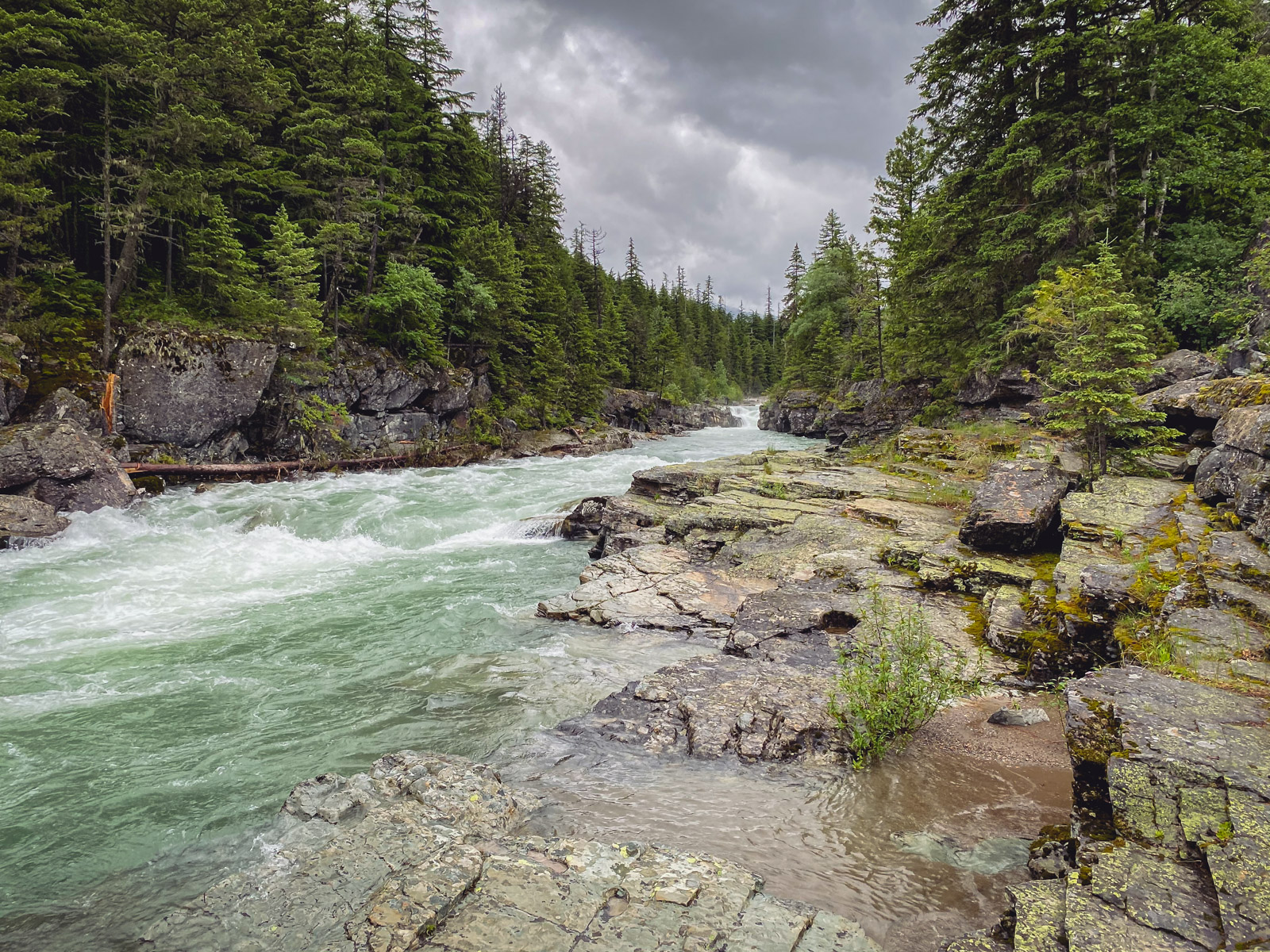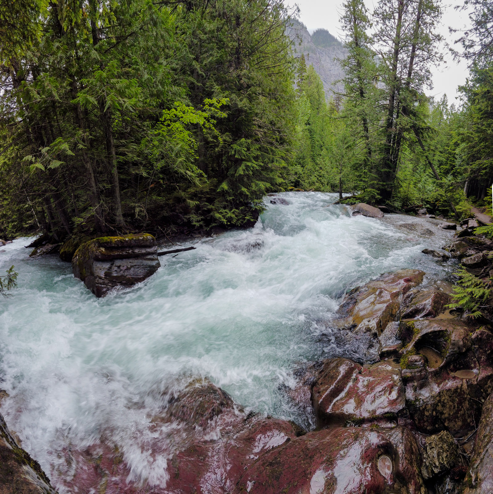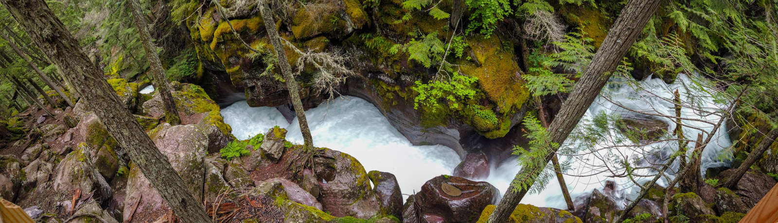 On June 29th, Monday, we arrived at Columbia Falls RV Resort in Columbia Falls, Montana. For three weeks we plan on exploring Glacier National Park as much as possible, due to COVID-19 East Glacier is closed. Our first adventure after the rain stopped was to hike to Avalanche Lake, a short 2 mile hike from the trailhead along the Trail of the Cedars that begins on the Going-to-Sun-road. It was a wet/cloudy day as we began hiking up the trail to the bridge over Avalanche Creek. The view of the lower Avalanche Gorge was very impressive and the highlight along this stretch of the trail. The trail was full of hikers, as it is one of the more popular easier hikes in the Park but well worth the view of Avalanche Lake. At 2.3 miles we finally reached the foot of Avalanche Lake with a large beach area to sit and soak-in the magnificent scenery. The Lake sits at the base of 8,694-foot Bearhat Mountain, which rises almost 4,800 feet above the lake. In the distance we saw several waterfalls plunging down the cliffs and mountains that surround the Lake, originating from Sperry Glacier that can’t be seen from the Lake. It was Dr. Lyman Sperry in June of 1895, exploring the basin, heard multiple avalanches roaring down the surrounding mountains, and thus the name Avalanche Basin became the name for the place. Avalanche Lake Trail was likely the first trail to be made for tourists in the Glacier Park area. Click on thumbnail to view images