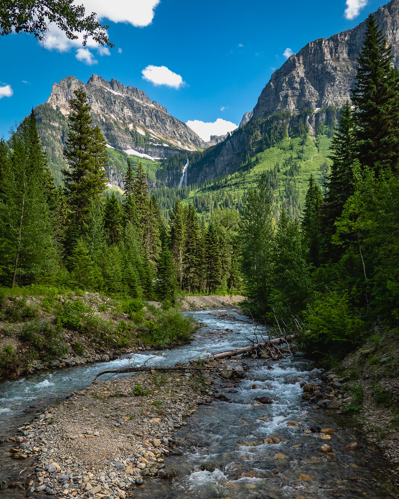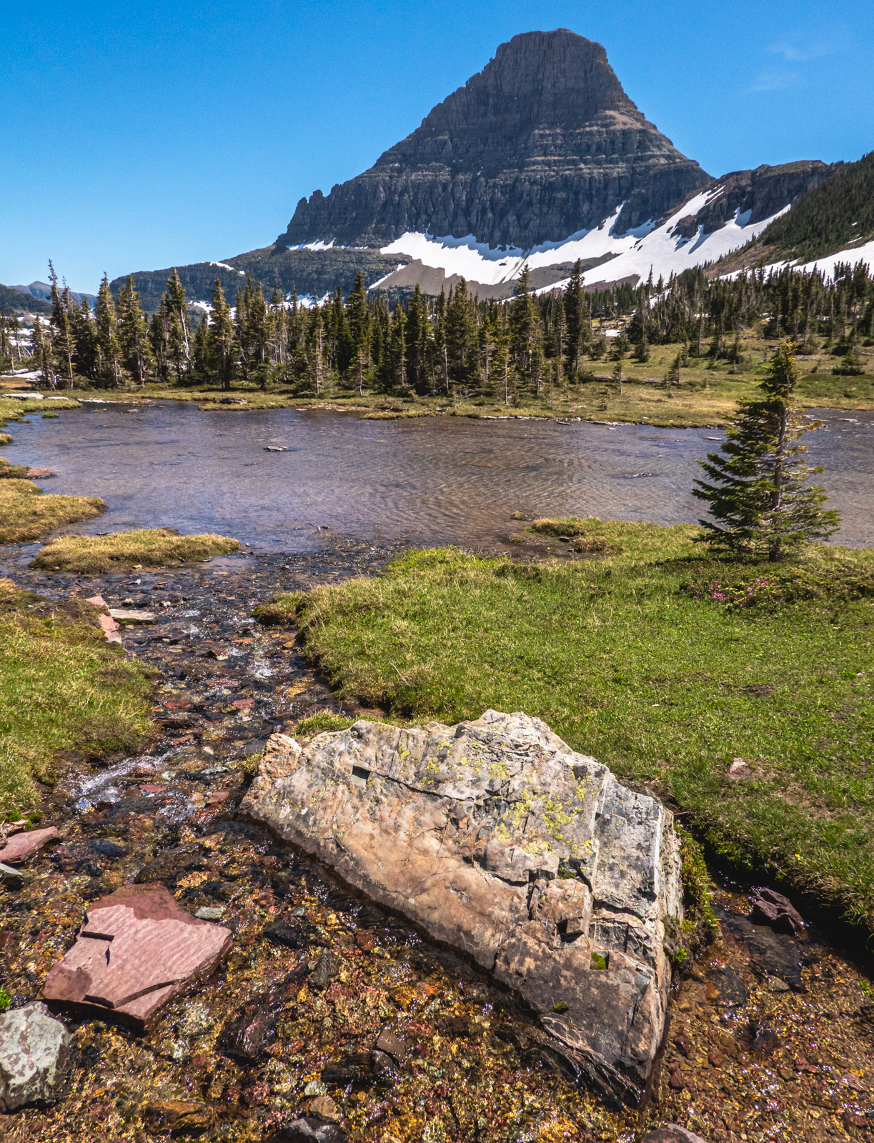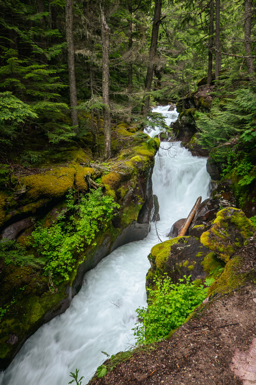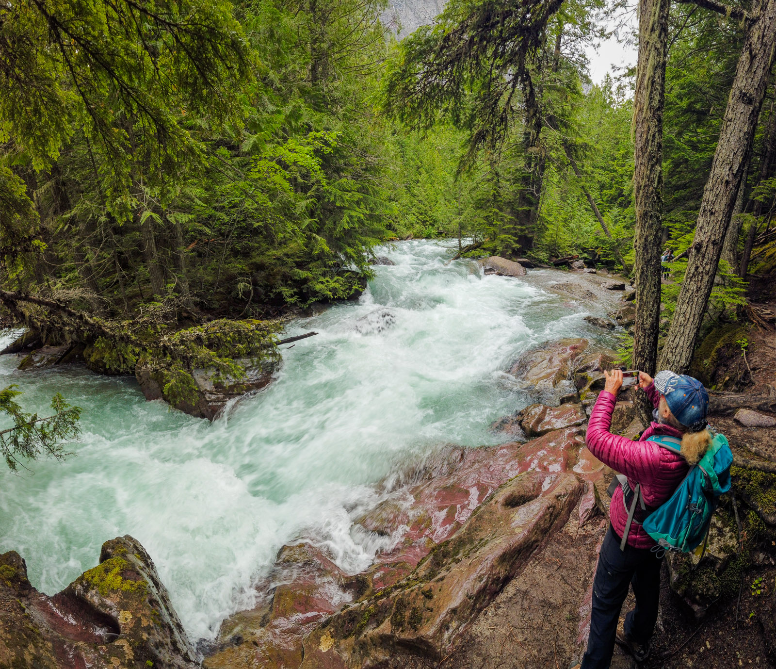 On June 29th, Monday, we arrived at Columbia Falls RV Resort in Columbia Falls, Montana. For three weeks we plan on exploring Glacier National Park as much as possible, due to COVID-19 East Glacier is closed. Our first adventure after the rain stopped was to hike to Avalanche Lake, a short 2 mile hike from the trailhead along the Trail of the Cedars that begins on the Going-to-Sun-road. It was a wet/cloudy day as we began hiking up the trail to the bridge over Avalanche Creek. The view of the lower Avalanche Gorge was very impressive and the highlight along this stretch of the trail. The trail was full of hikers, as it is one of the more popular easier hikes in the Park but well worth the view of Avalanche Lake. At 2.3 miles we finally reached the foot of Avalanche Lake with a large beach area to sit and soak-in the magnificent scenery. The Lake sits at the base of 8,694-foot Bearhat Mountain, which rises almost 4,800 feet above the lake. In the distance we saw several waterfalls plunging down the cliffs and mountains that surround the Lake, originating from Sperry Glacier that can’t be seen from the Lake. It was Dr. Lyman Sperry in June of 1895, exploring the basin, heard multiple avalanches roaring down the surrounding mountains, and thus the name Avalanche Basin became the name for the place. Avalanche Lake Trail was likely the first trail to be made for tourists in the Glacier Park area. Click on thumbnail to view images