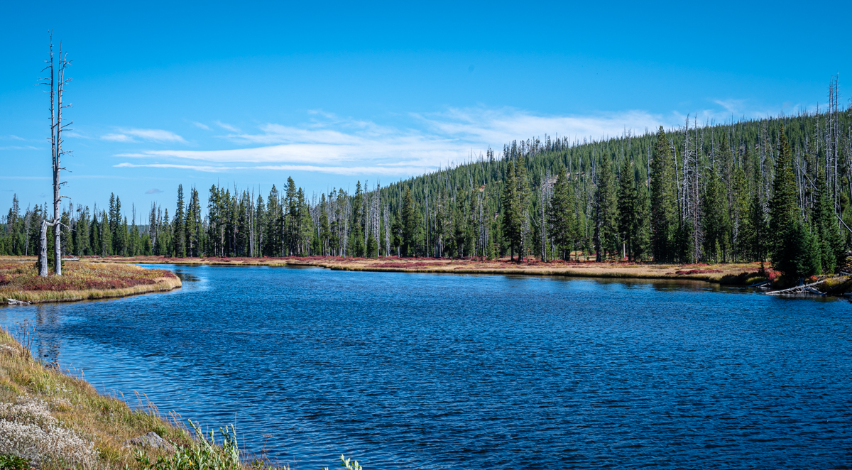 Our journey into Yellowstone National Park began at the South Entrance, where we were greeted by more spectacular scenery and the promise of adventure. We drove northward, past Lewis Lake, taking in the stunning views of the park’s natural beauty as we went. We passed West Thumb Lake, a beautiful body of water that is known for its striking blue-green color and geothermal features.