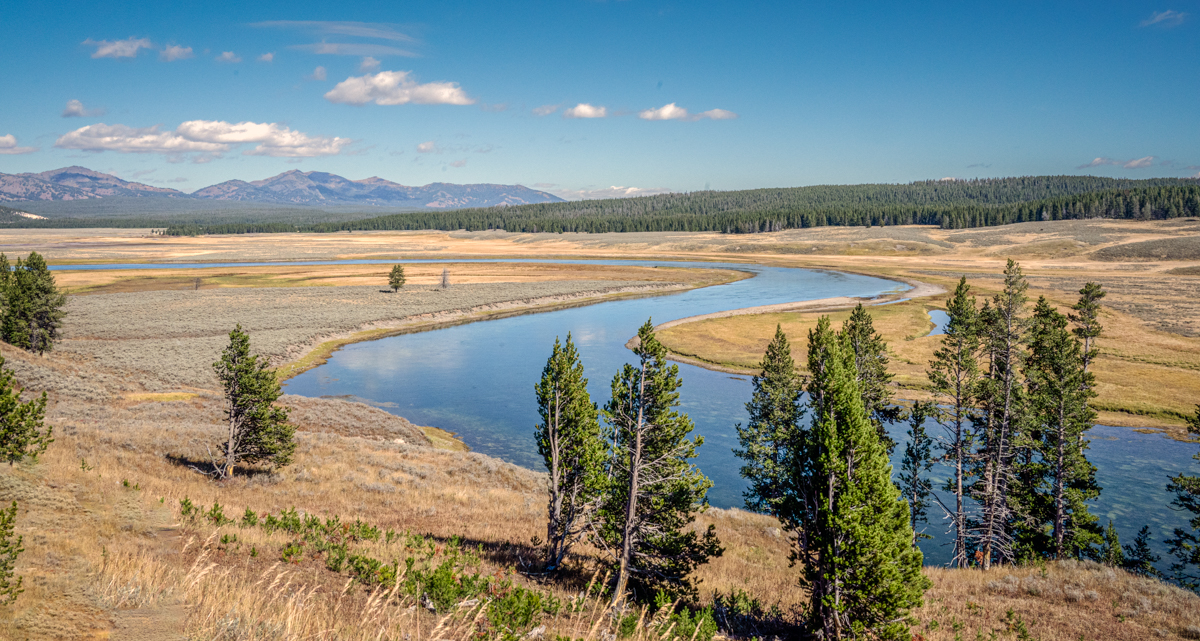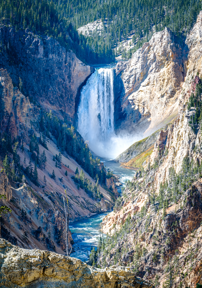 We continued along the North shore of Yellowstone Lake, which is one of the largest high-elevation lakes in the world, and marveled at the stunning views of the surrounding mountains and the sad sight of the once majestic forest that was destroyed by the 1988 forest fire . As we made our way towards the Upper and Lower Yellowstone Falls, we followed the Yellowstone River as it rushed towards its dramatic plunge.