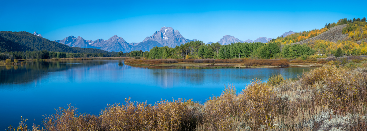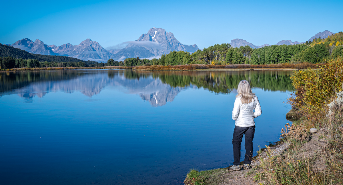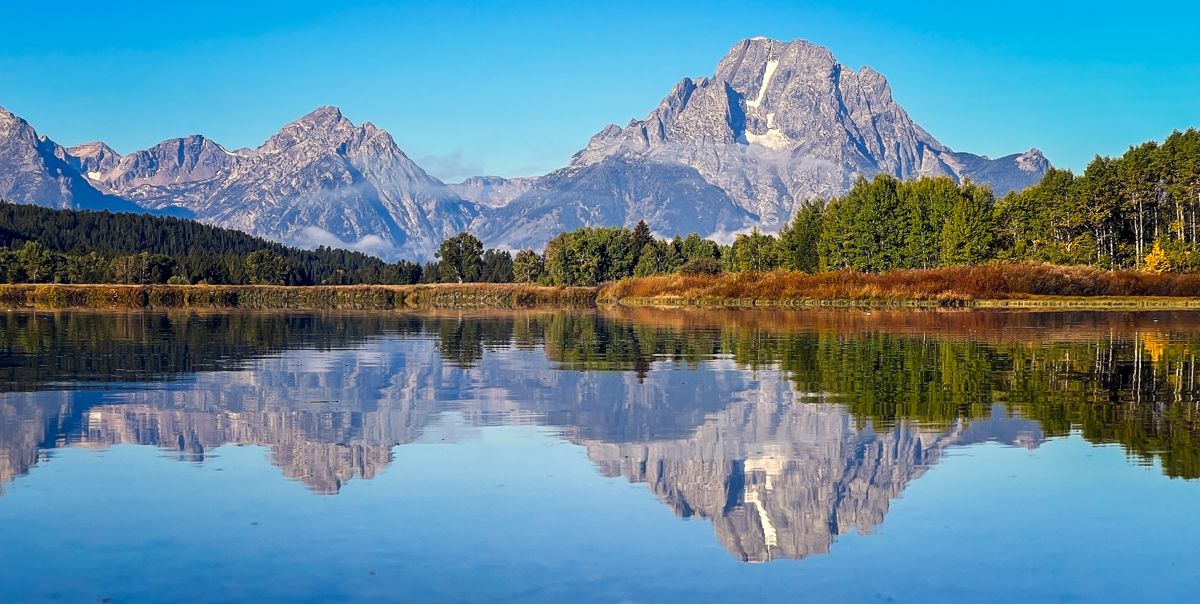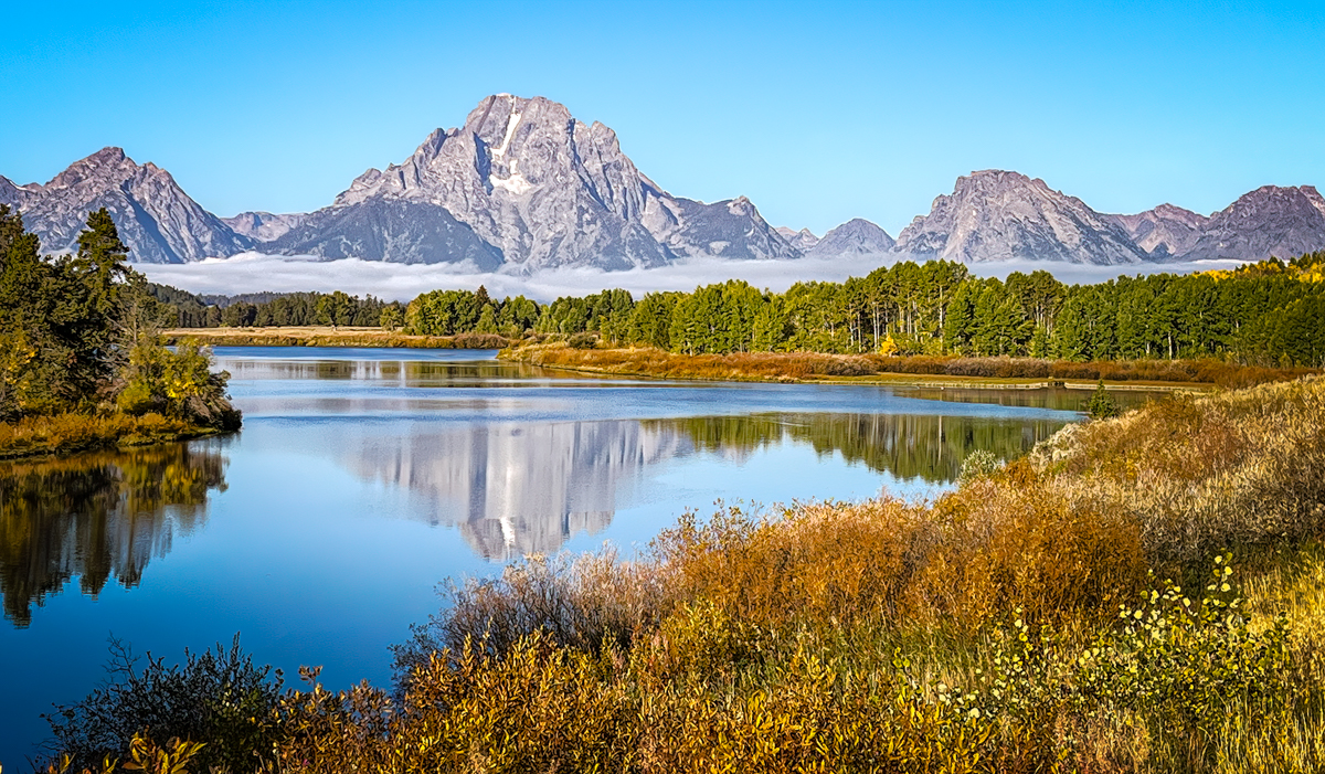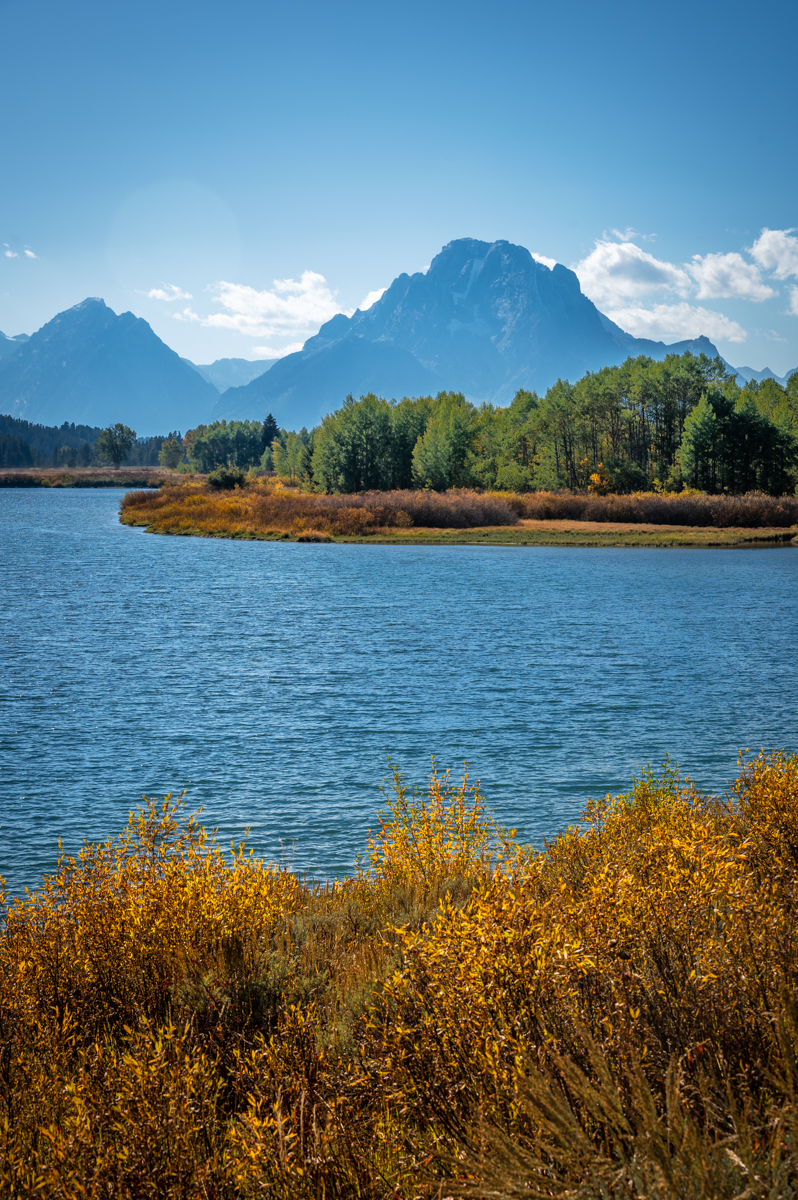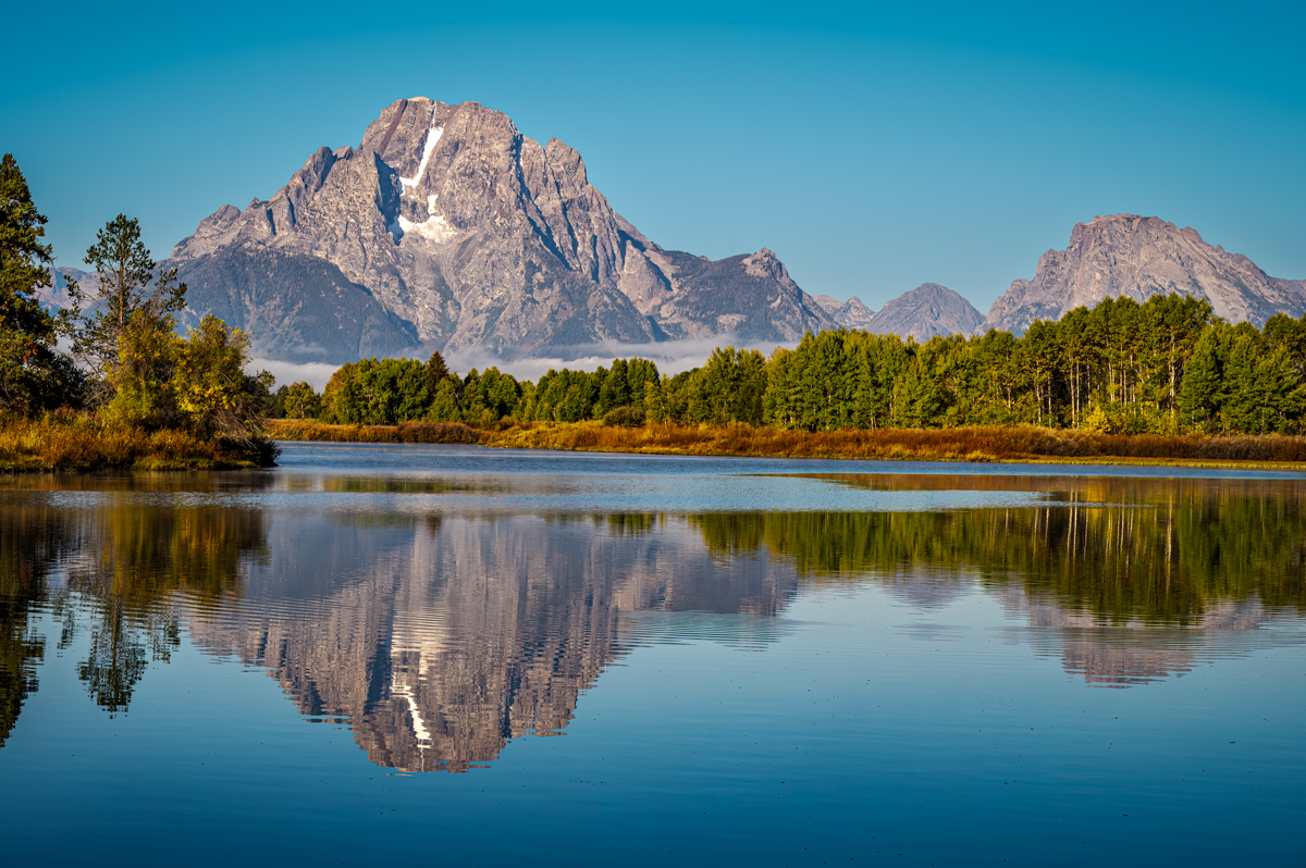 Our next stop was the Oxbow Bend overlook, and we were in for yet another treat. Mt. Moran, one of the tallest peaks in the Teton Range, was perfectly reflected in the tranquil waters of the Snake River. The scene was simply magical, and we couldn’t believe our luck in being able to witness such a stunning natural wonder.