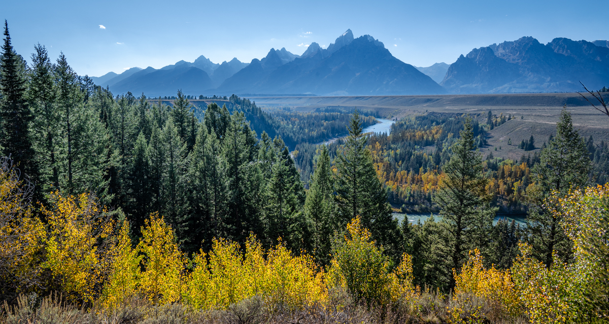 It had been a great day for photography, and we were eager to make one last stop before heading back to Victor. The Snake River Overlook, made famous by the iconic photographer Ansel Adams, was our final destination. From the overlook, where we were met with a sweeping vista of the Snake River and the Teton Range in the distance. Click on thumbnail to view image