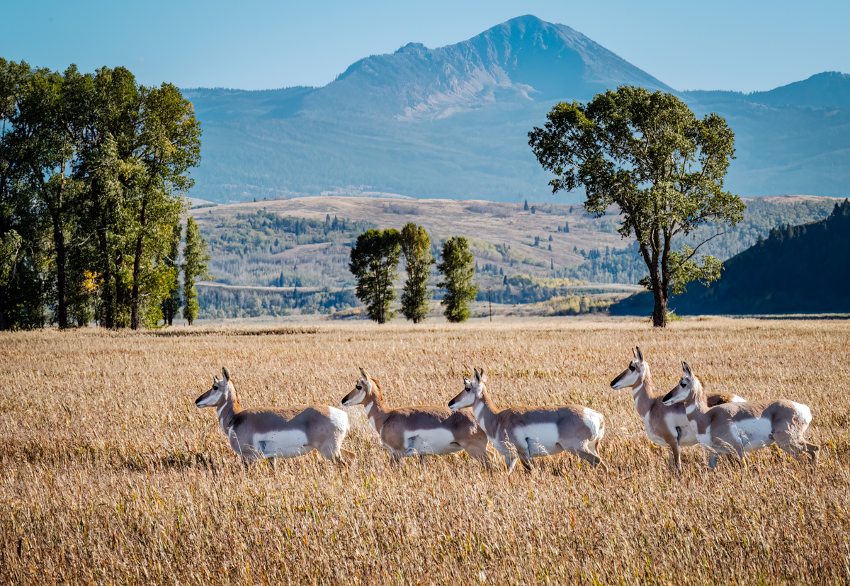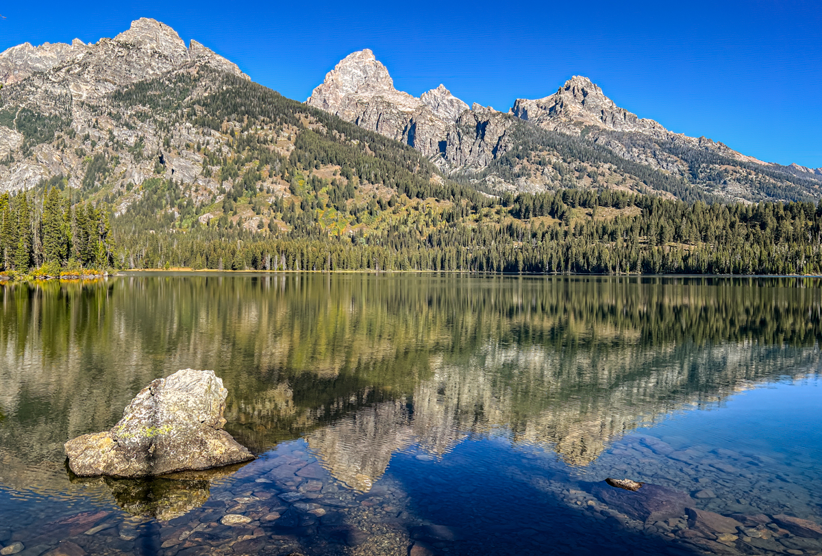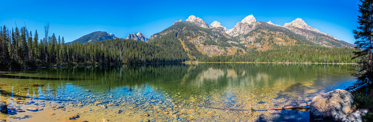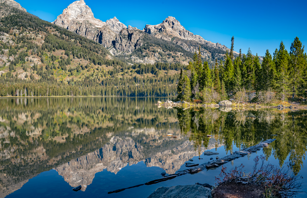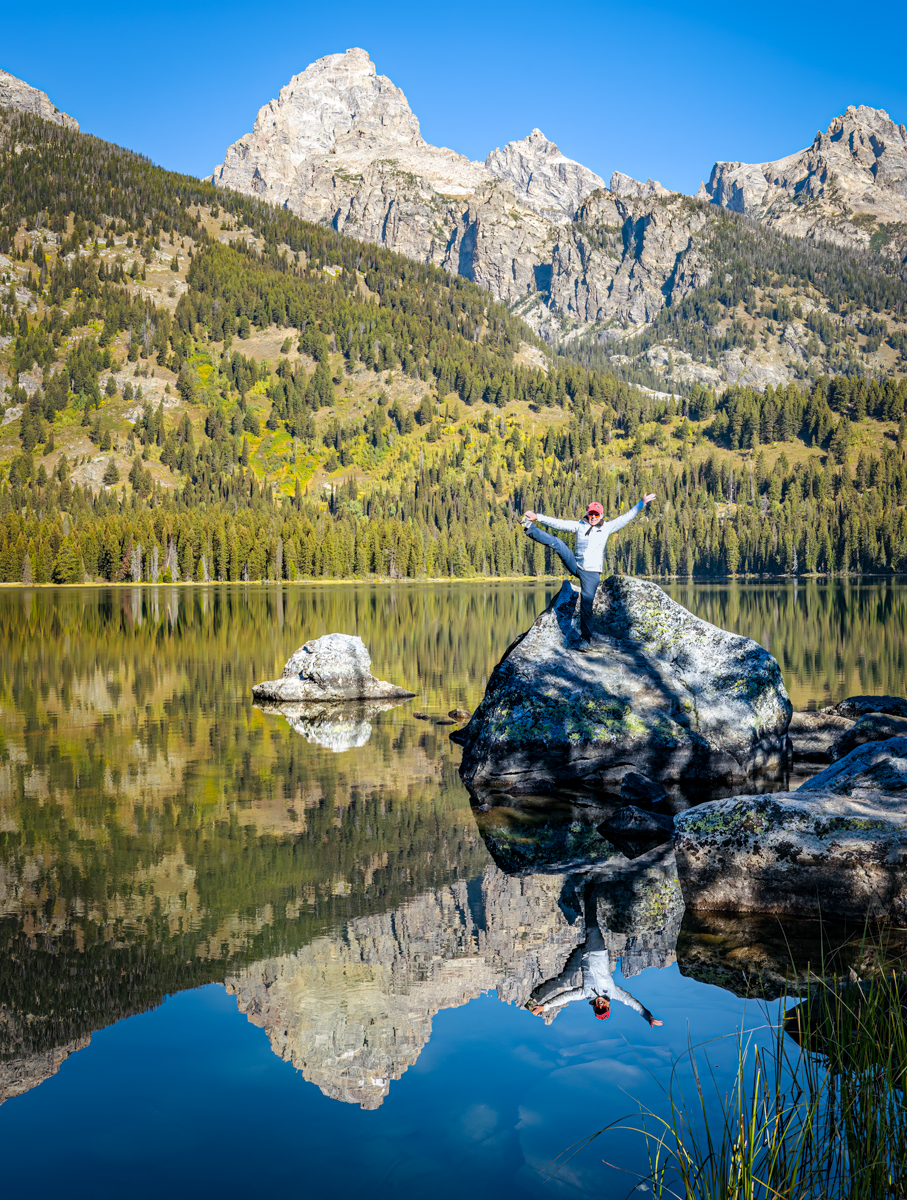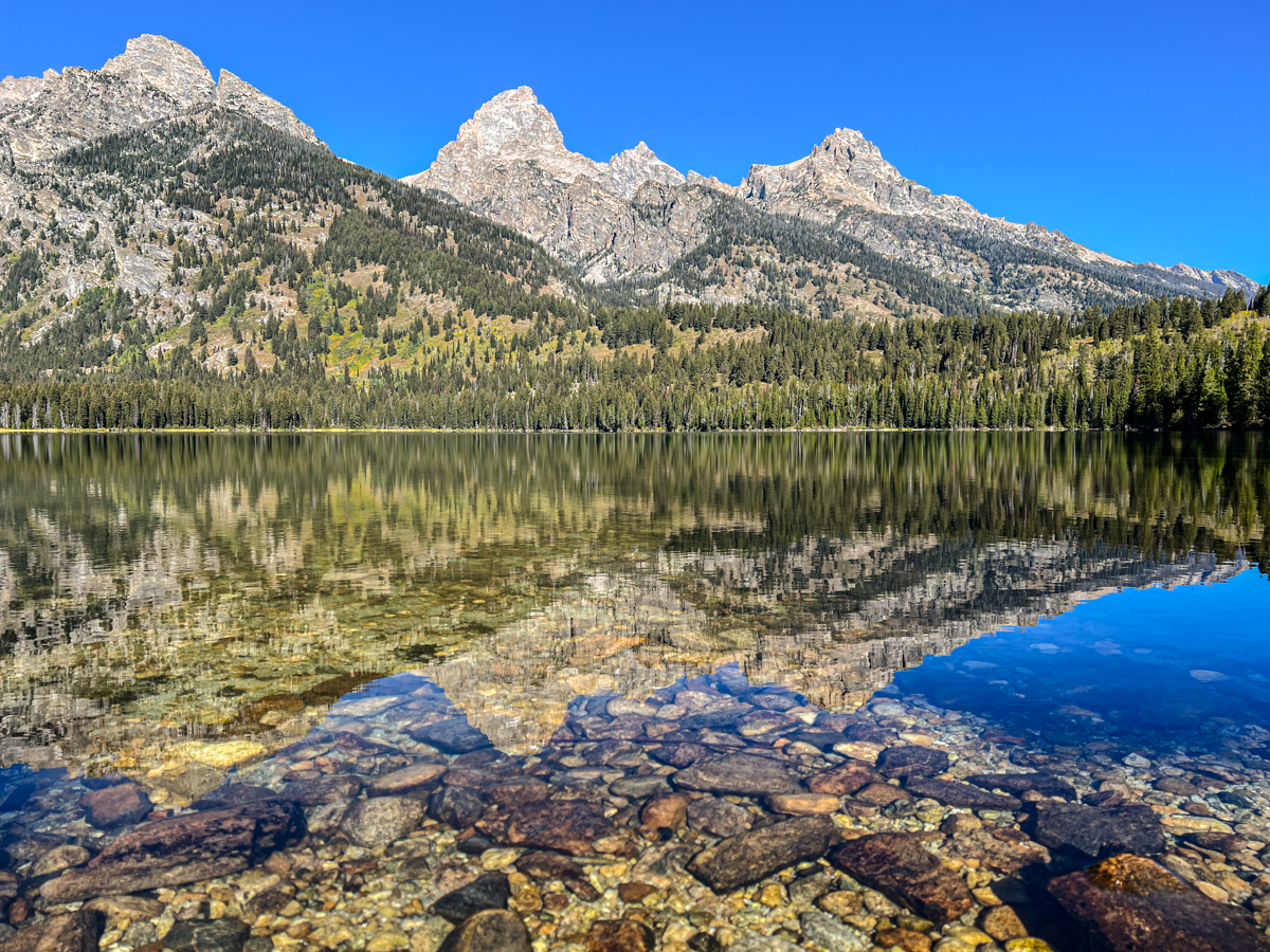 As we left the Moulton Bar in Grand Teton NP we were greeted by a herd of Pronghorns grazing in an adjacent field. We then drove on past Jenny Lake that was perfectly calm and gifted us with a perfect reflection of the Teton Range.