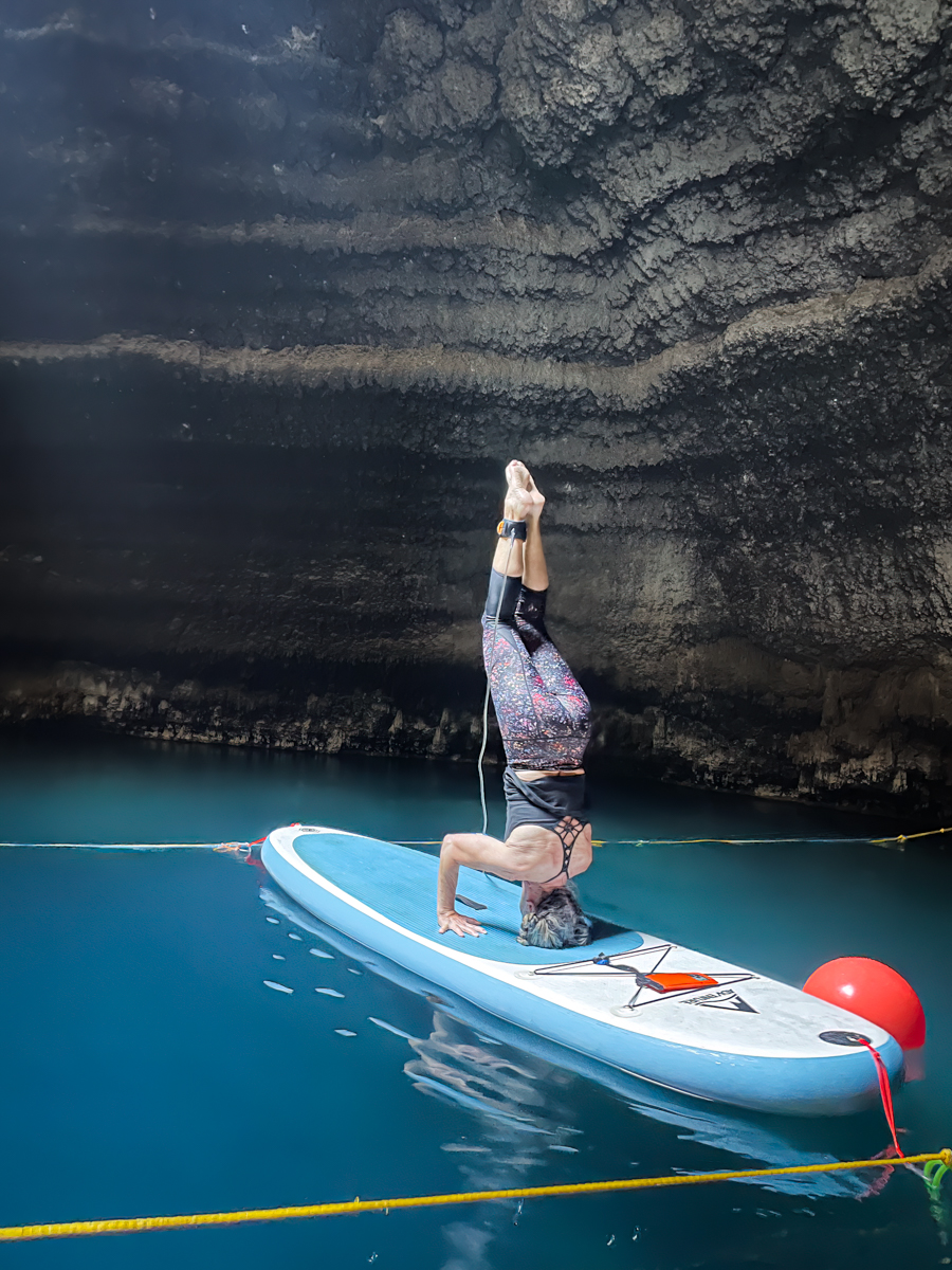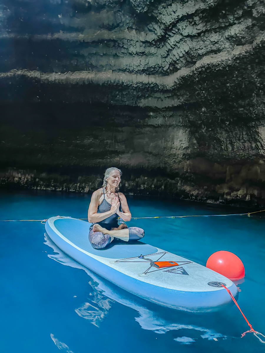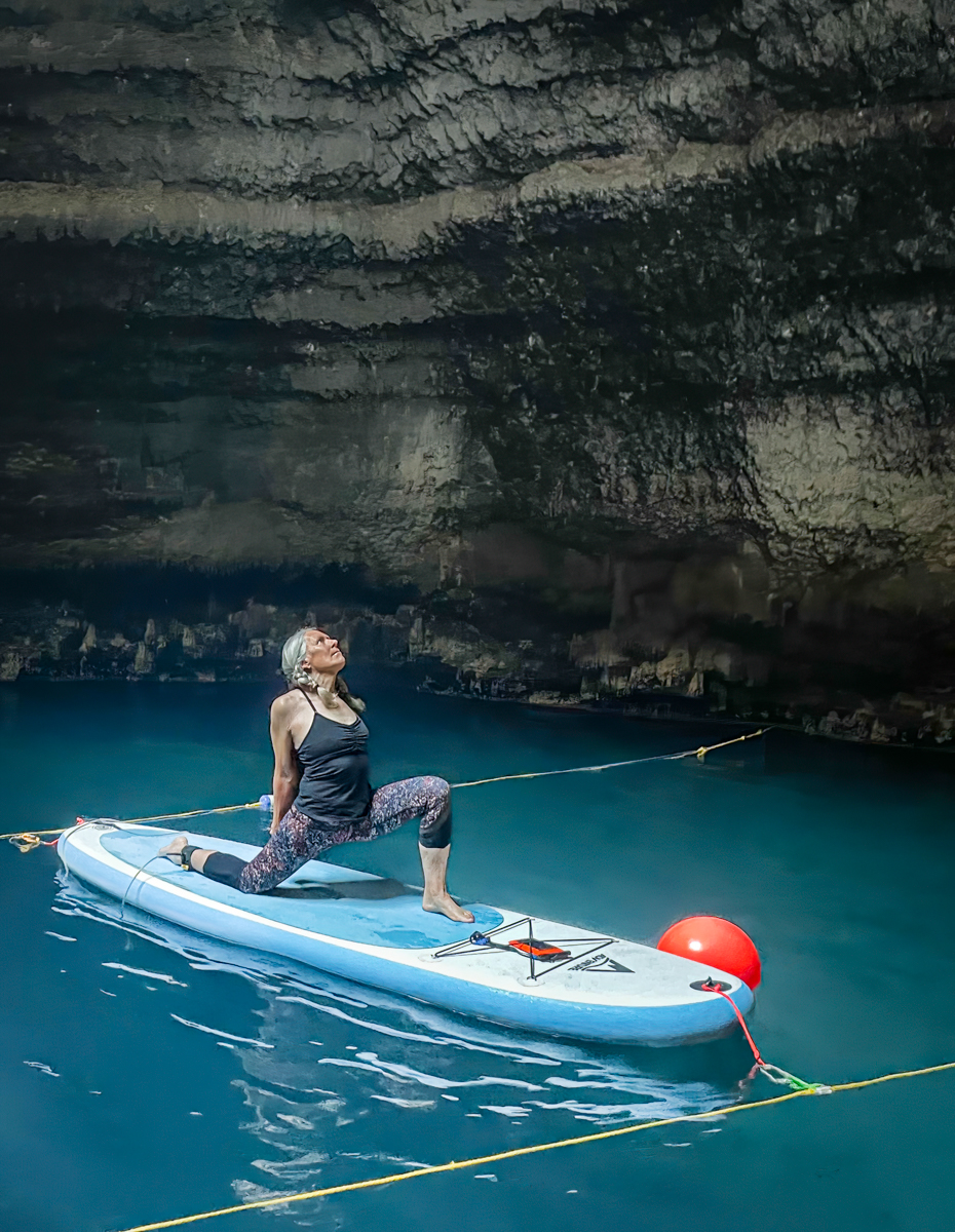 On our last day in Heber City, we had planned for a unique and unforgettable experience for Patty: paddleboard yoga at the Homestead Crater in Midway. The Homestead Crater is a natural geothermal hot spring hidden within a 55-foot tall limestone rock formation. We watched Patty as she gracefully balanced on her board while practicing yoga poses, surrounded by the tranquil waters and the steam rising from the warm natural pool. It was an experience that she would never forget. Click on thumbnail to view image