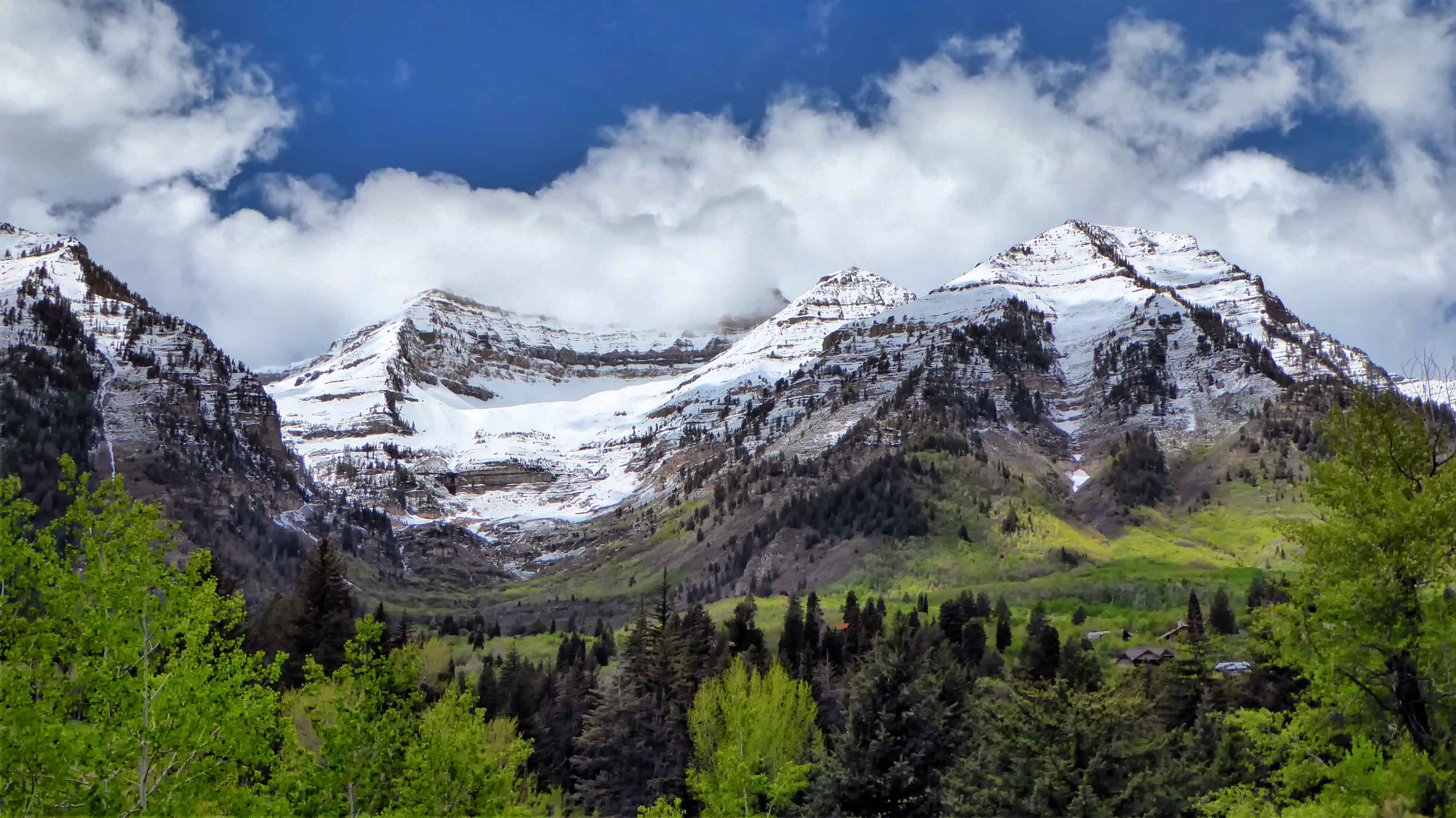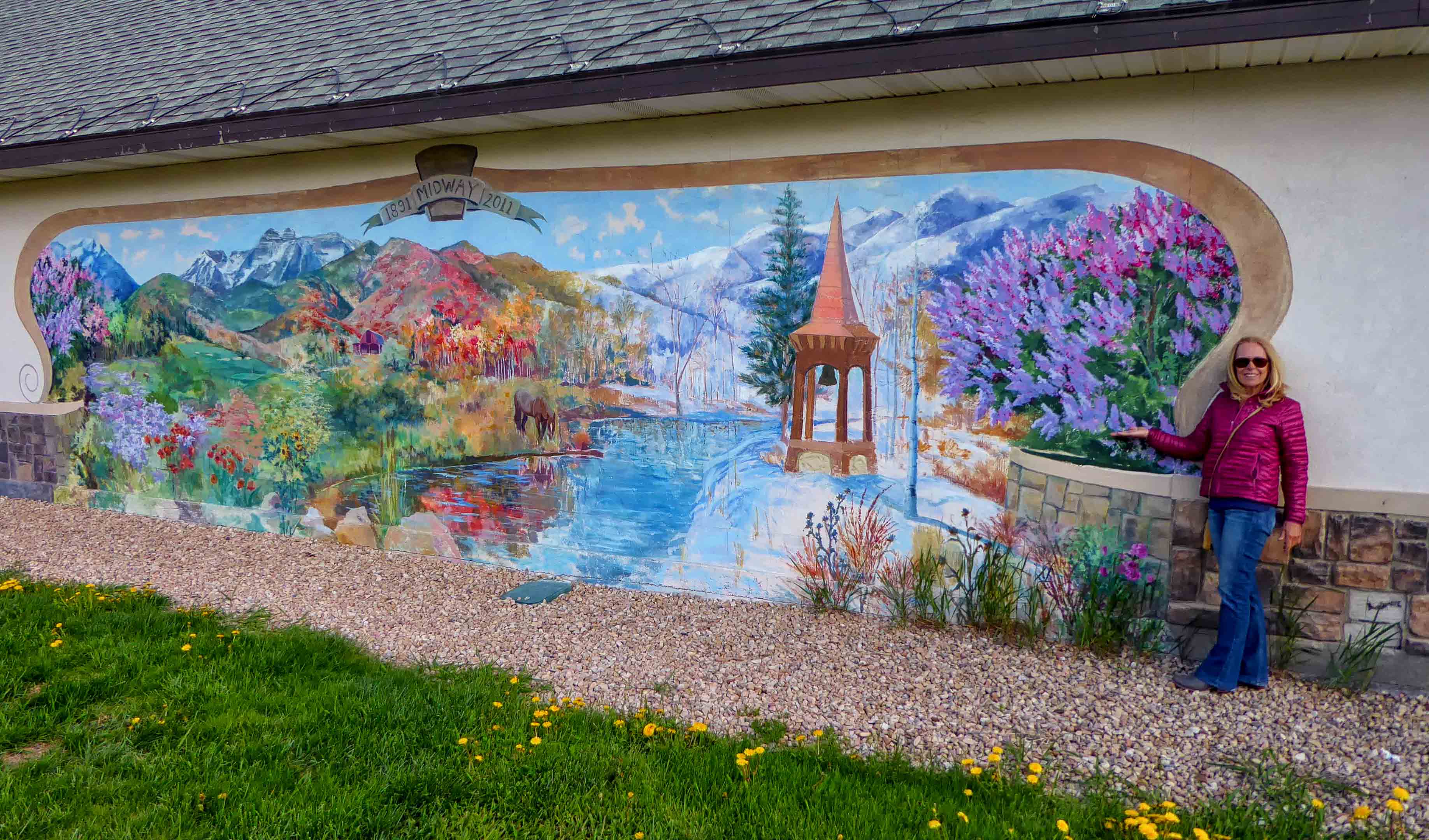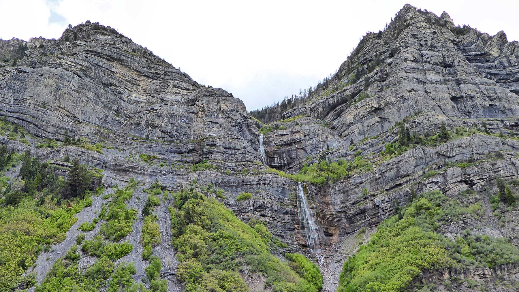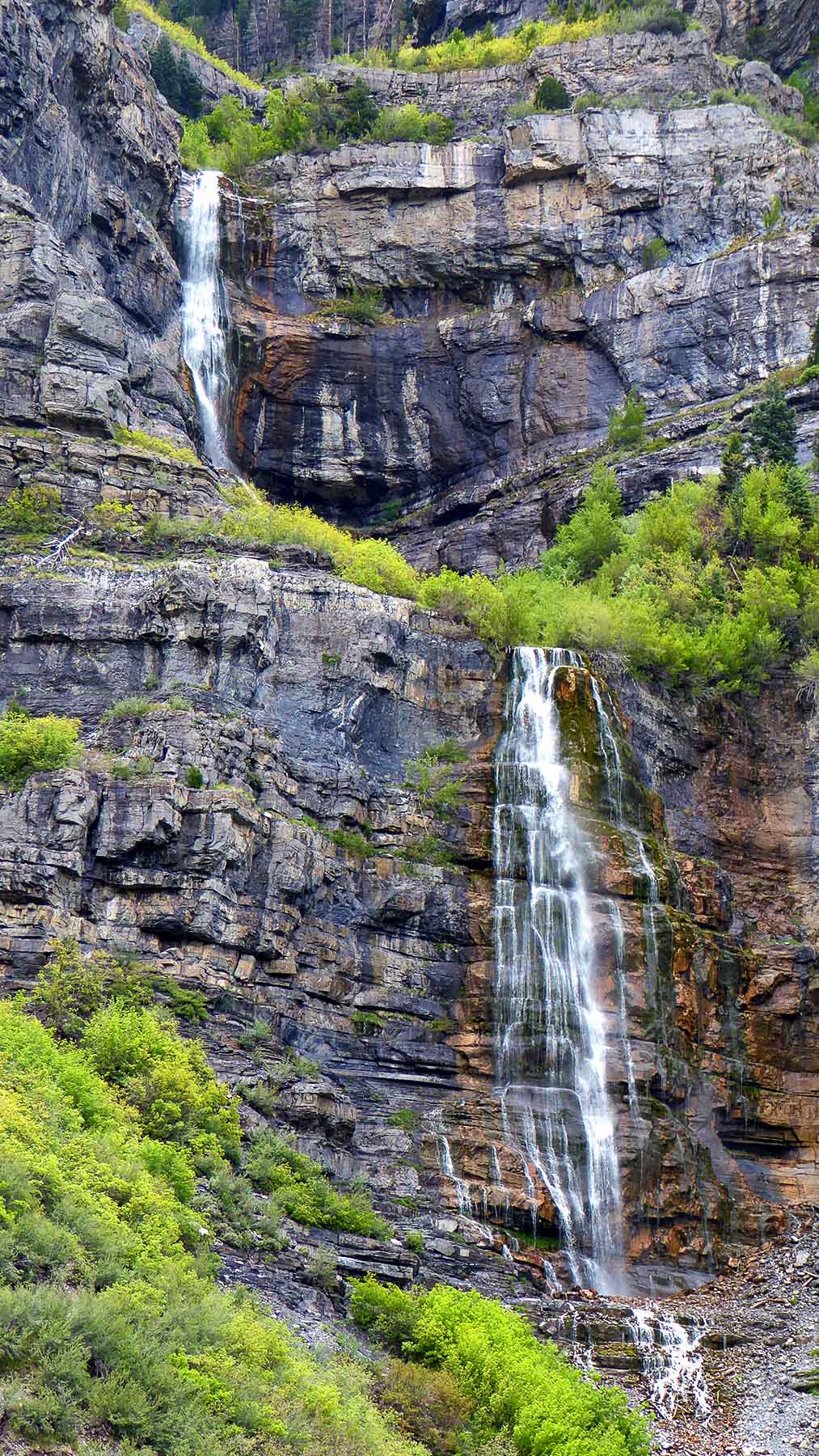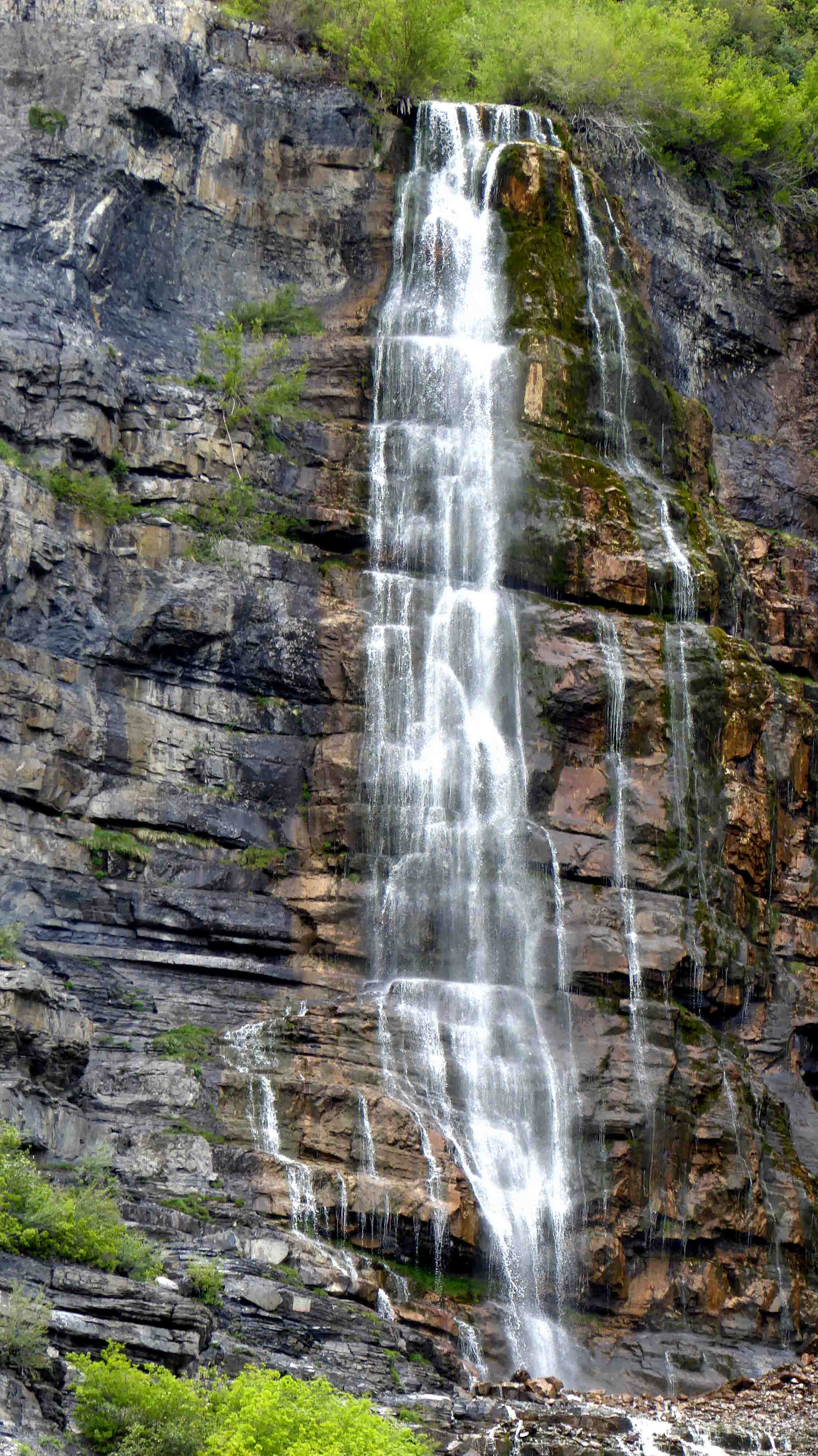 We left Moab to head north to Heber City, Utah, about a 4 hour drive arriving in plenty of time to enjoy the afternoon sunshine in this beautiful park, Mountain Valley RV Resort, looking across to the Wasatch Mountain Range. Heber City is a bedroom community for Orem, Provo, Park City and Salt Lake City, first settled in 1859 at an elevation of 5,595 feet. The weather was cooler and wetter than normal, however, after all the hiking and sightseeing we had been doing it was nice to get a well deserved rest in this beautiful Park. We did venture into Salt Lake City for shopping and on the way we stopped at Bridal Veil Falls in the Provo Canyon. It is a beautiful double cataract waterfall dropping 607′ into the Provo River.