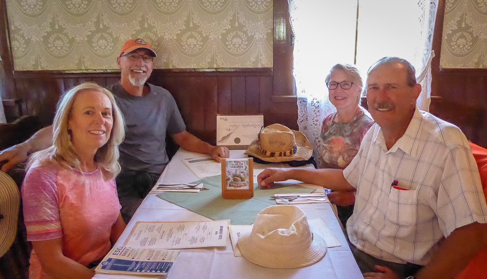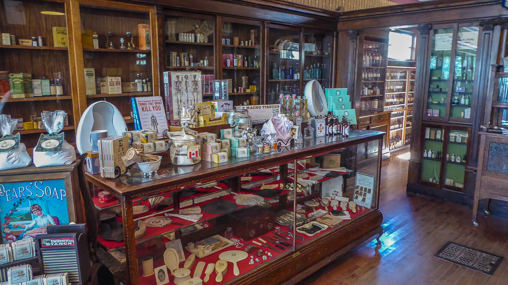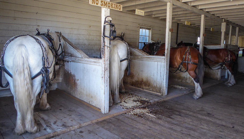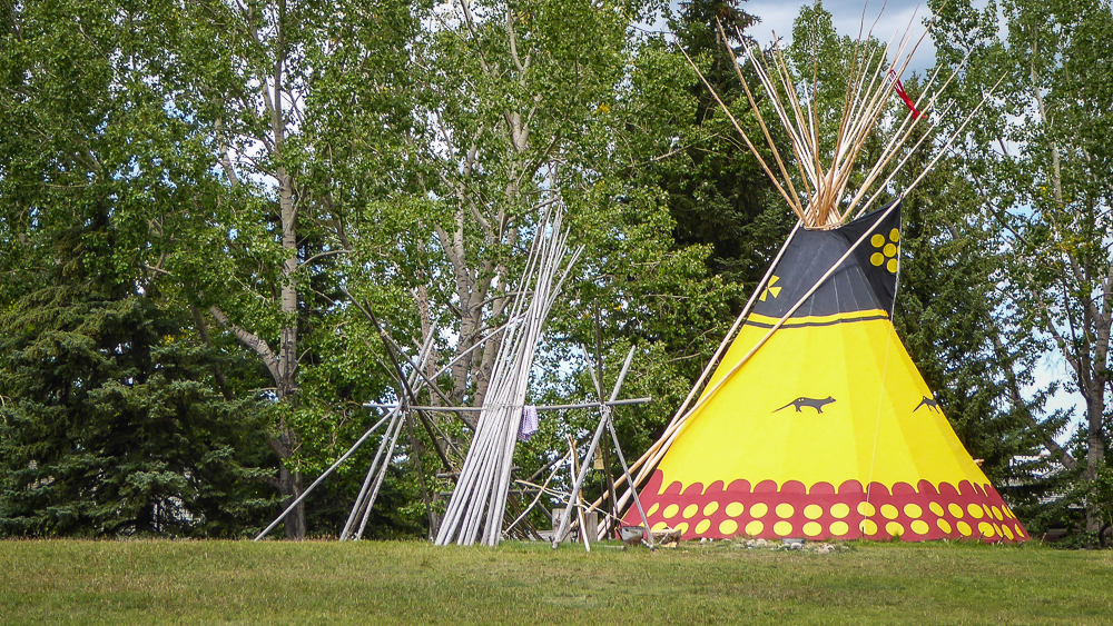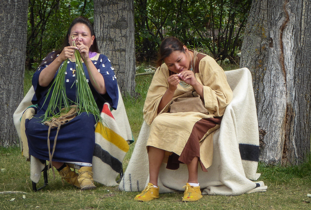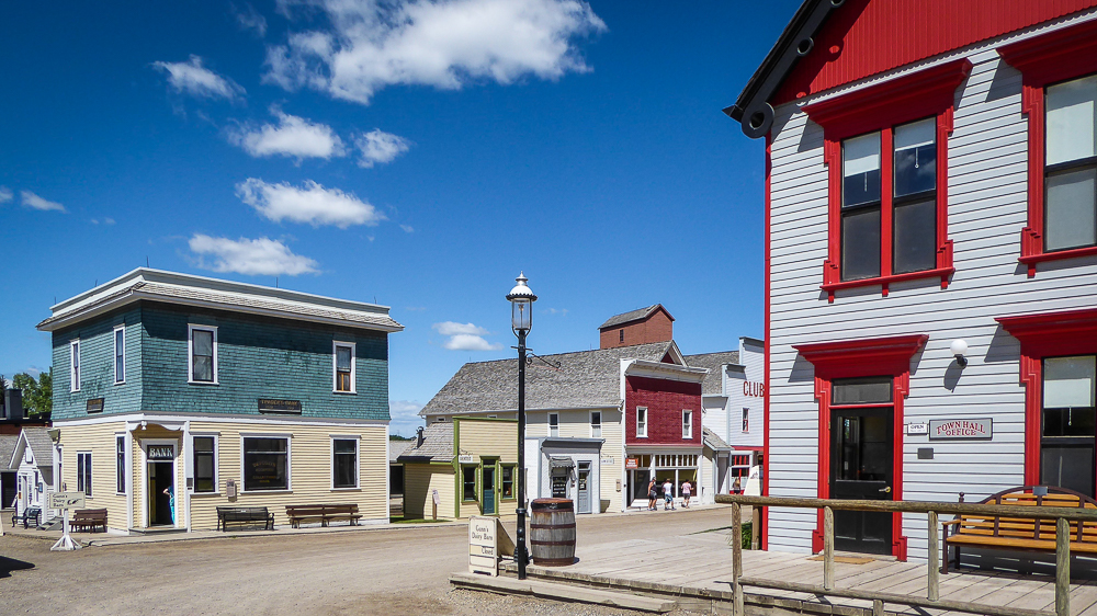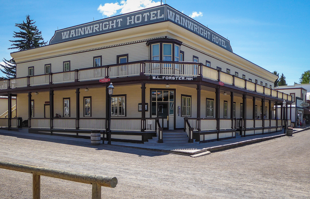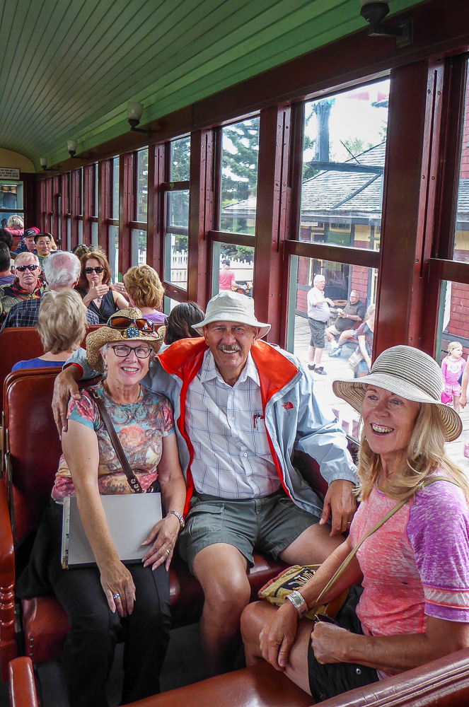 Today our tour guides Harry & Pat took us to the Heritage Park Historical Village in Calgary, that opened on July 1, 1964. The Park is located on 127 acres of parkland on the banks of the Glenmore Reservoir, and is Canada’s largest living history museum. Exhibits span Western Canadian history from the 1860s to the 1950s, and many of the buildings are historical and were transported to the park for display. The people dress in historic costumes, and antique and horse-drawn vehicles service the site. We rode the steam locomotive train on a small railway that goes around the circumference of the park which has original 1900s stations. We also visited the roundhouse that houses various railway equipment, an operational turntable, and a car shop with very rare and unique passenger cars. We saw the working smithy and an aboriginal encampment the representing the Blackfeet where the women were braiding sweet grass. We ate lunch in the historical Wainwright Hotel where Pat used to visit when she was a child. As we walked around the Park we followed a moving play showing how the RCMP “always get their man”. It was such a great day enjoying the past and finished it off with a tasty beer at the Big Rock Brewery. This place is a must see when you are in Calgary. Click on thumbnail to view images
