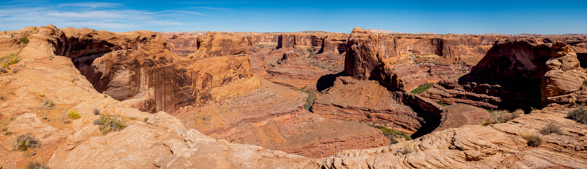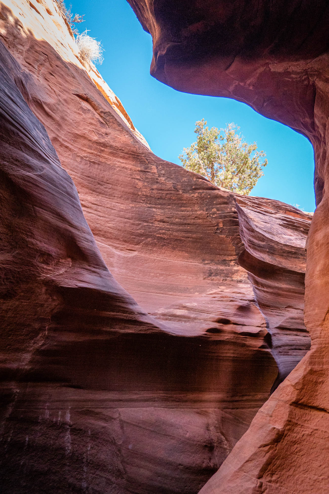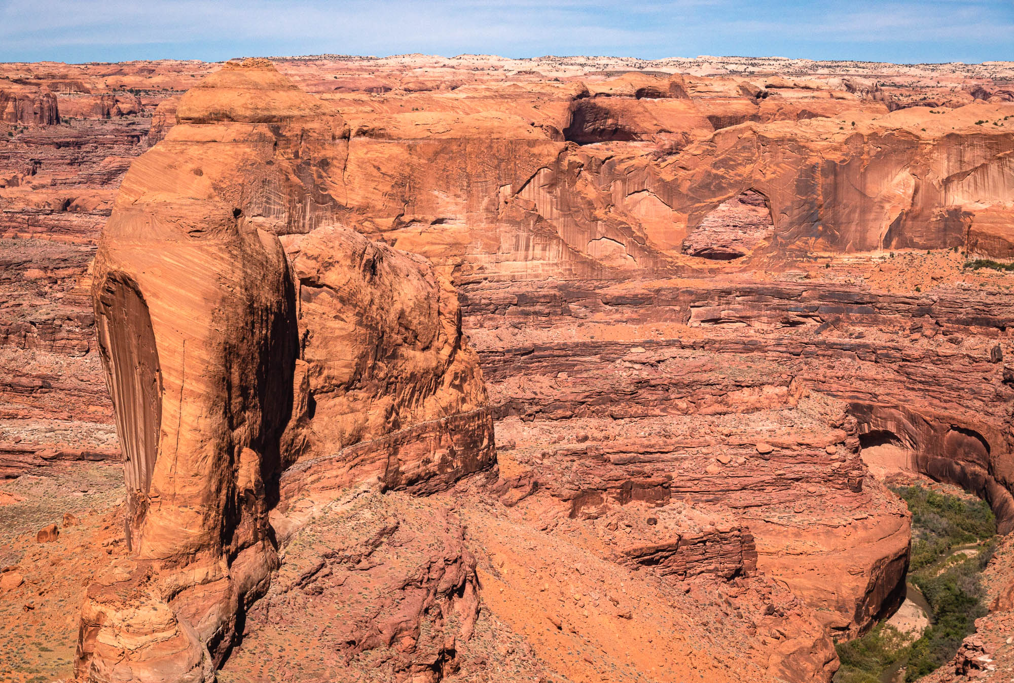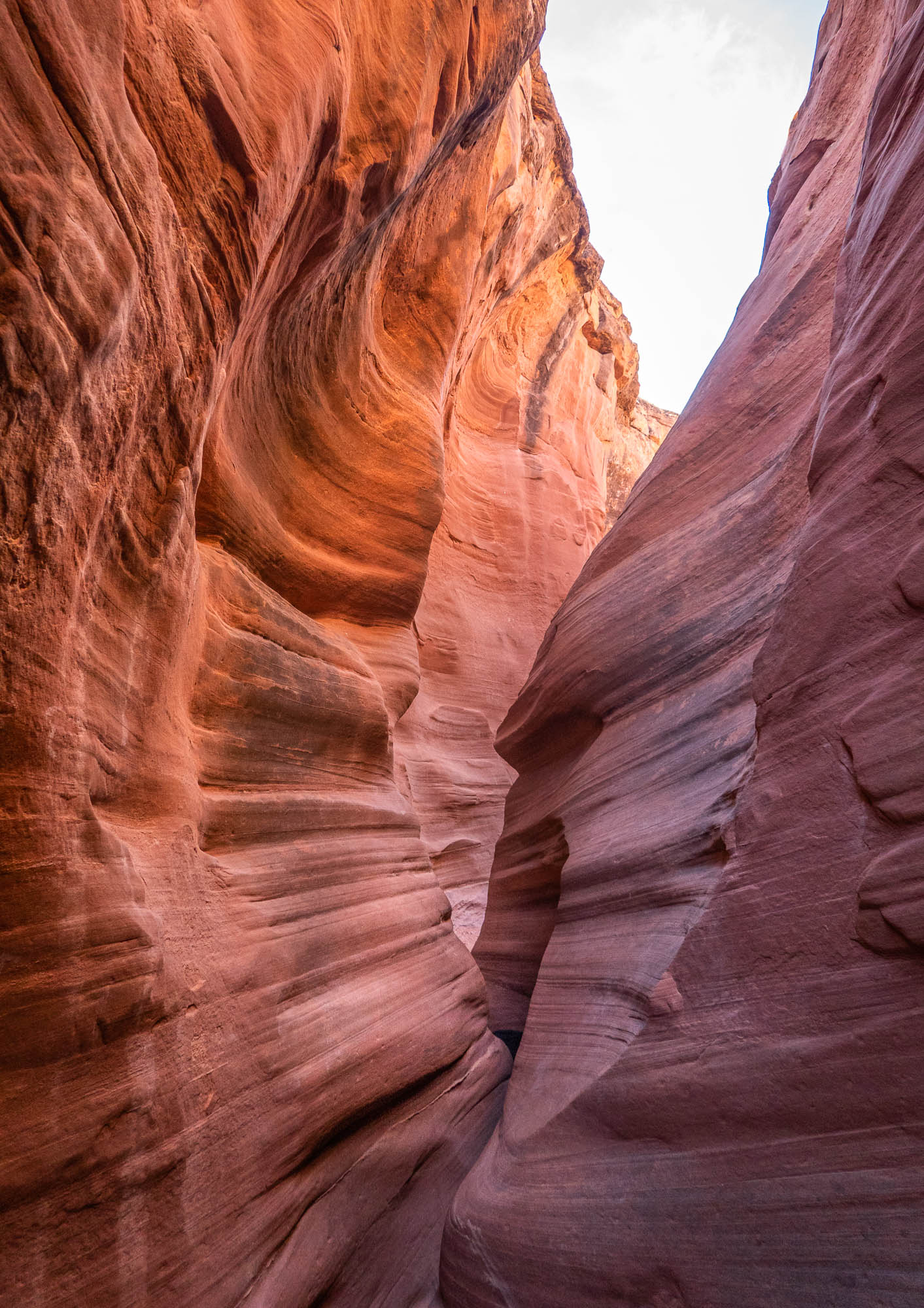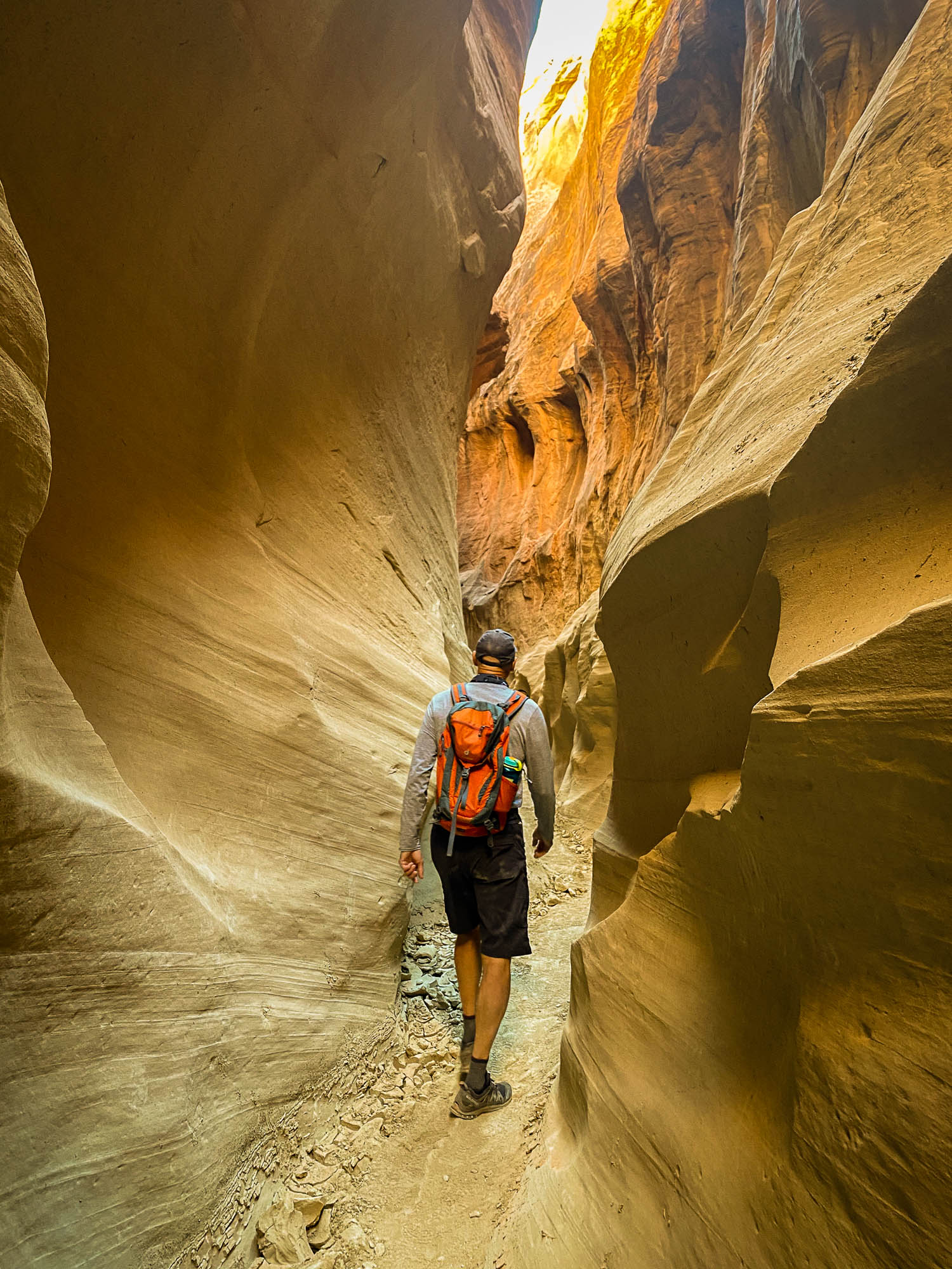 The Hole-in-the-Rock Trail is a historic 180-mile trail starting near the town of Escalante and ending in Bluff, Utah, located within the Grand Staircase-Escalante National Monument and the adjacent Glen Canyon National Recreation Area. It is named for the place where the San Juan Mission of Mormon Pioneers constructed a descent to the Colorado River in 1879-80, a geological feature called the Hole in the Rock. A modern unpaved road closely follows this historic trail to the point where it enters the Glen Canyon National Recreation Area. We drove the entire length of the Hole in the Rock Road, 60 miles, stopping at Peek-a-boo and Spooky slot canyons, and Dance Hall Rock before reaching the Hole in the Rock where we descended down the natural crevice on the 1,000 foot cliff to Lake Powell. Dance Hall Rock was an important staging area for the Mormon pioneers, while scouts looked for a viable route to their destination. They stayed here for months while the scouts drilled and blasted their way down the Hole in the Rock. They held square dances in the large sandstone formation shaped like an amphitheater, to keep their spirits high as they waited.