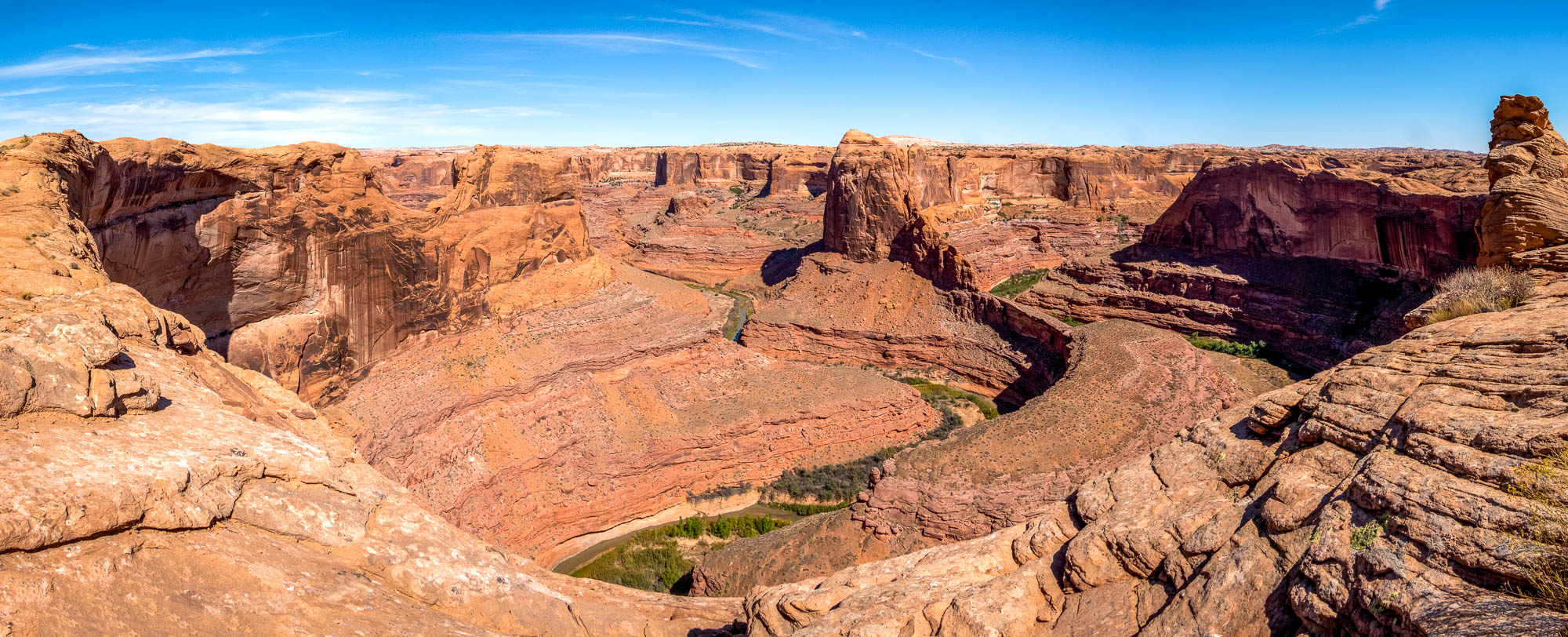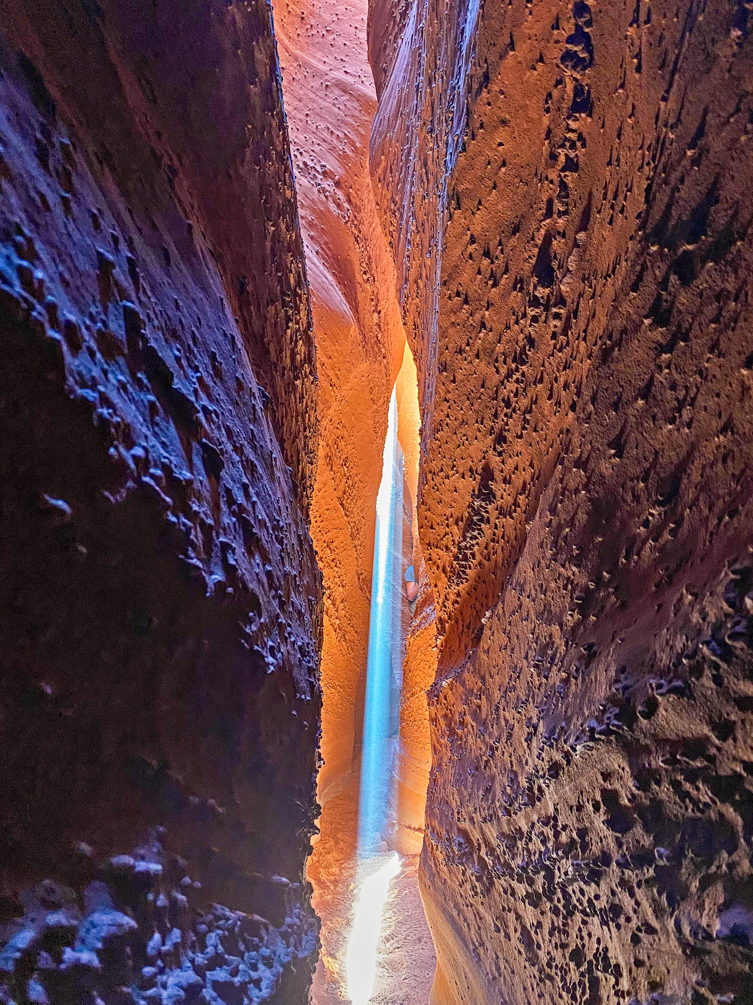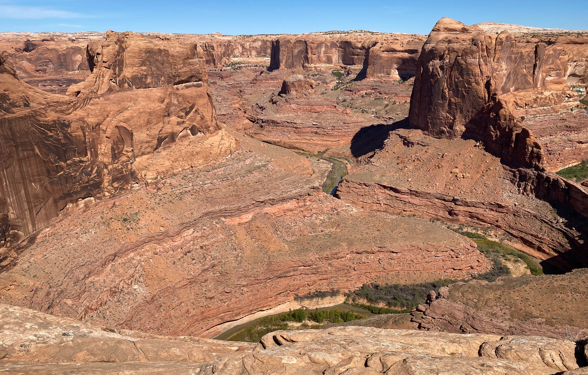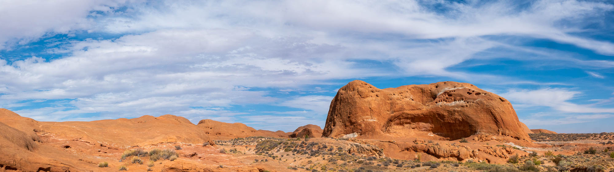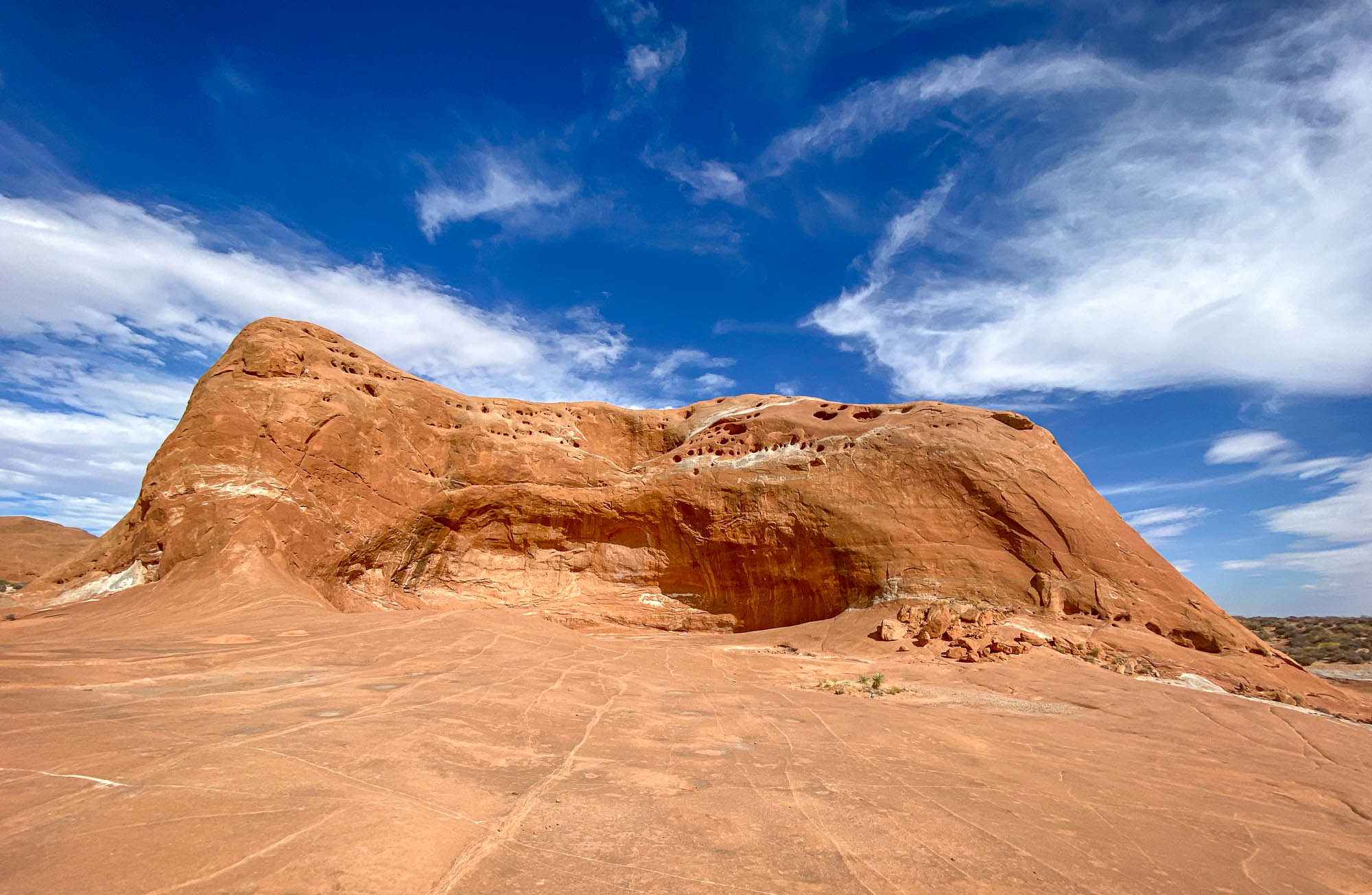 The Hole-in-the-Rock Trail is a historic 180-mile trail starting near the town of Escalante and ending in Bluff, Utah, located within the Grand Staircase-Escalante National Monument and the adjacent Glen Canyon National Recreation Area. It is named for the place where the San Juan Mission of Mormon Pioneers constructed a descent to the Colorado River in 1879-80, a geological feature called the Hole in the Rock. A modern unpaved road closely follows this historic trail to the point where it enters the Glen Canyon National Recreation Area. We drove the entire length of the Hole in the Rock Road, 60 miles, stopping at Peek-a-boo and Spooky slot canyons, and Dance Hall Rock before reaching the Hole in the Rock where we descended down the natural crevice on the 1,000 foot cliff to Lake Powell. Dance Hall Rock was an important staging area for the Mormon pioneers, while scouts looked for a viable route to their destination. They stayed here for months while the scouts drilled and blasted their way down the Hole in the Rock. They held square dances in the large sandstone formation shaped like an amphitheater, to keep their spirits high as they waited.
