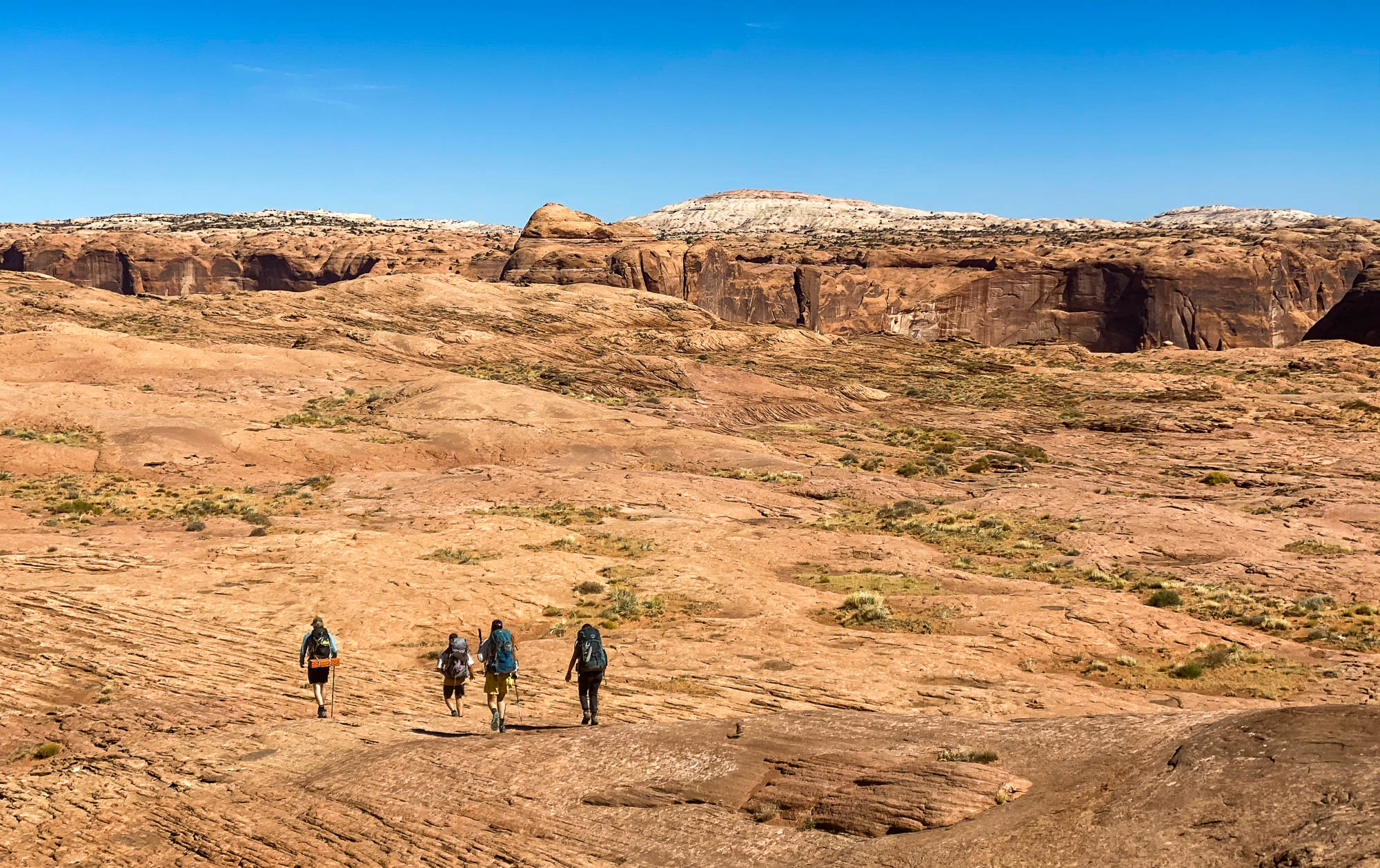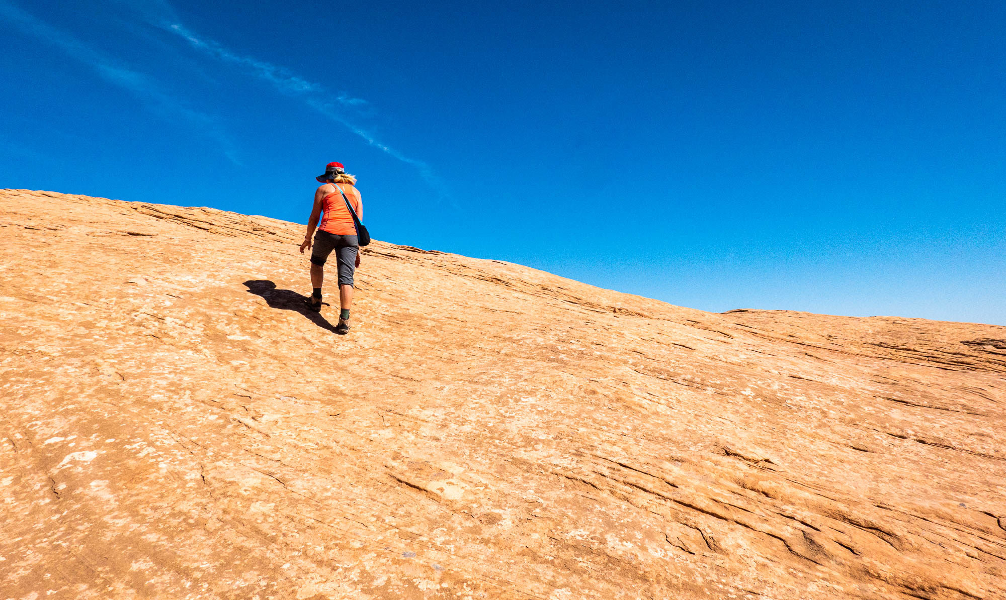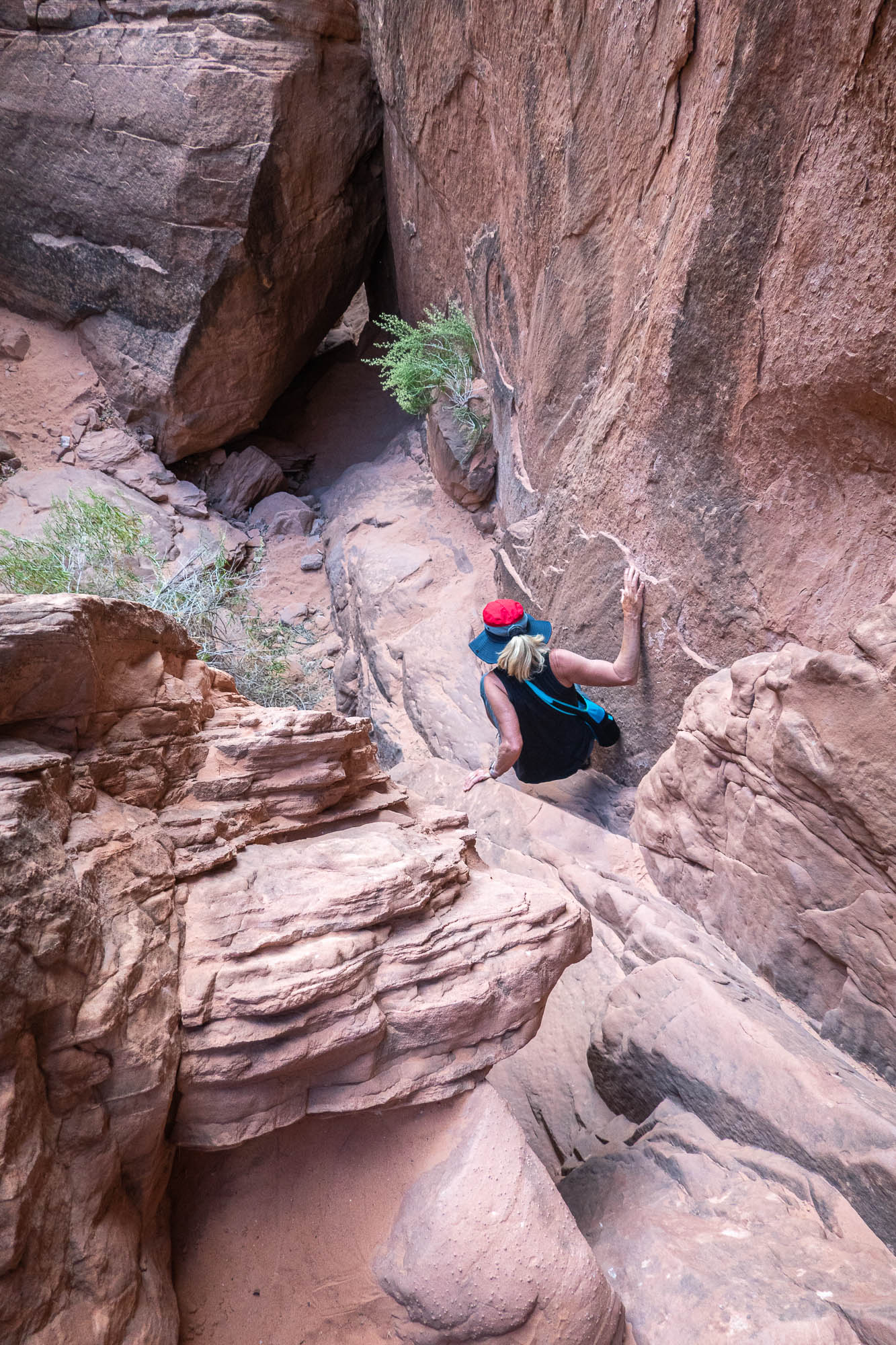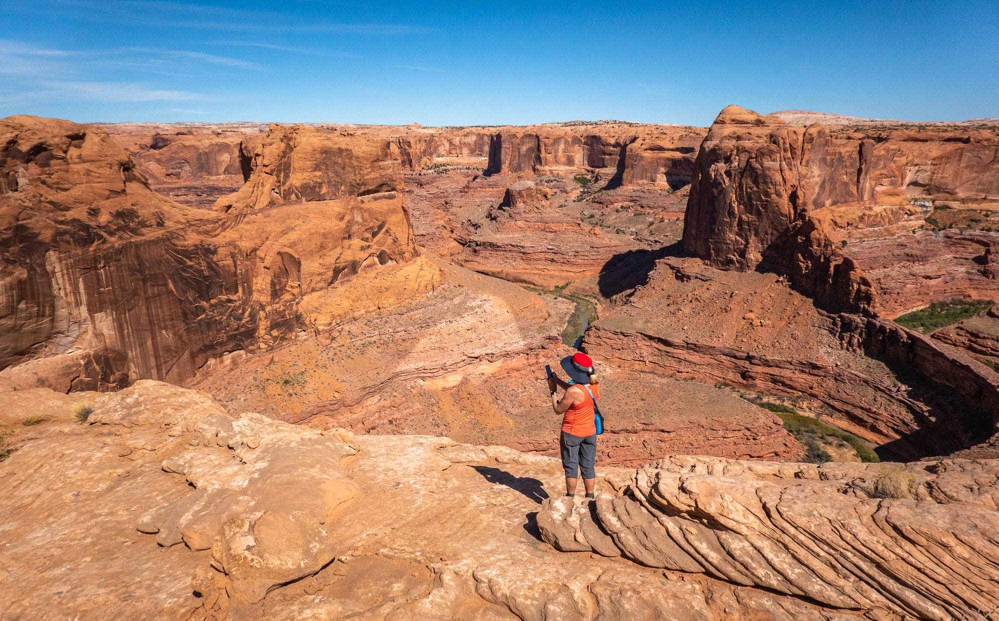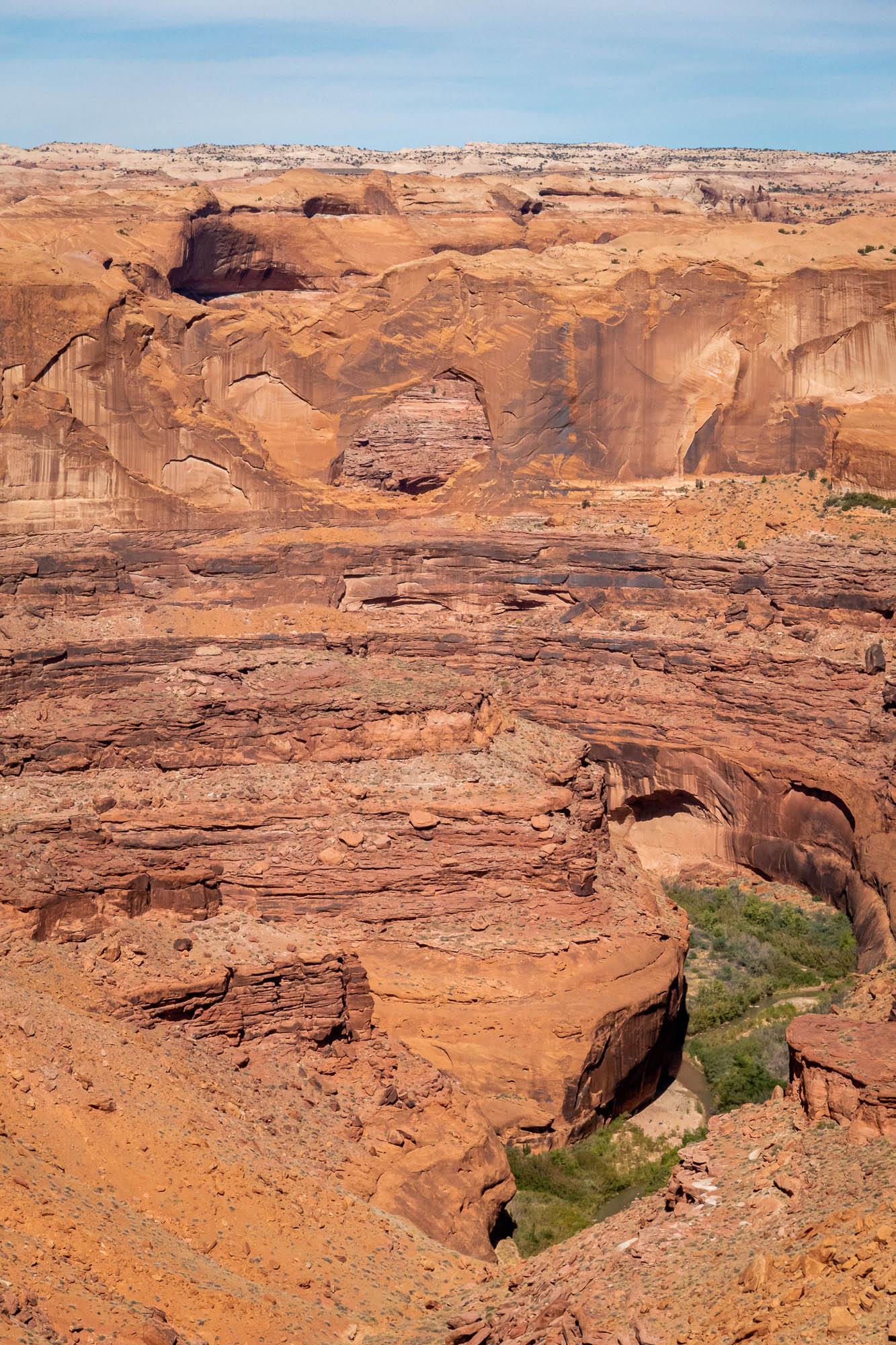 We finally reached the Hole in the Rock and began the 1,000 foot descent to Lake Powell, not for the feint-of-heart. Climbing down was not easy but we did make it all the way to Lake Powell Lake and went skinny-dipping in the warm water, so refreshing after a very long day. We set up camp at the top of Hole in the Rock and there was not another soul around. The sunrise was amazing at the top of Hole in the Rock, and still we were all alone in this most spectacular scenery. Click on thumbnail to view images