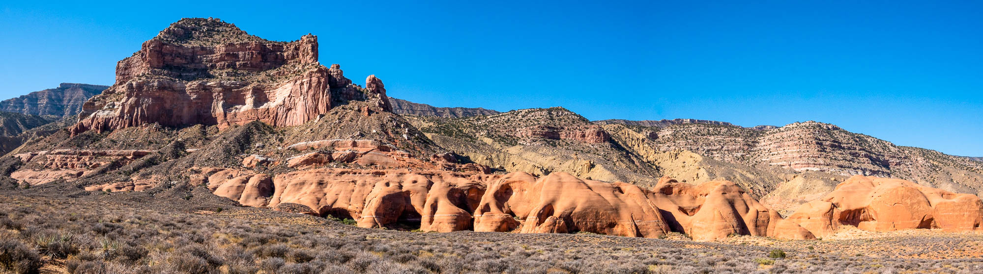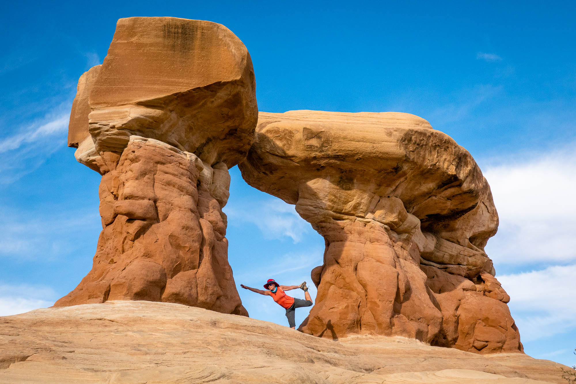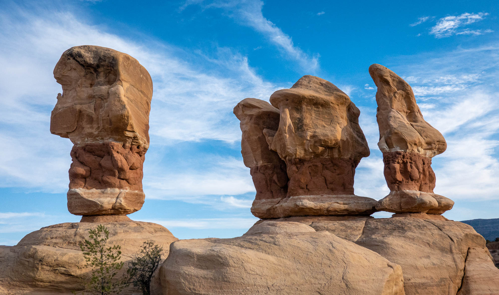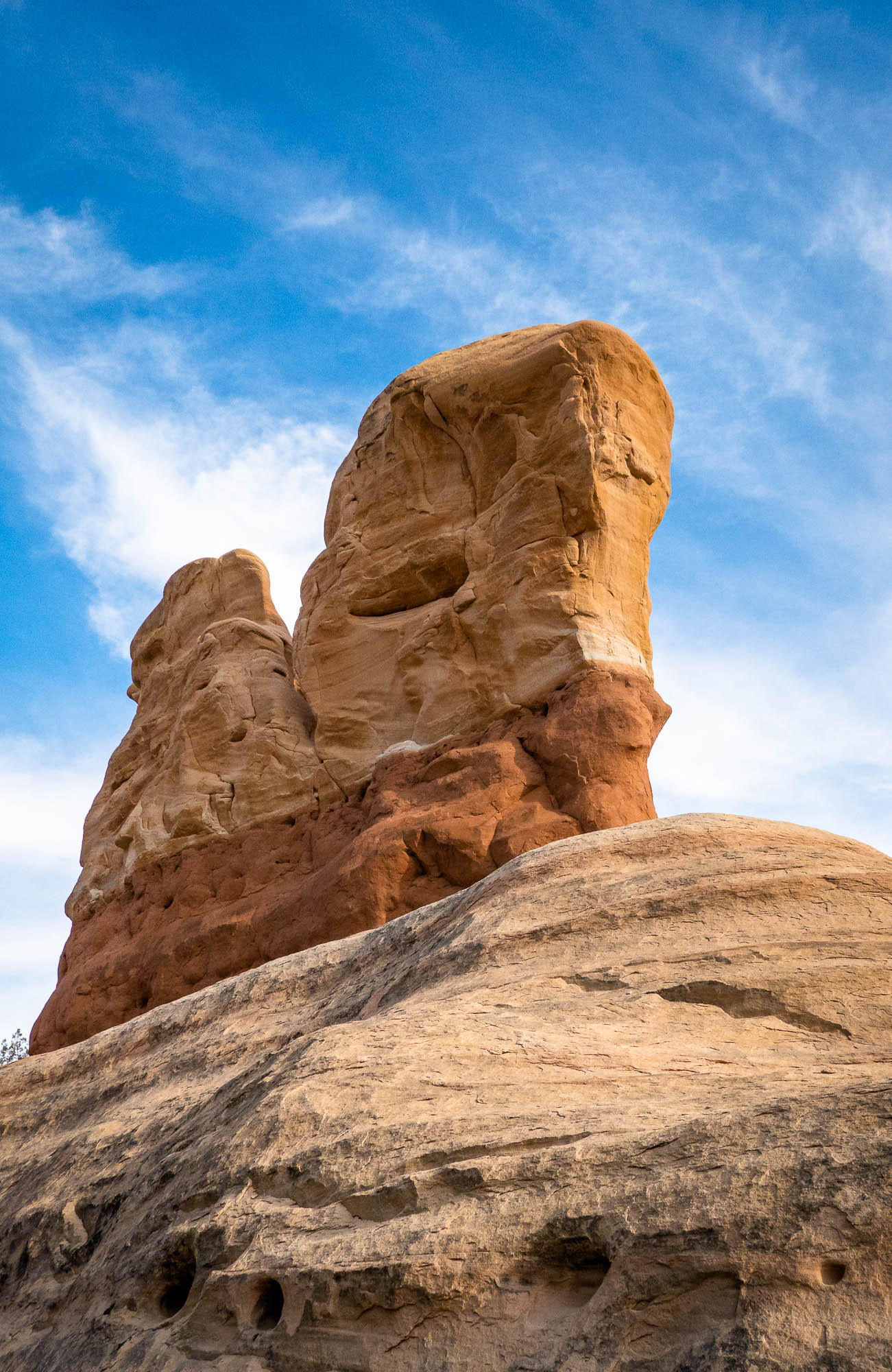 Our final stop off of Hole in the Rock Road was to view the Devils Garden featuring hoodoos, natural arches and other sandstone formations. Metate Arch is a slender caprock natural arch found in the center of the Devils Garden, and there are many hoodoos of varying sizes and shapes scattered throughout. We spent some time walking through the various formations of the hoodoos and Metate Arch enjoying the beautiful color of the sandstone formations. Click on thumbnail to view images