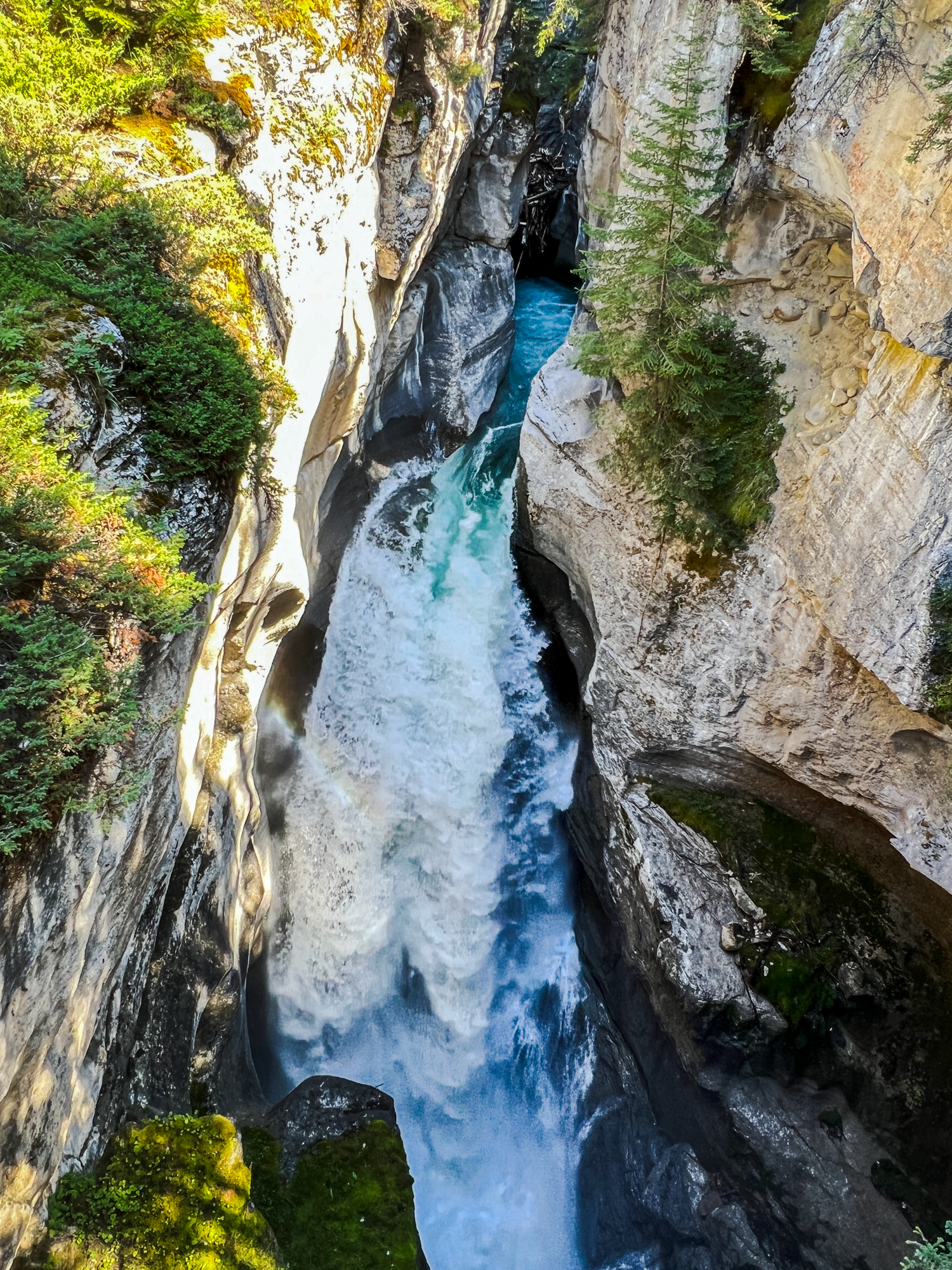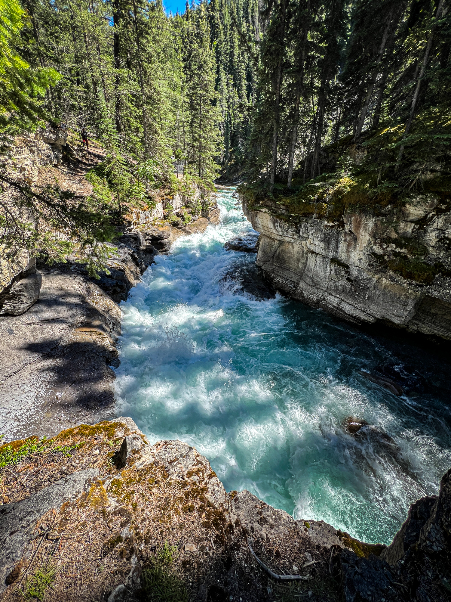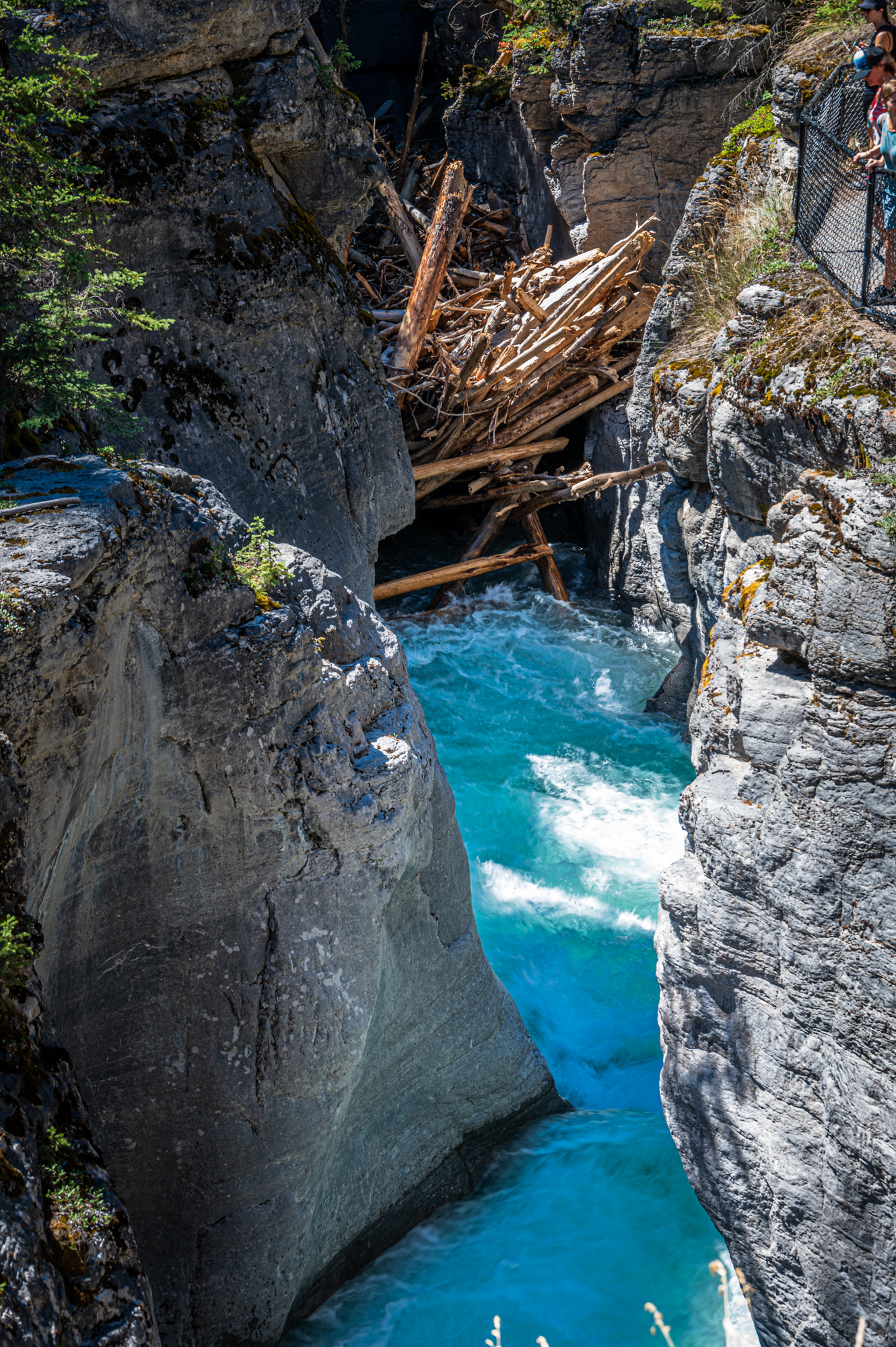 After leaving Maligne Lake, we decided to explore the spectacular Maligne Gorge. The gorge is a narrow and steep-sided canyon that was carved by the Maligne River over thousands of years. The walls of the gorge rise up to 60 meters high and are made of limestone, which has been weathered and eroded into a series of dramatic cliffs and pinnacles.