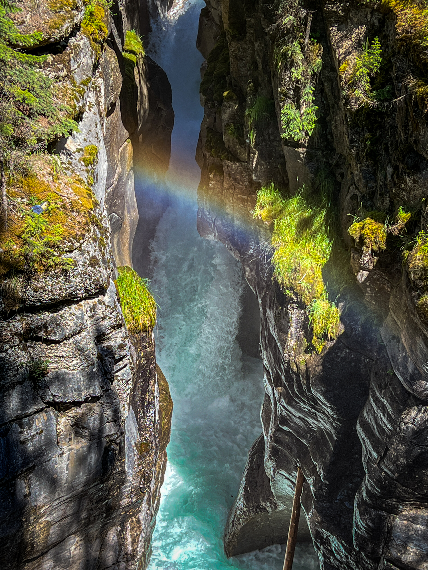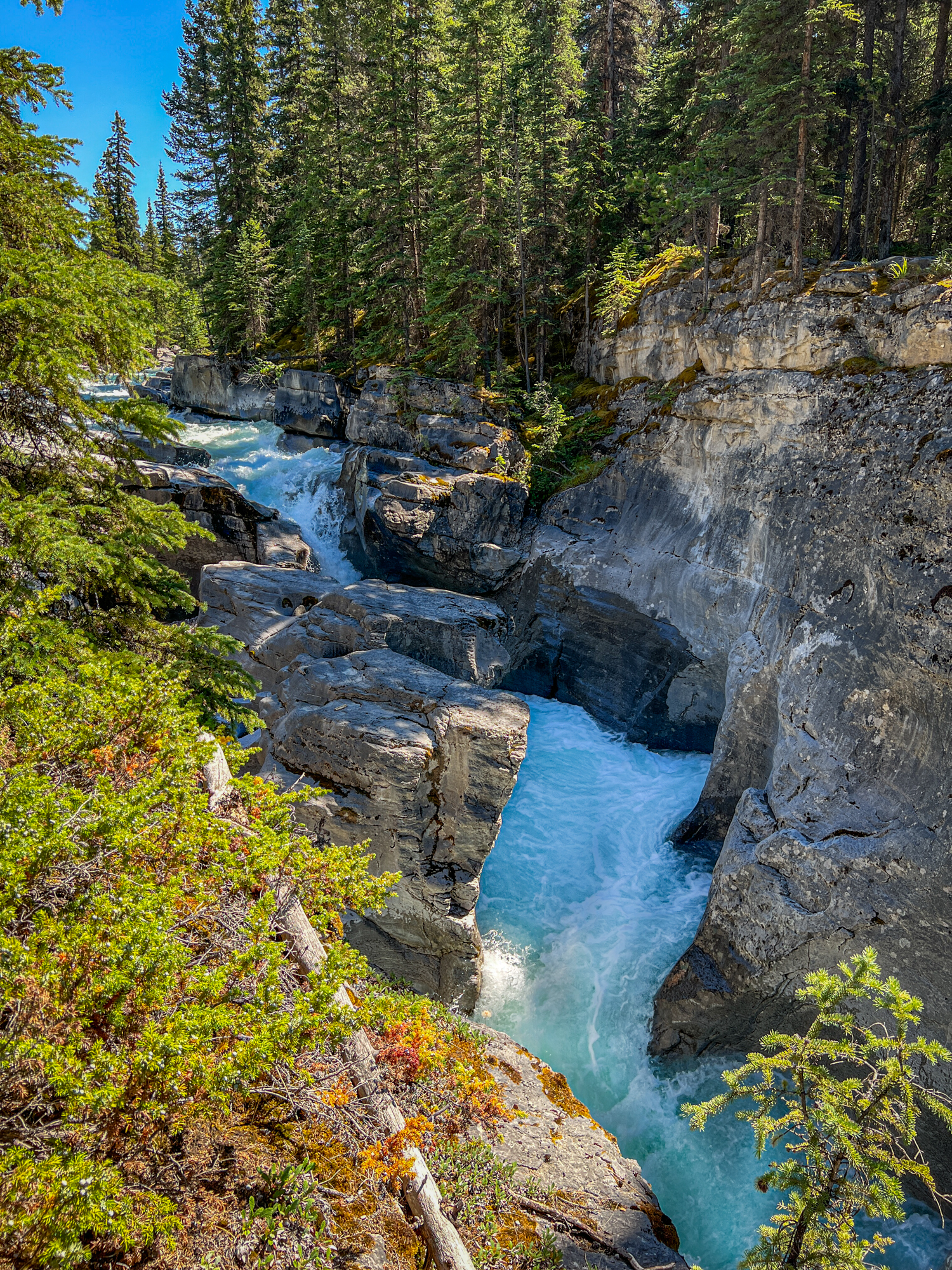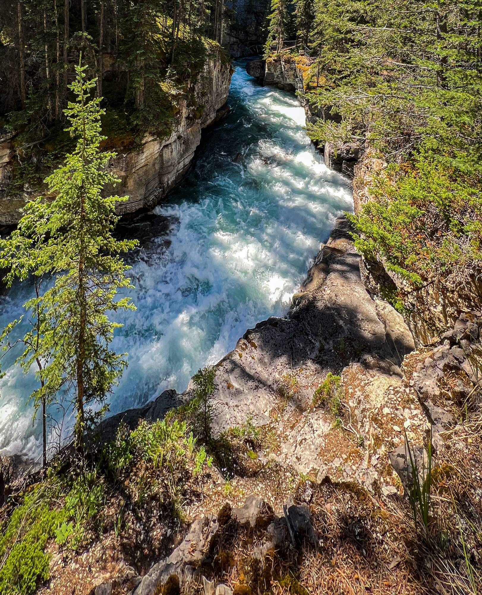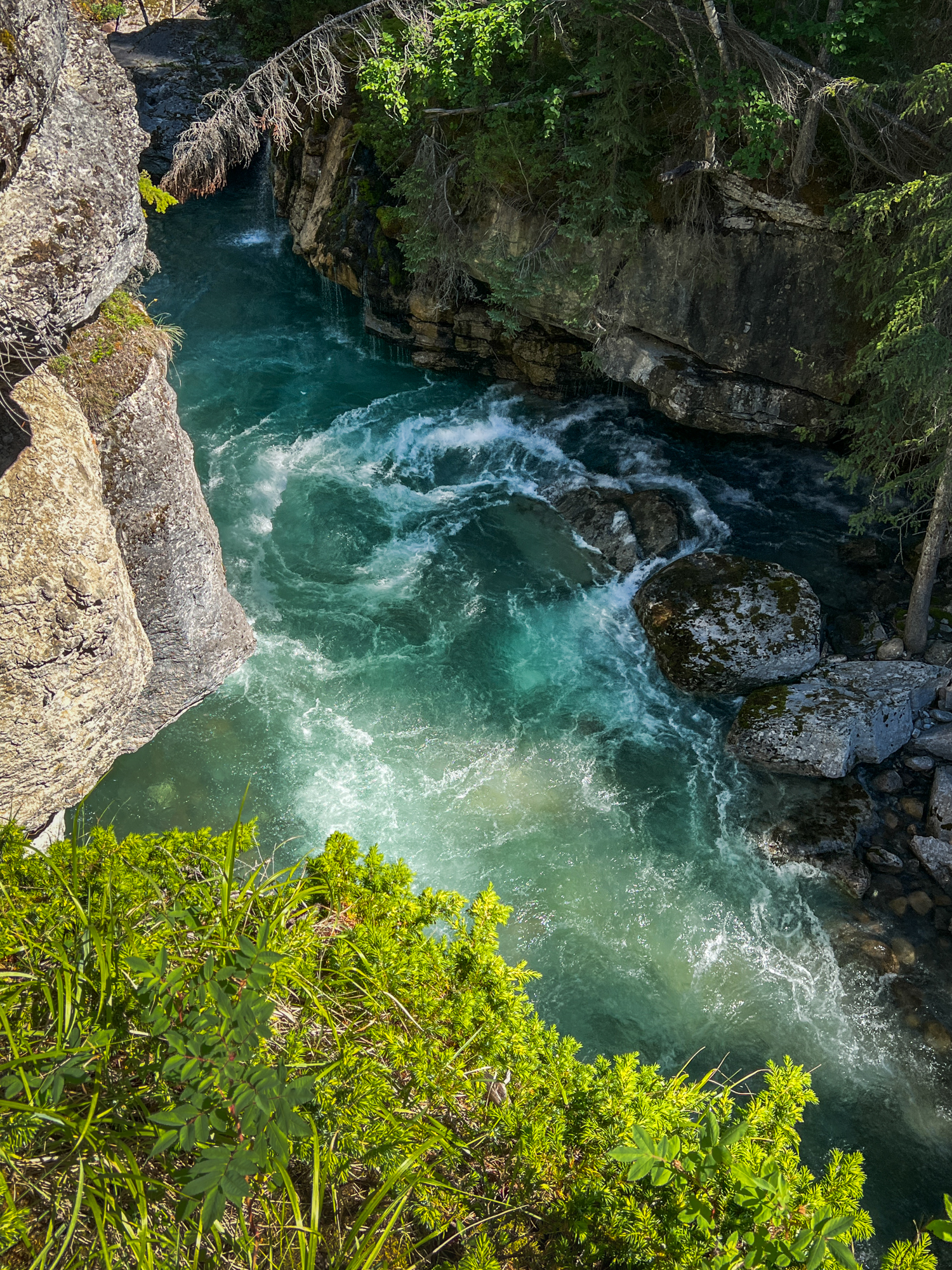After leaving Maligne Lake, we decided to explore the spectacular Maligne Gorge. The gorge is a narrow and steep-sided canyon that was carved by the Maligne River over thousands of years. The walls of the gorge rise up to 60 meters high and are made of limestone, which has been weathered and eroded into a series of dramatic cliffs and pinnacles.