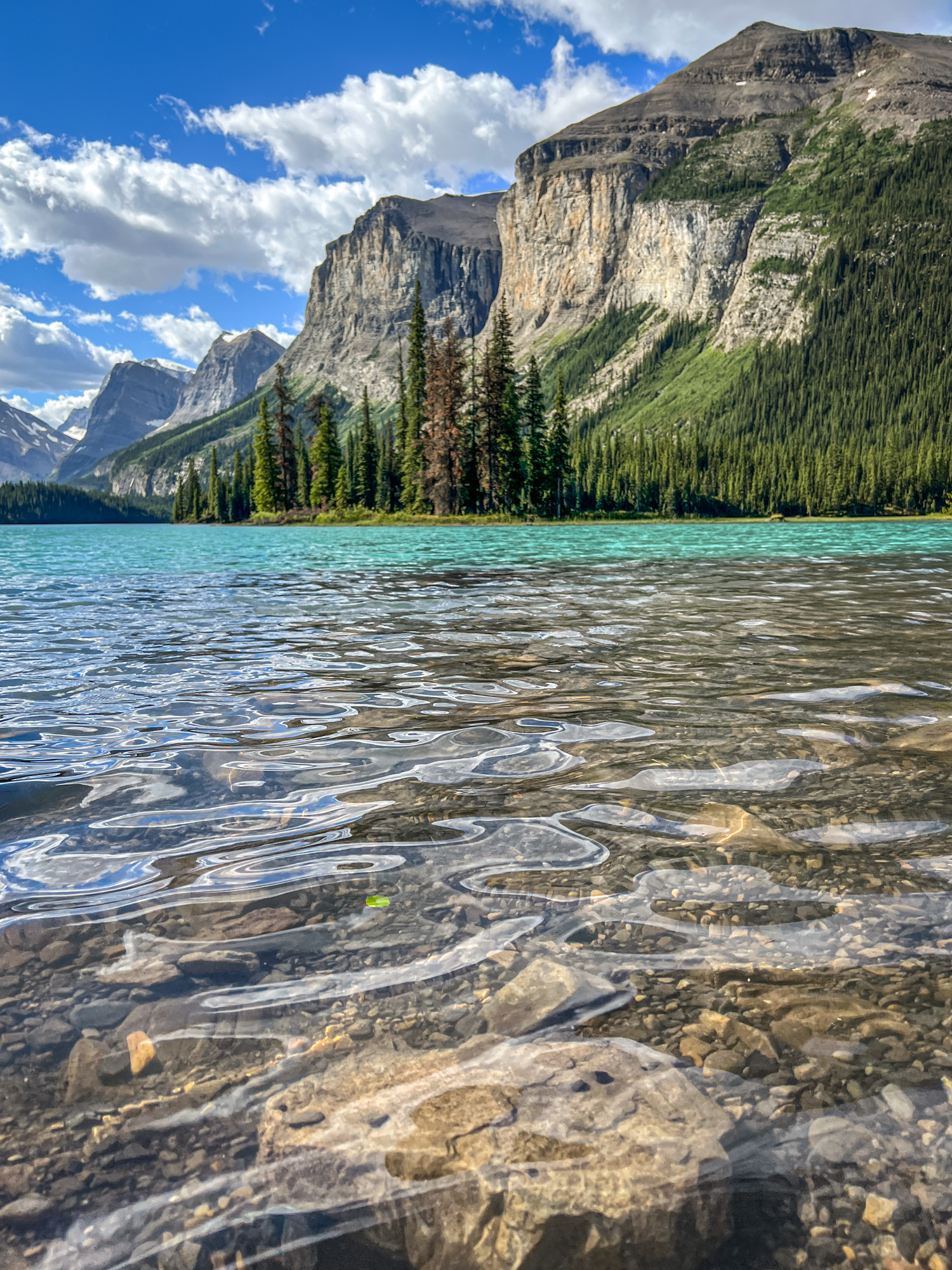 The next morning we woke up early and headed into Jasper National Park to explore Maligne Lake and the Maligne Gorge. The weather was perfect, with clear blue skies and a warm sun shining down on us. We decided to take the boat tour up to Spirit Island on Maligne Lake, and it was a spectacular ride.