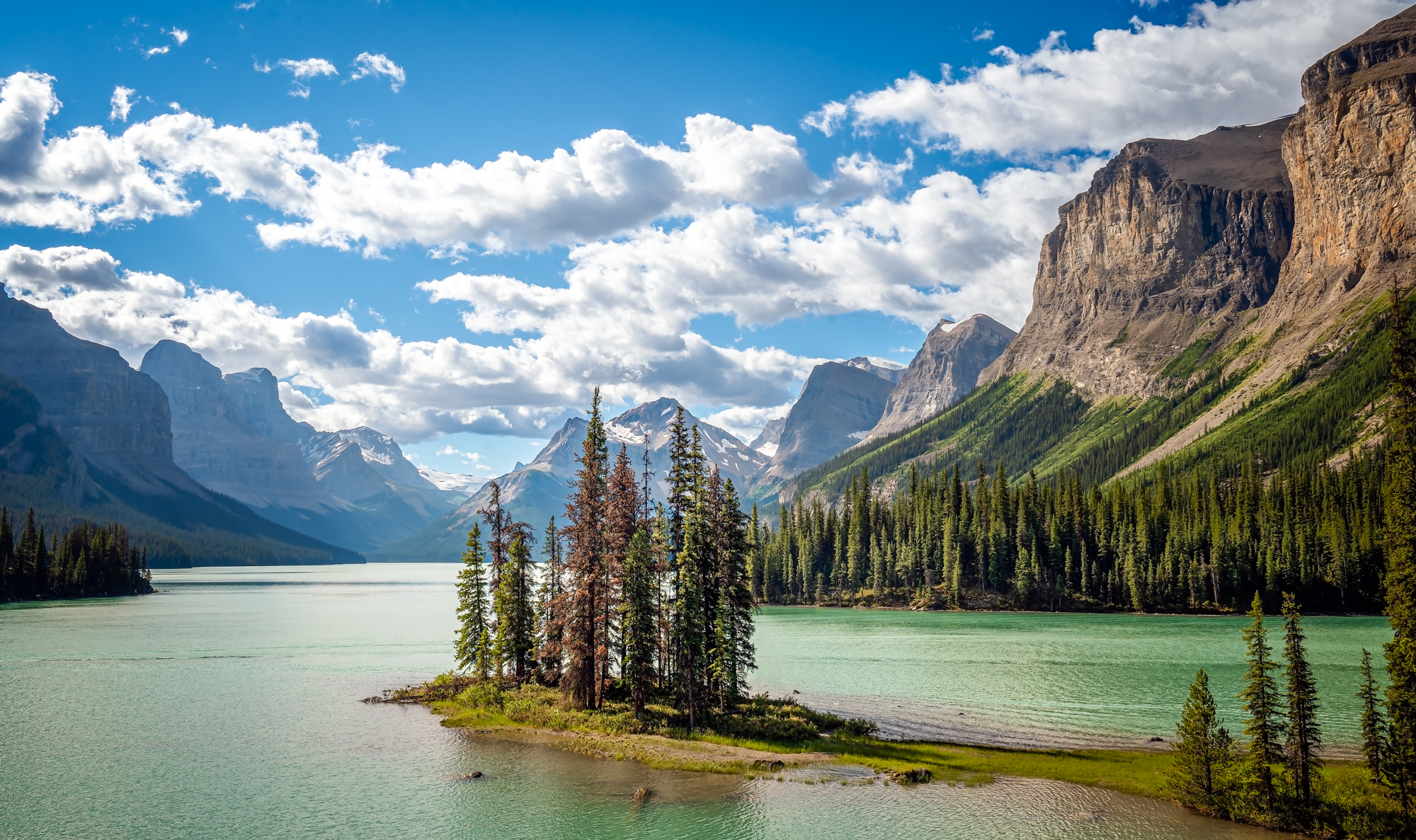 Maligne Lake is the largest natural lake in the Canadian Rockies and is known for its crystal-clear waters and stunning scenery. The lake is fed by the Maligne River and is a popular spot for boating, fishing, and swimming. The lake is also home to several hiking trails, including the one that takes you to Spirit Island, which is a small island located in the middle of the lake.