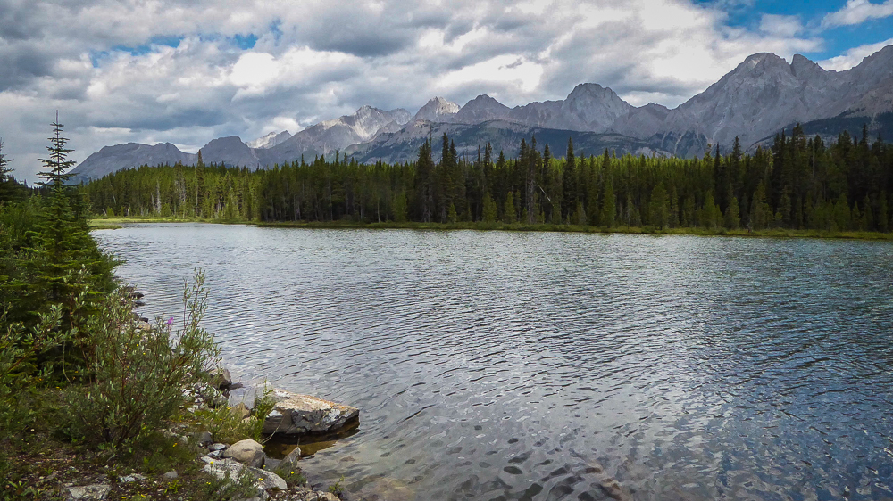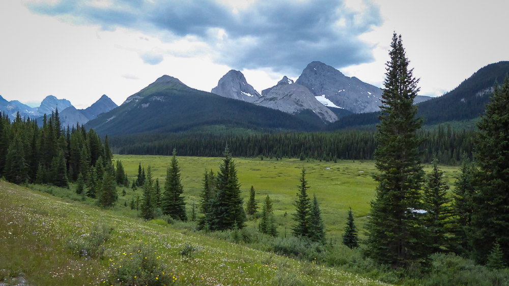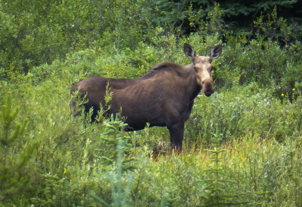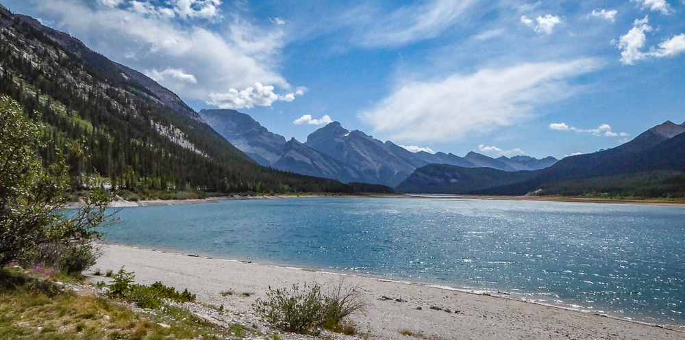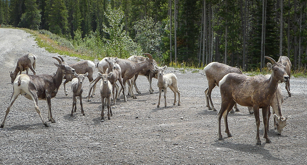 Today we did a driving tour on a gravel road from Canmore to the Kananaskis Country, we wanted to get away from the “maddening crowd” and figured there would not be too many tourists on a gravel road. The drive was very scenic following the Kananaskis River and at one point we had to stop to watch the mountain goats in the middle if the road. We passed through the Peter Lougheed Provincial Park and saw a magnificent moose from the road in the meadow. We ended at the Kananaskis Village where we did a little shopping. In 2002 the 28th G8 Summit was held in the Kananaskis Resort at the Delta Lodge, the only G8 Summit to be held in Western Canada. We got back to the RV Park in plenty of time to relax and get ready to leave tomorrow for Cochrane.
