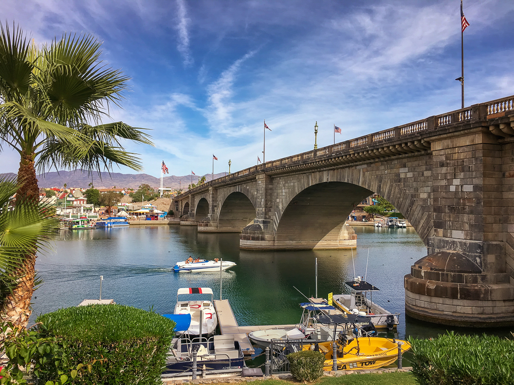 Lake Havasu City was our destination for two last weeks in October, well known because of the famous London Bridge linking an island in the Colorado River with the main part of Lake Havasu City. We stayed at the Islander RV Resort on the island. We had a beautiful site looking out onto Lake Havasu. London Bridge was built in the 1830s and formerly spanned the River Thames in London, England. It was dismantled in 1967 and relocated to Arizona. Robert McCulloch purchased the bridge and he had exterior granite blocks from the original bridge numbered and transported to America to construct the present bridge in Lake Havasu City, established in 1964. We played pickle ball every morning with a fun group of mostly Canadians. Went out on a boat for cocktail hour exploring Lake Havasu and walked the streets of Lake Havasu City.