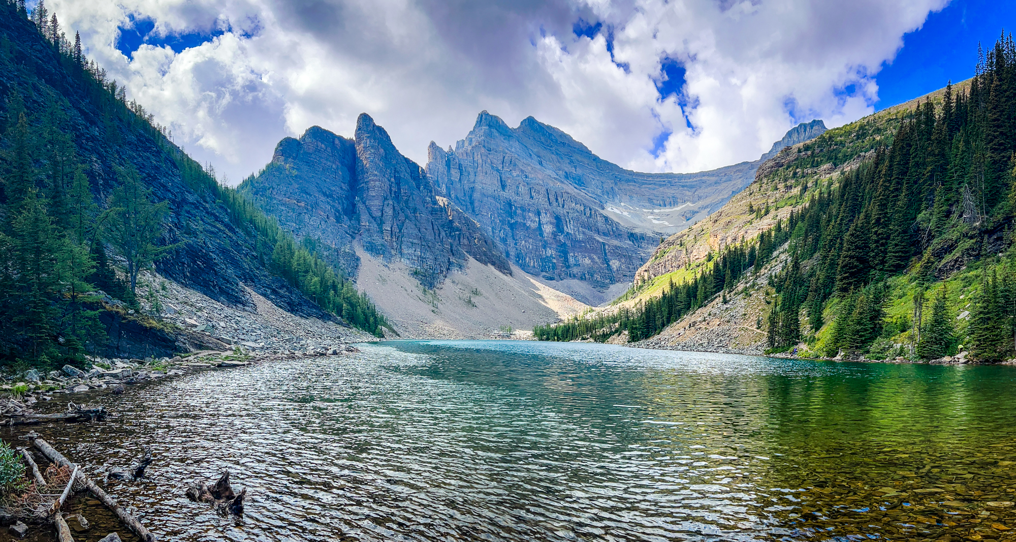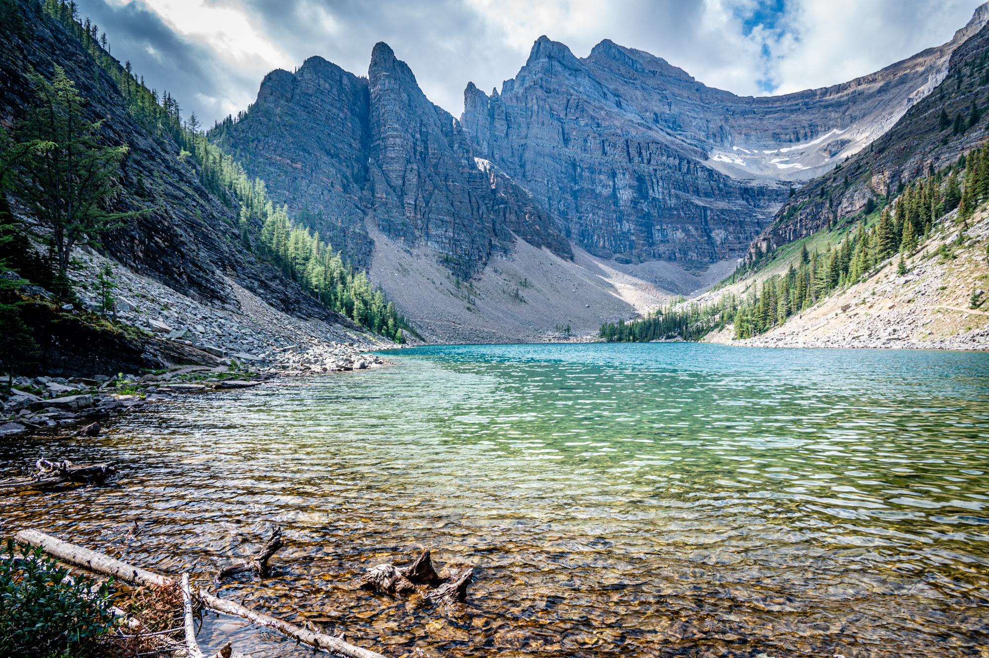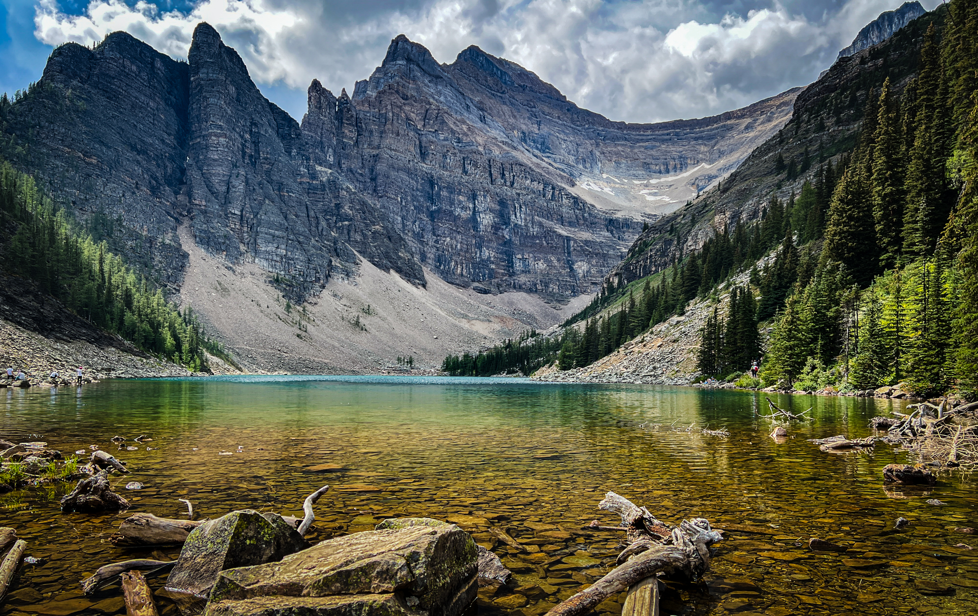 The Agnes Lake Tea House (7002 ft) is a historic cabin named after Lady Agnes MacDonald, the wife of Canada’s first Prime Minister, has been serving visitors to the area for over a century. Built in 1901, it is one of the oldest structures in Banff National Park and has been a staple of the Canadian Rockies for generations. After a long hike, we finally arrived at the Agnes Lake Tea House, where we stopped for lunch and took a break from the hike. The calm and serene surroundings of the lake, combined with the warm and cozy atmosphere of the Tea House, made for a perfect place to relax and recharge.
