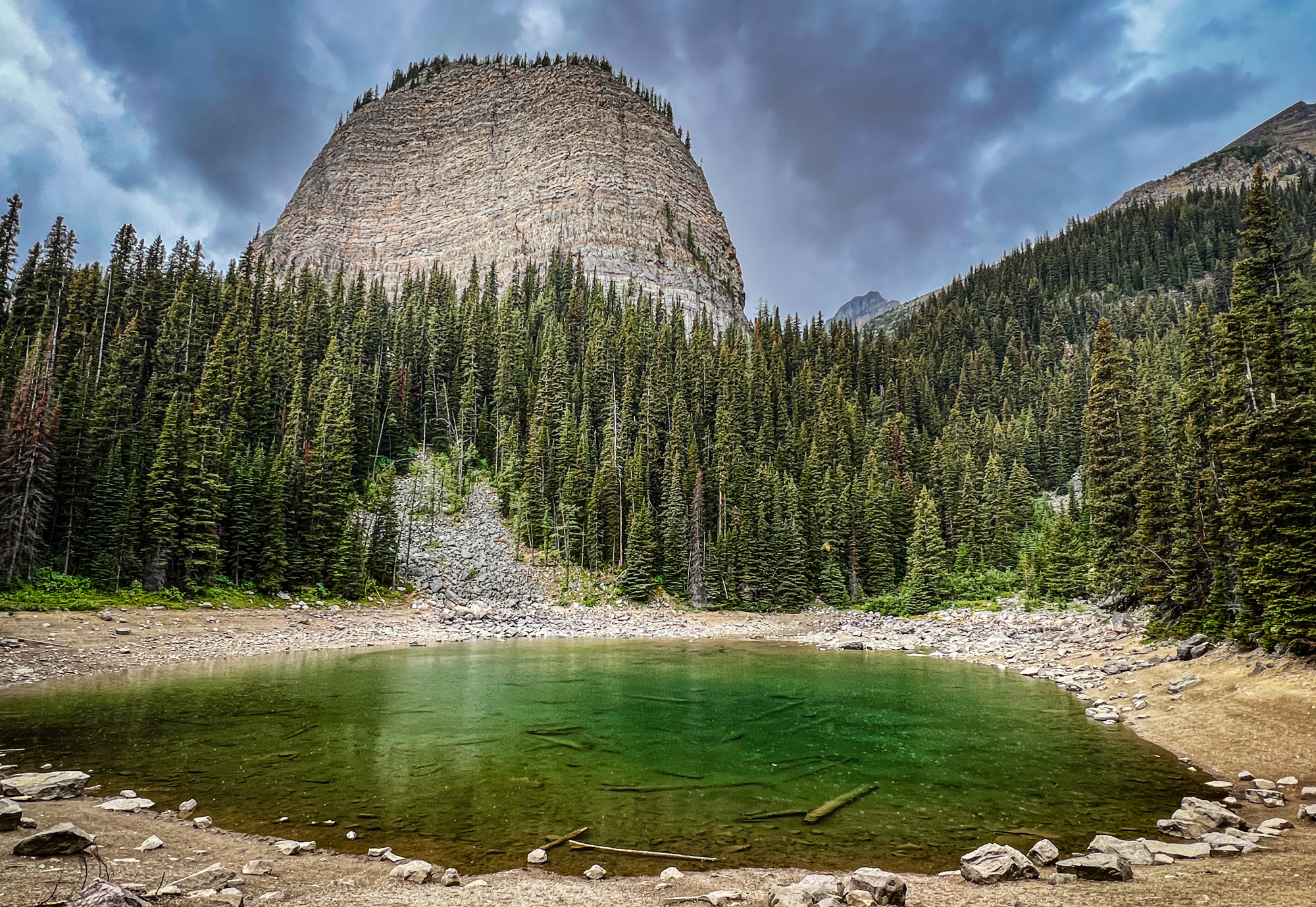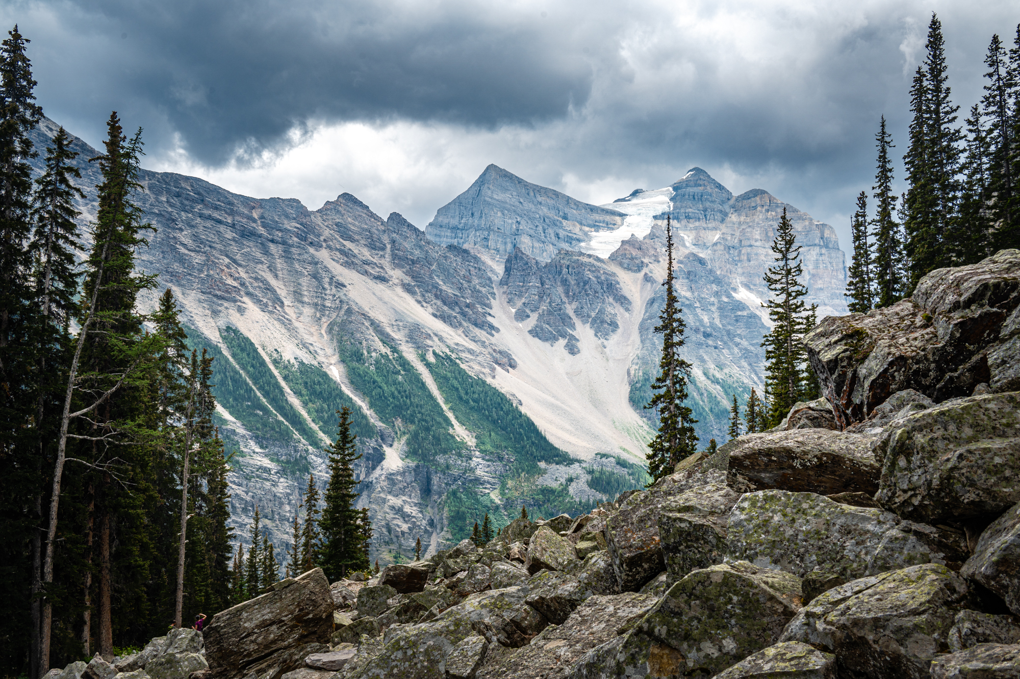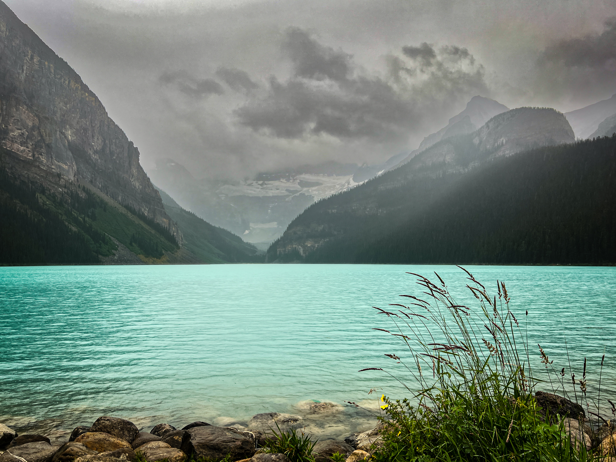 However, our peaceful lunch was cut little short as a mountain thunderstorm rolled in, chasing us all the way down the three miles of mountain trail back to the car. Despite the sudden change in weather, the thunderstorm only added to the excitement of our adventure, and it was a fitting end to an unforgettable day at Lake Louise in Banff National Park.