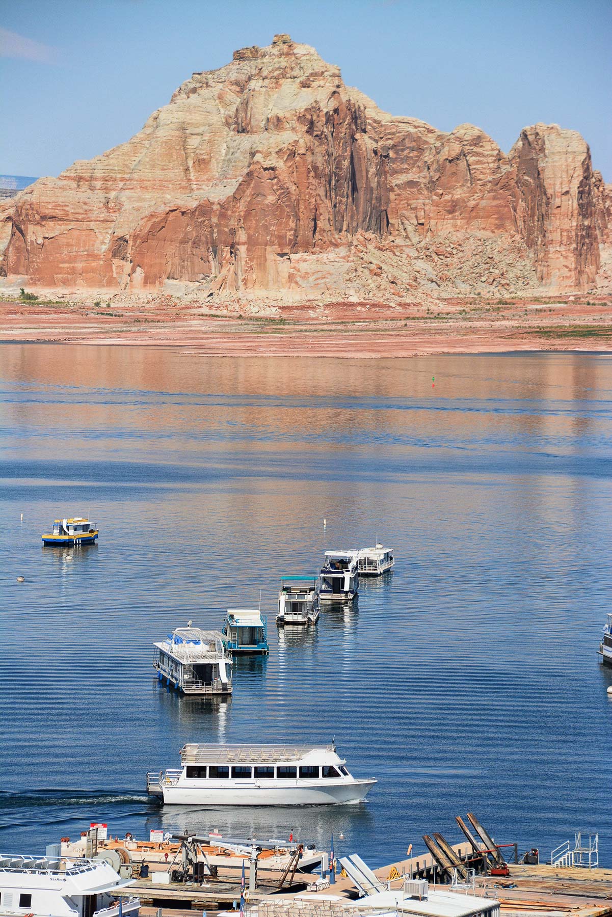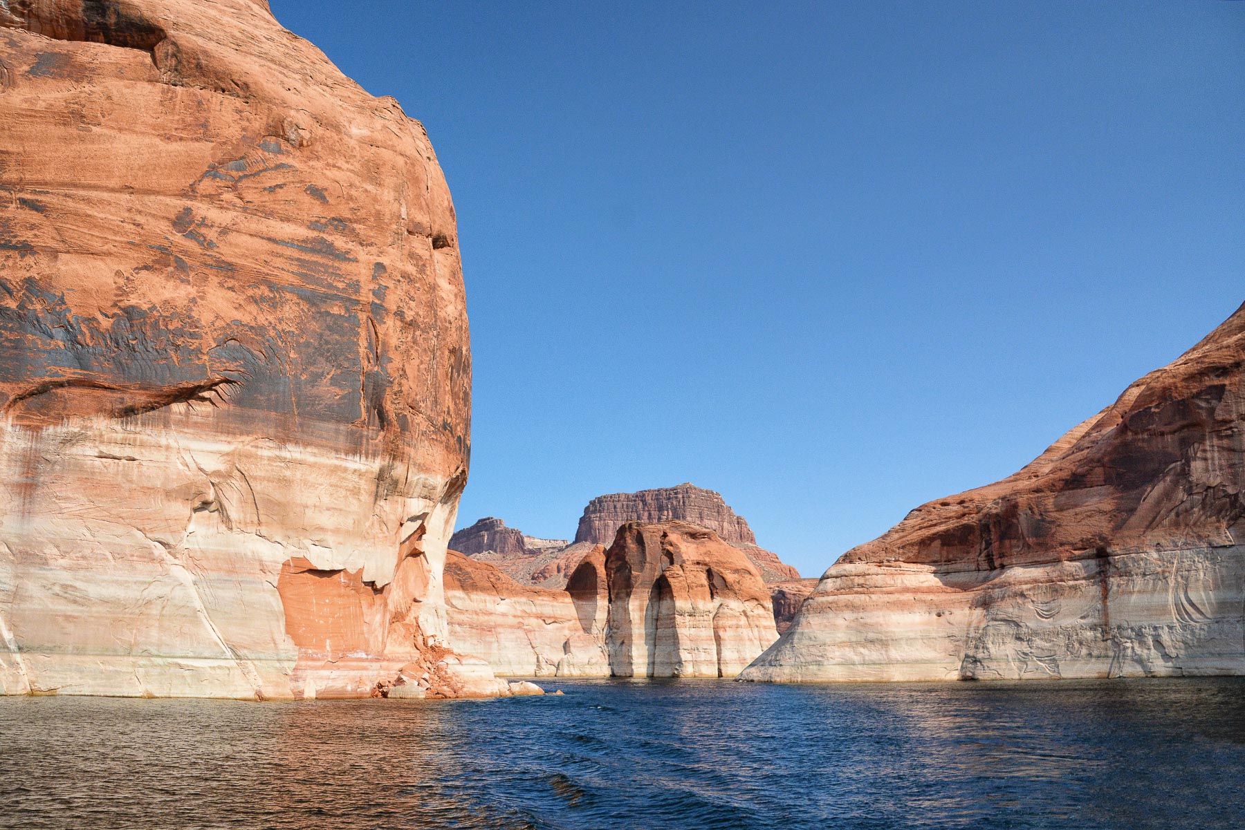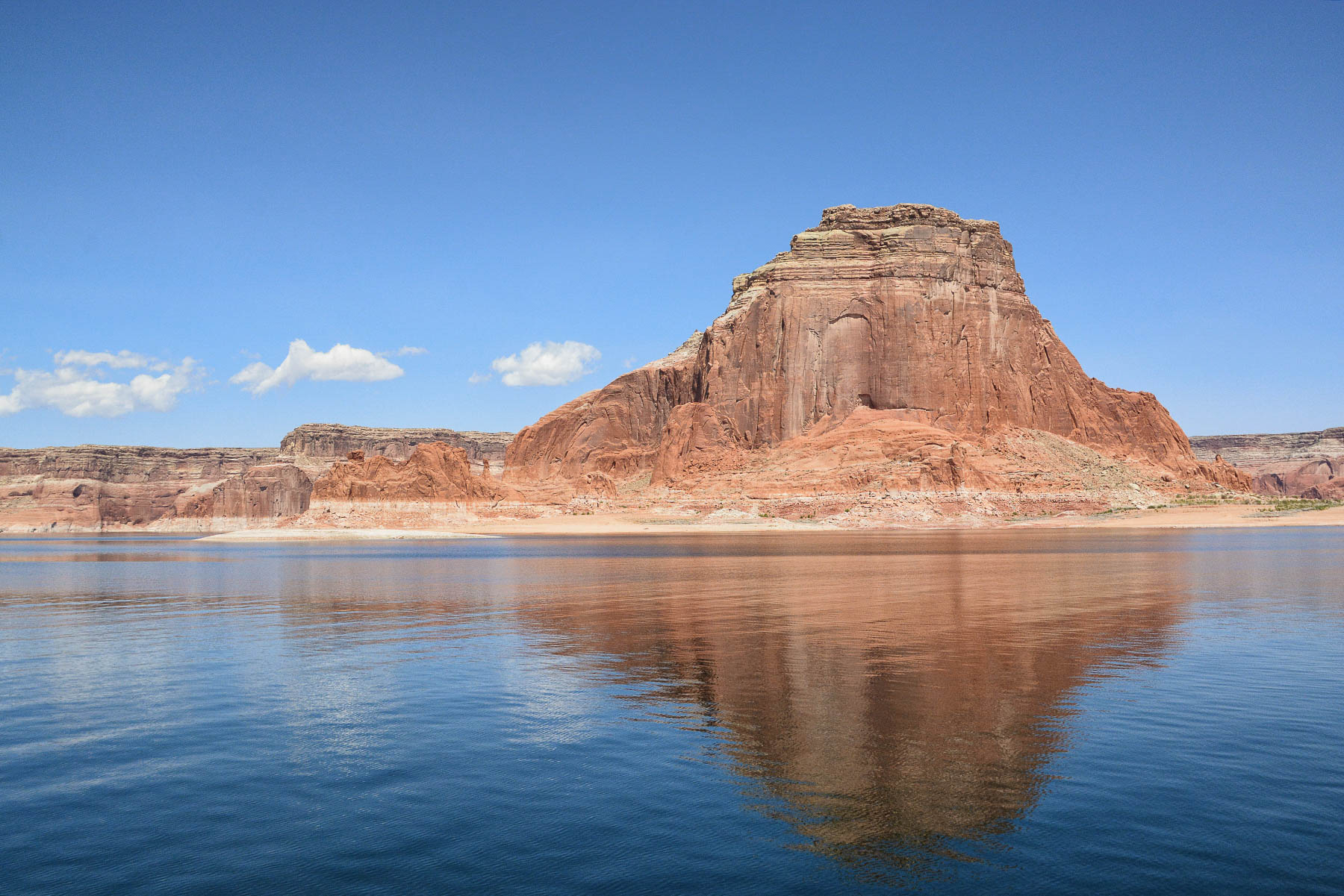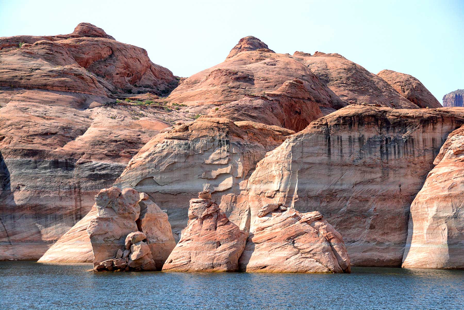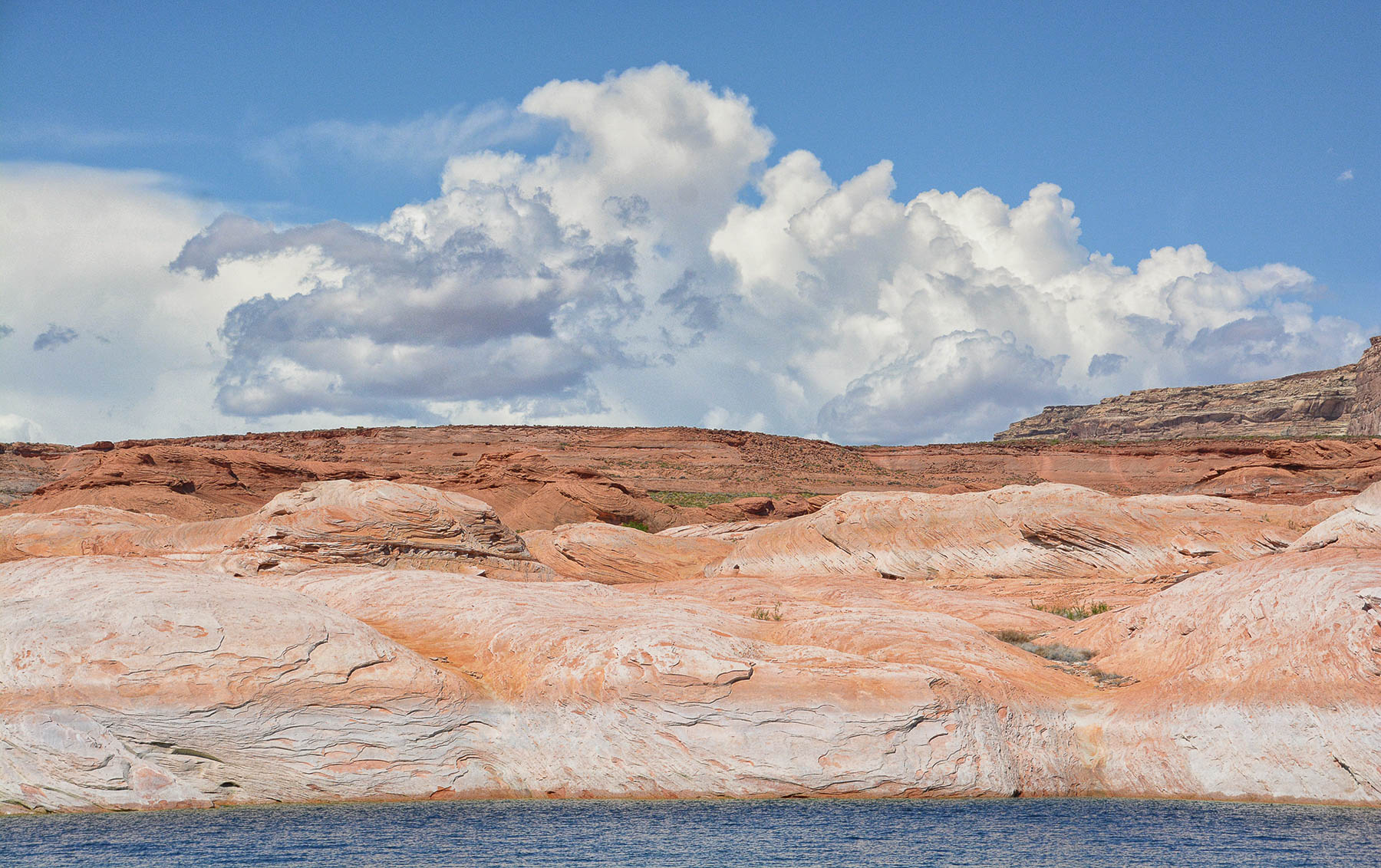 We saved the best for today a cruise on Lake Powell to the Rainbow Bridge Natural Arch. Lake Powell, named after John Wesley Powell, is 186 miles long and backs up into more than 96 major side canyons, and is the second-largest man-made lake in the US. Today we are going to take the cruise boat 50 nautical miles from the Wahweap Marina to Bridge Canyon where the Rainbow Bridge was discovered in 1909. The lake’s crystal clear blue water, more than 500 feet deep in places, is wonderful to explore as we cruised through narrow waterways, past sandstone cliffs and buttes, including the well known Tower Butte.