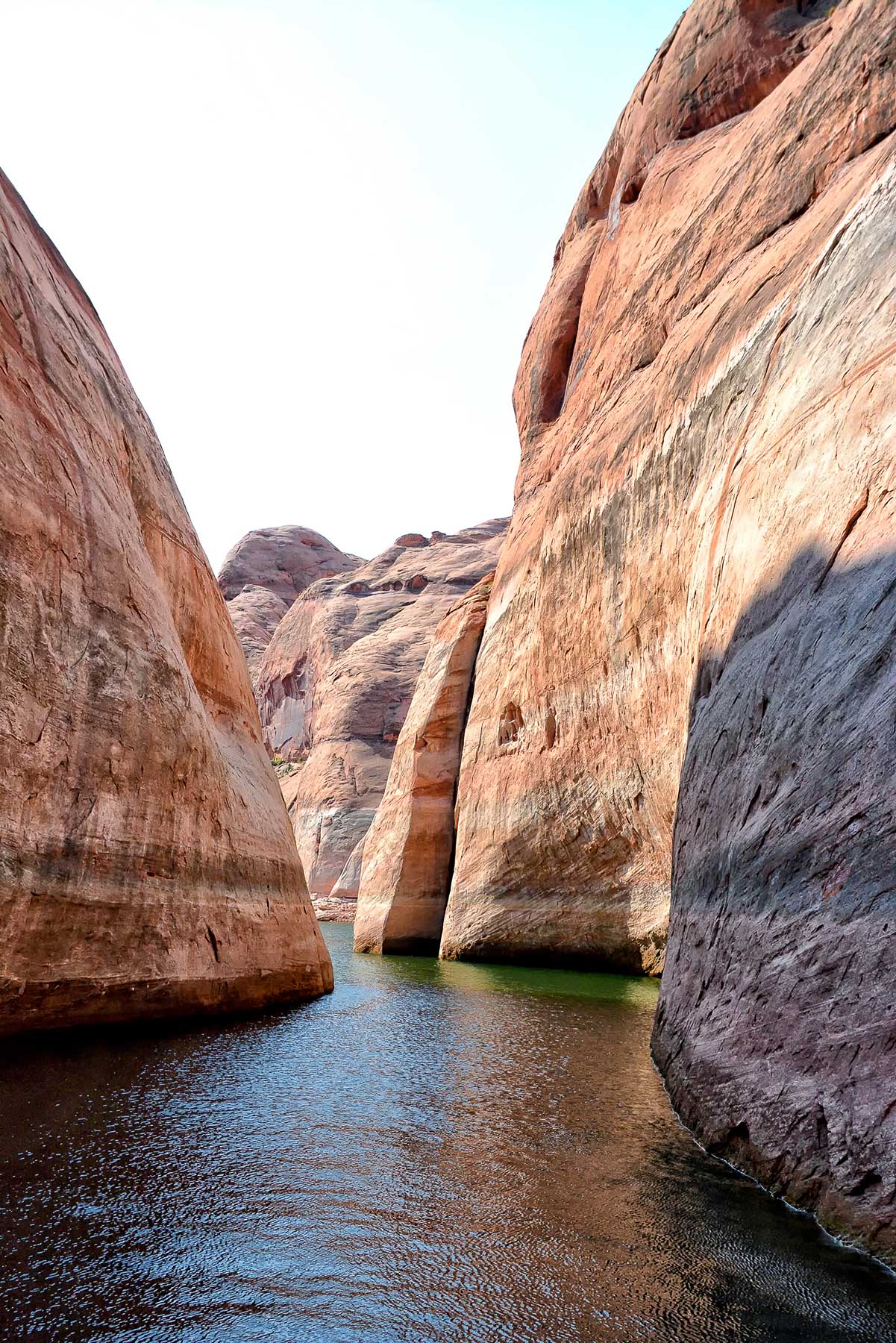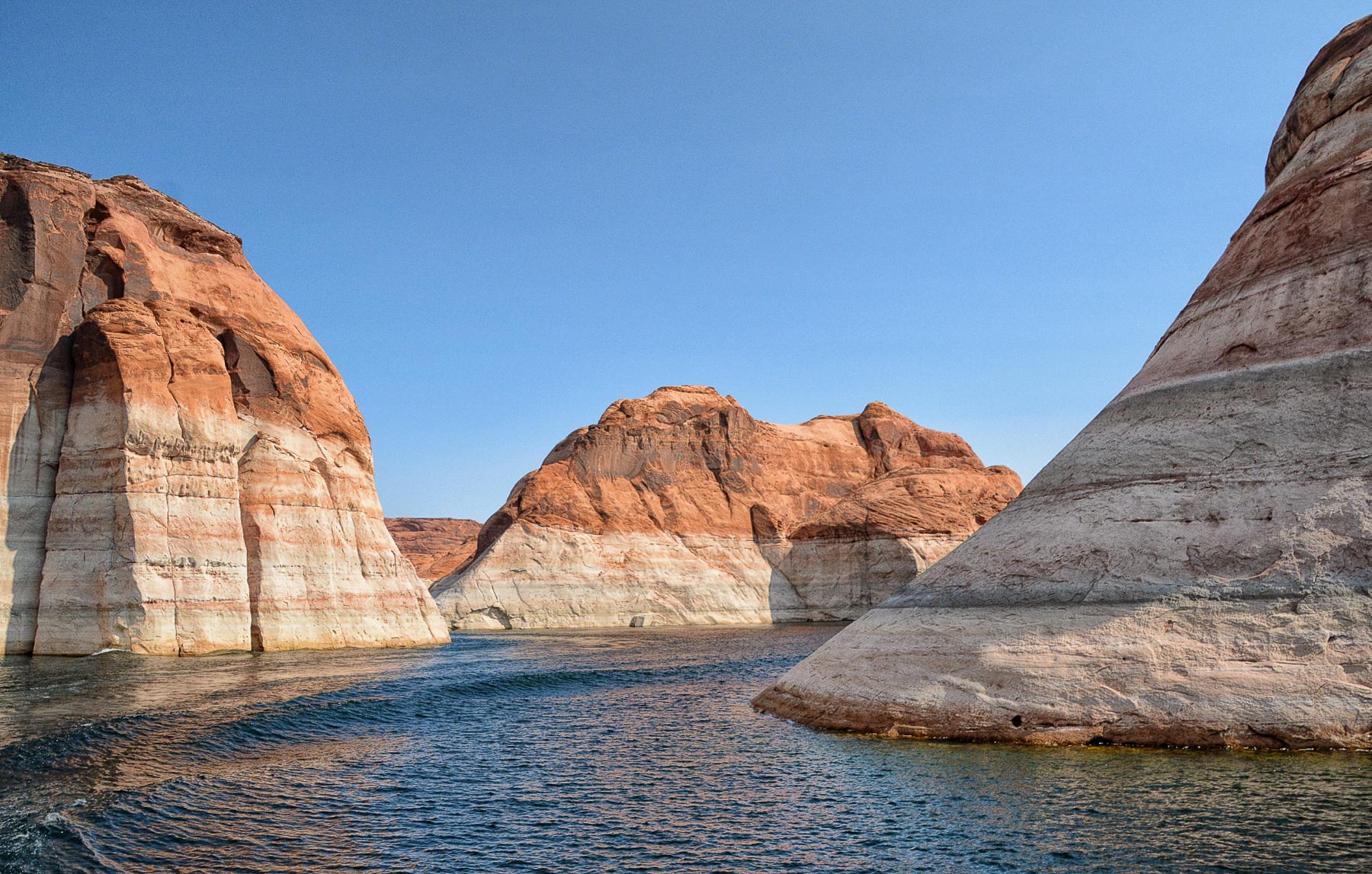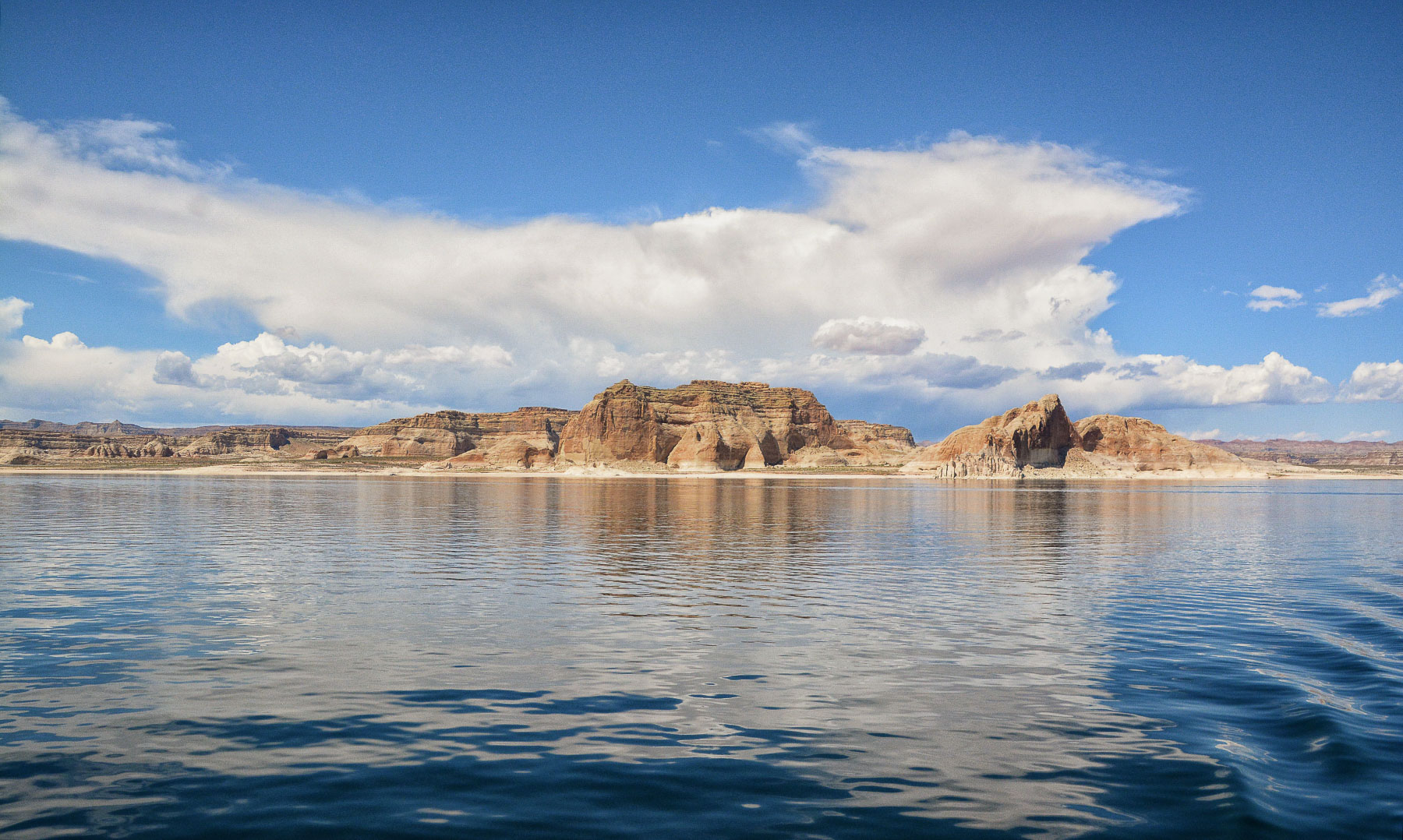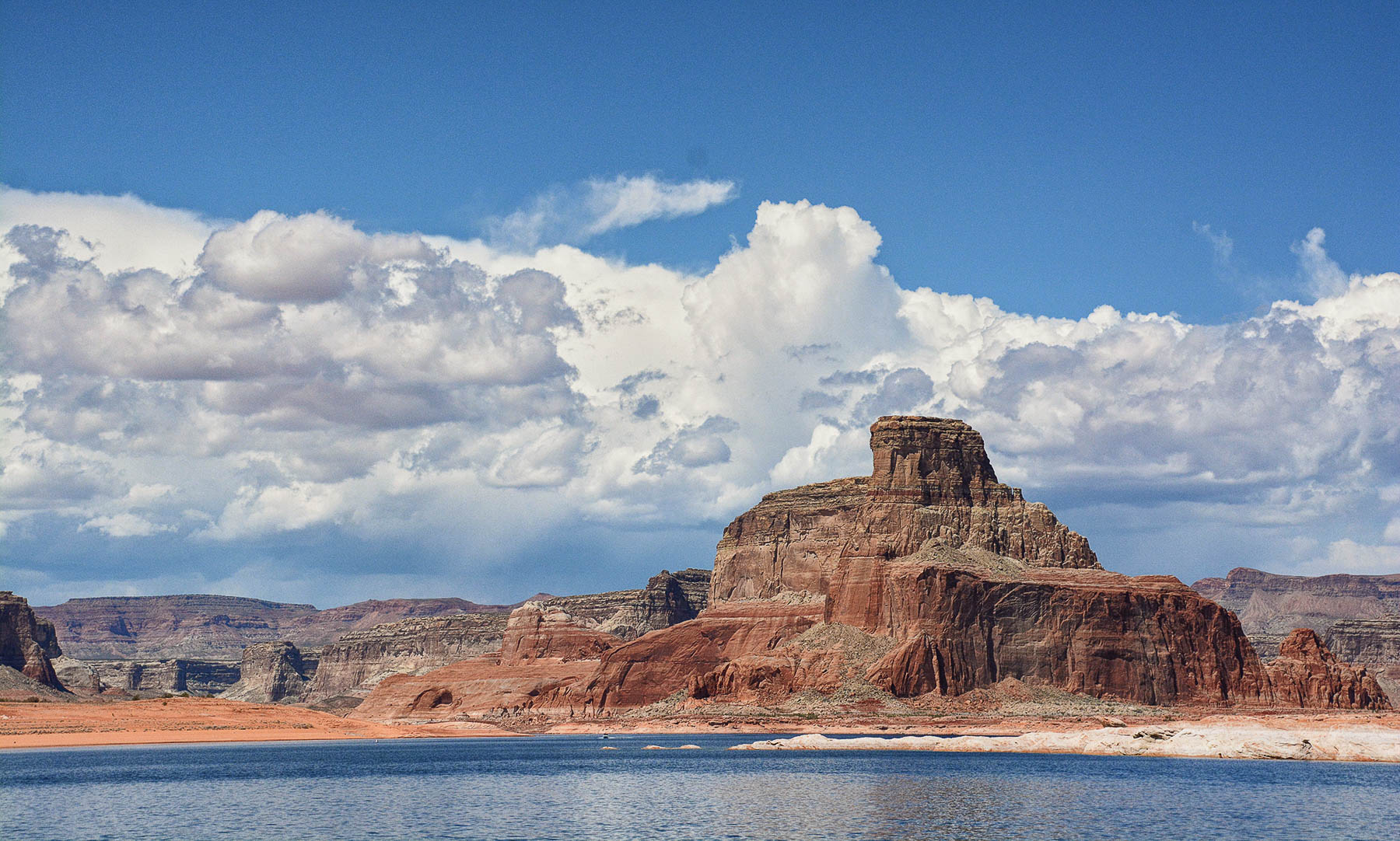 We saved the best for today a cruise on Lake Powell to the Rainbow Bridge Natural Arch. Lake Powell, named after John Wesley Powell, is 186 miles long and backs up into more than 96 major side canyons, and is the second-largest man-made lake in the US. Today we are going to take the cruise boat 50 nautical miles from the Wahweap Marina to Bridge Canyon where the Rainbow Bridge was discovered in 1909. The lake’s crystal clear blue water, more than 500 feet deep in places, is wonderful to explore as we cruised through narrow waterways, past sandstone cliffs and buttes, including the well known Tower Butte.