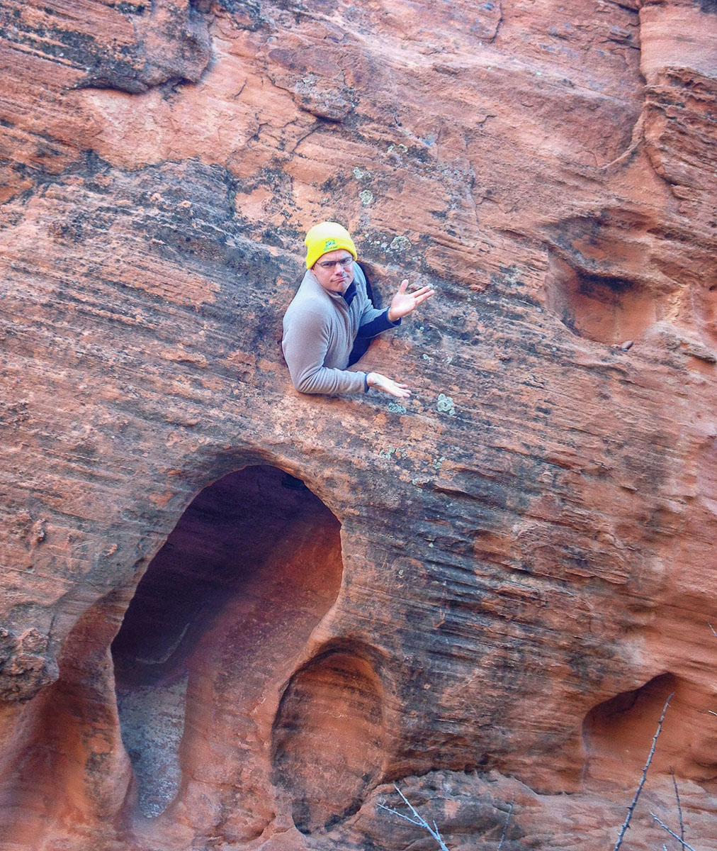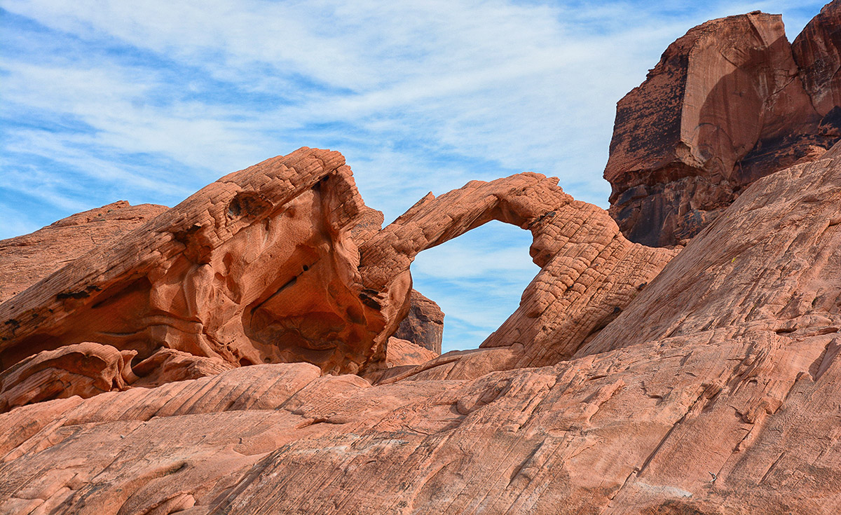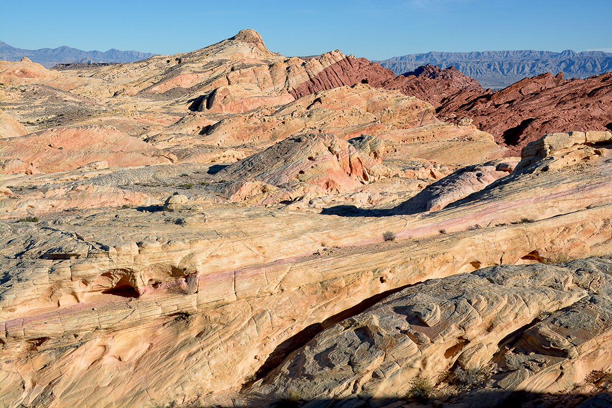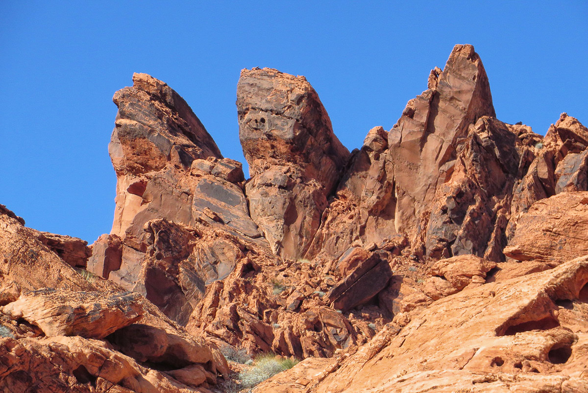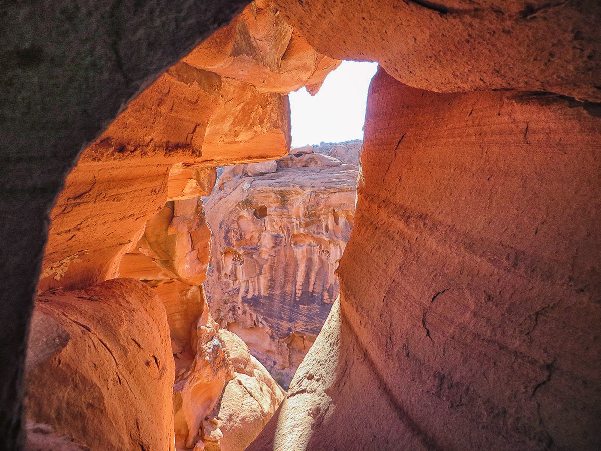 The next morning we drove 55 miles NE from Vegas to the Valley of Fire State Park; dedicated in 1935, the Park is Nevada’s oldest and largest state park. We hiked several trails: Balancing Rock Trail, Petrified Logs Trail, Mouse’s Tank Trail, White Domes Trail and the Beehive Trail. Eric was in his element running up and down the huge sandstone formations and peeking through the many carved out holes in the cliffs. The sandstone cliffs appear to be on fire when reflecting the sun’s rays, a beautiful light show.